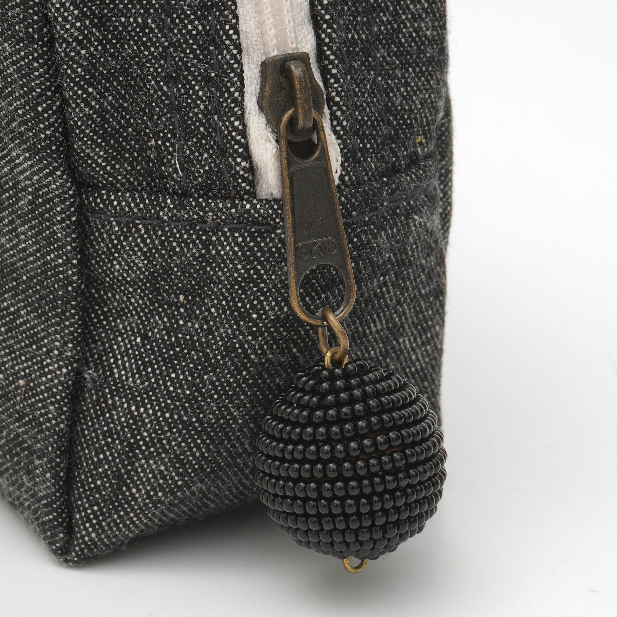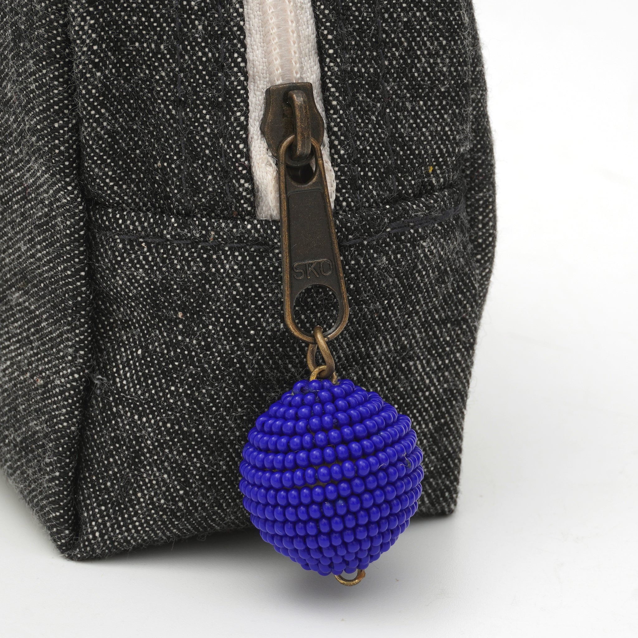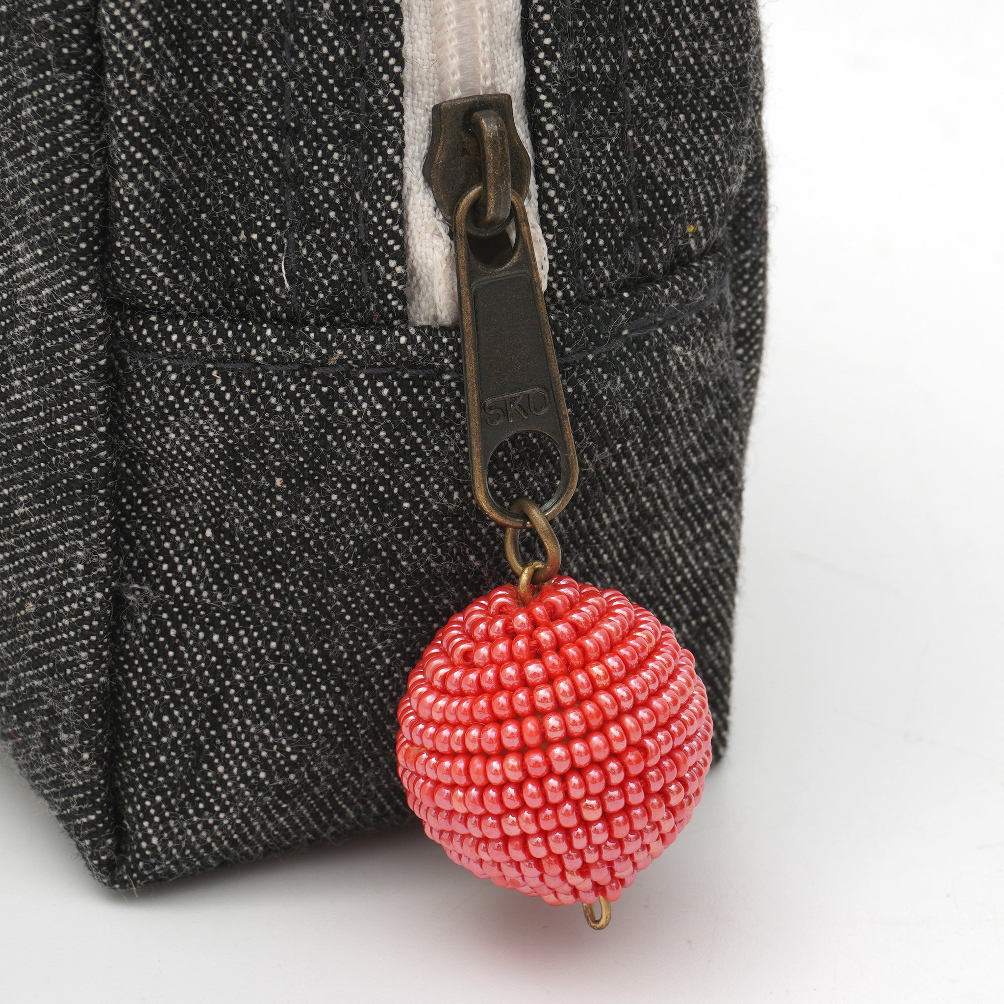 上品な艶を放つタッセルは、インドの職人による丁寧な手仕事によるもの。シンプルなデニムに優しい彩りを添え、日常使いの中にふと「ときめき」を感じられる仕上がりです。