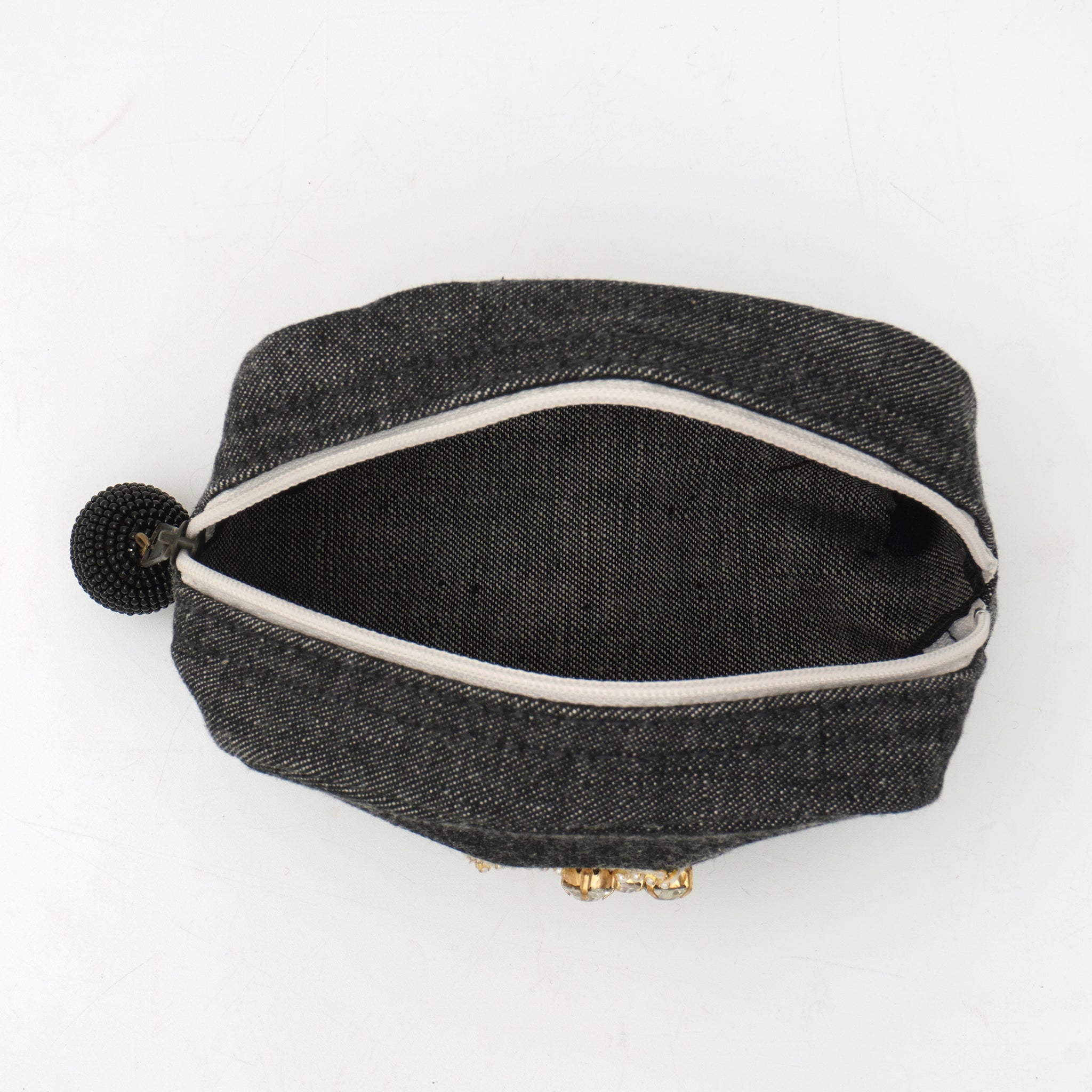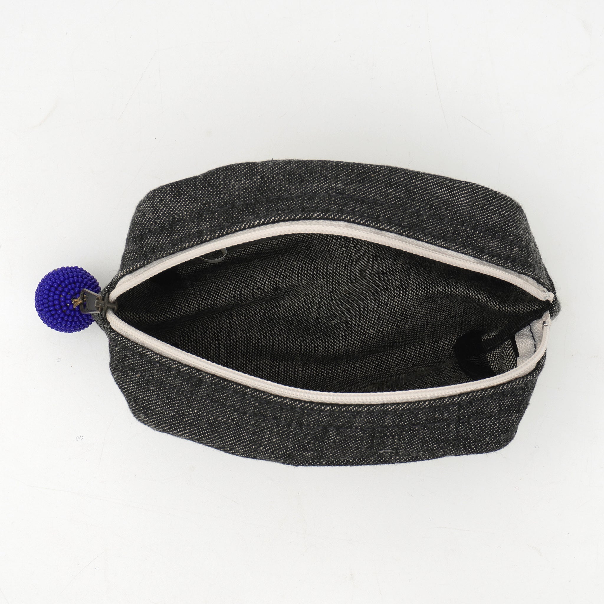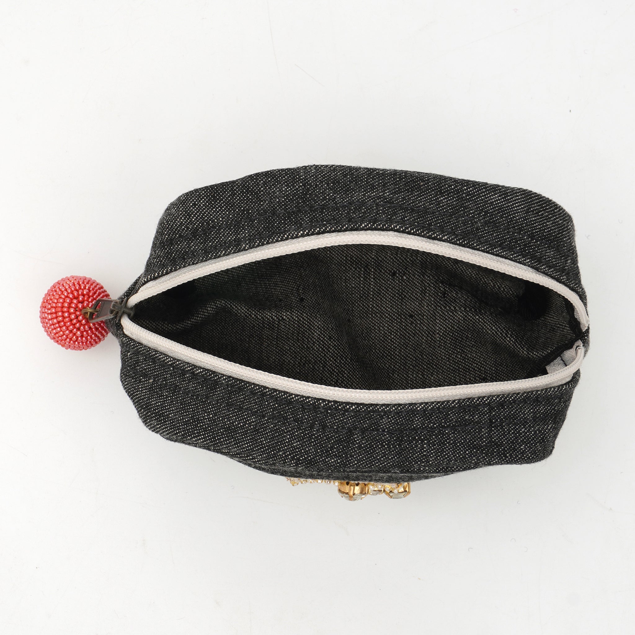 上品な艶を放つタッセルは、インドの職人による丁寧な手仕事によるもの。シンプルなデニムに優しい彩りを添え、日常使いの中にふと「ときめき」を感じられる仕上がりです。