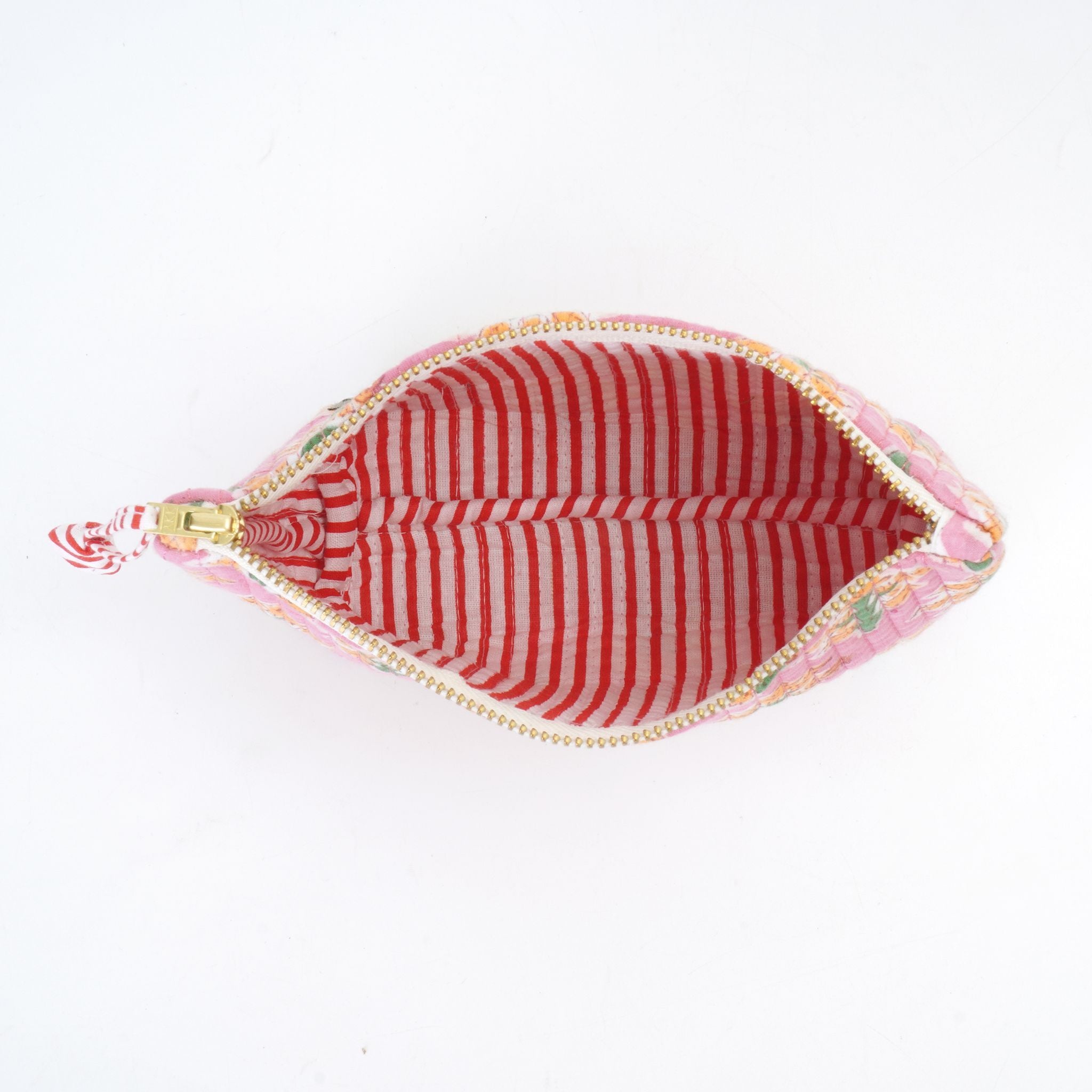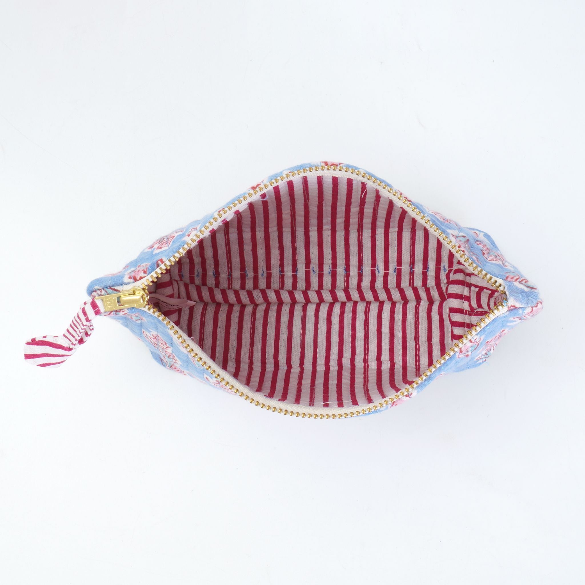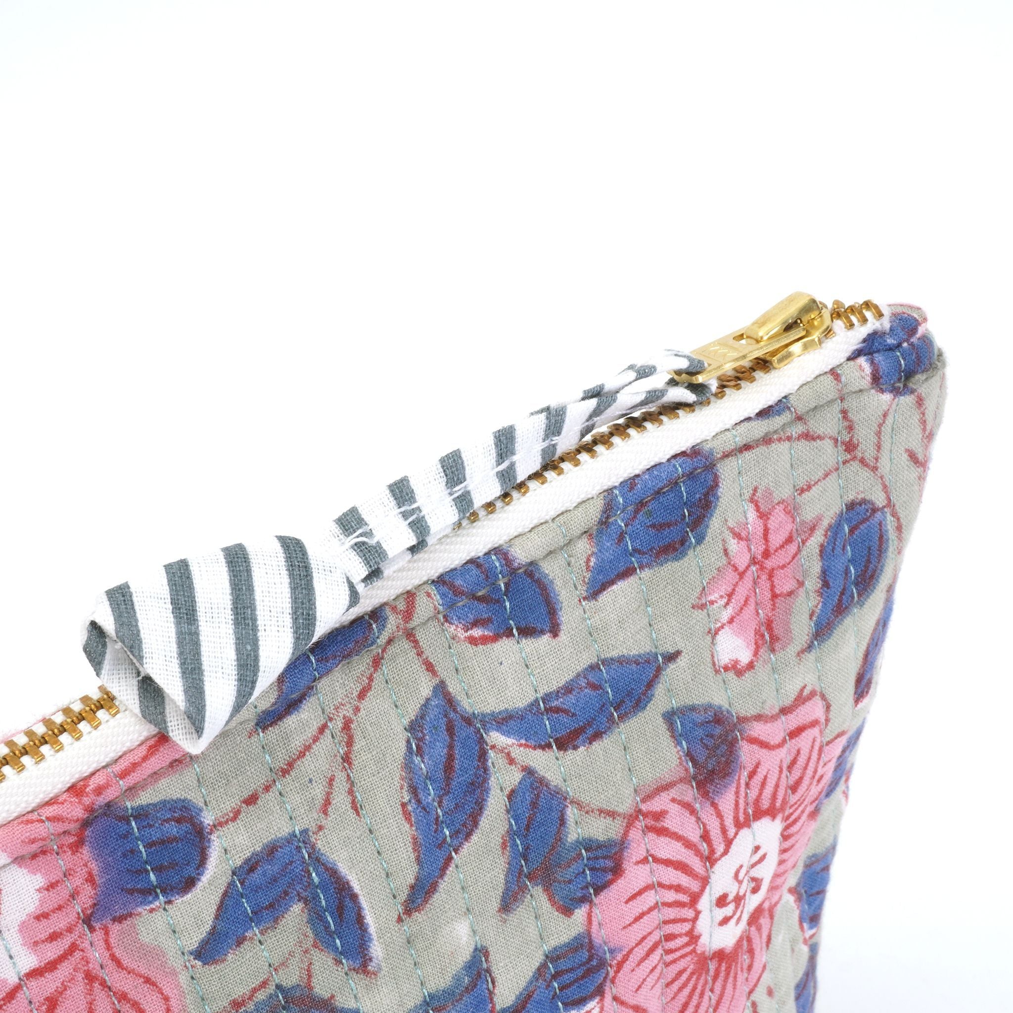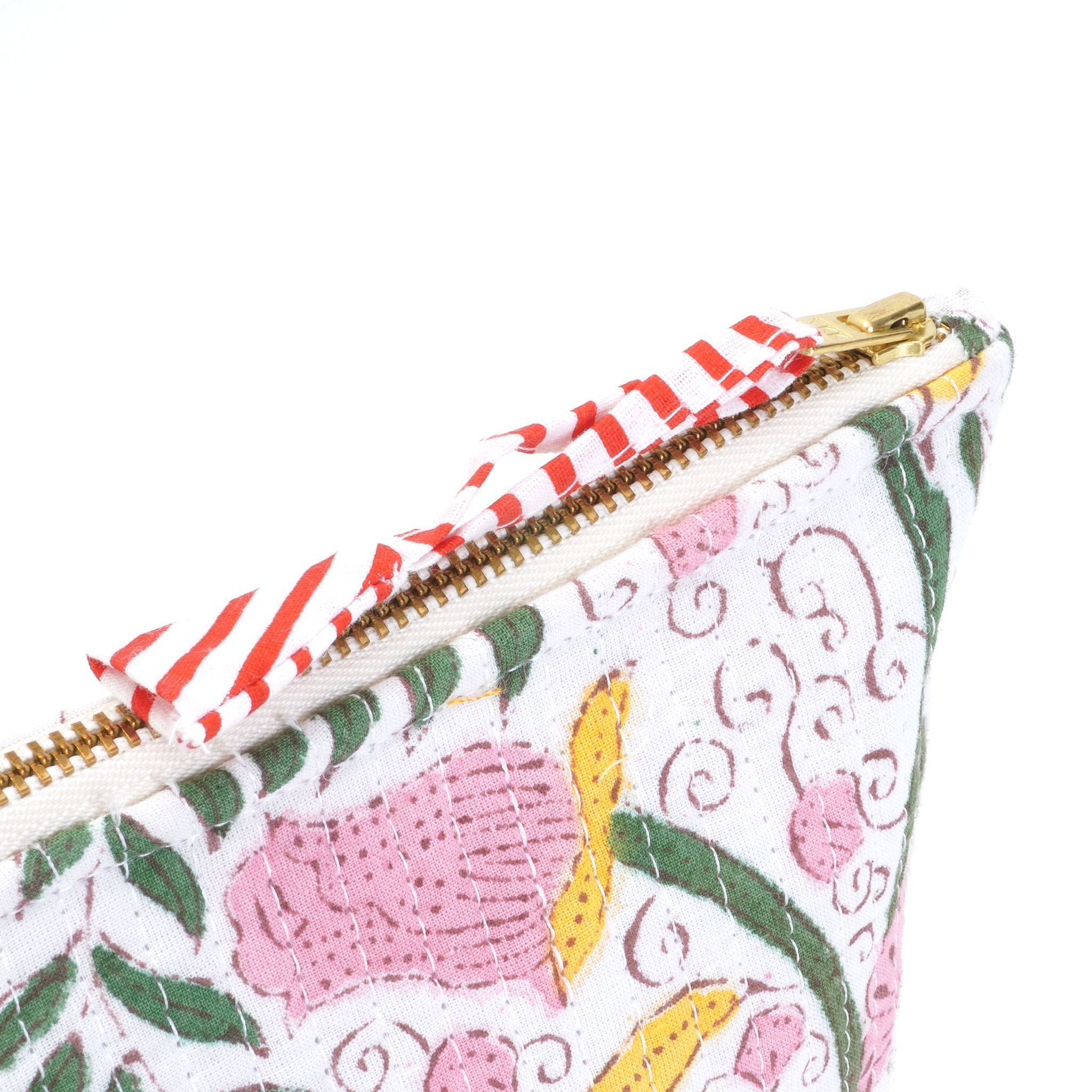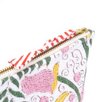 インド伝統のブロックプリント生地を贅沢に使用した、華やかで温かみのあるポーチ。