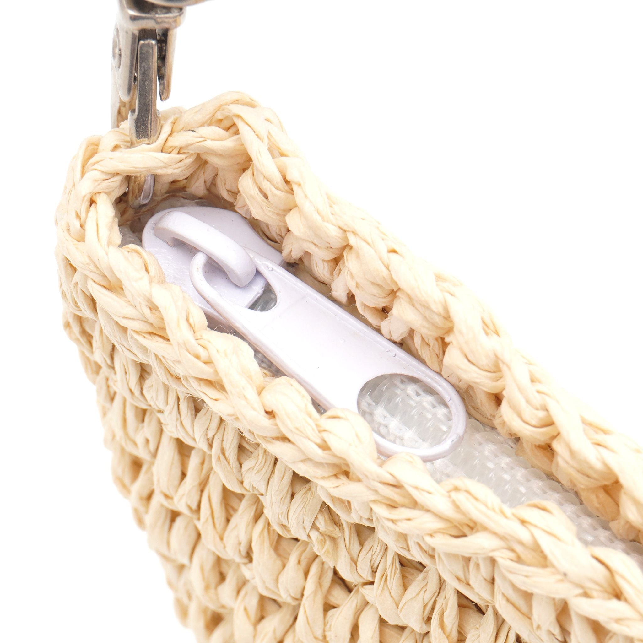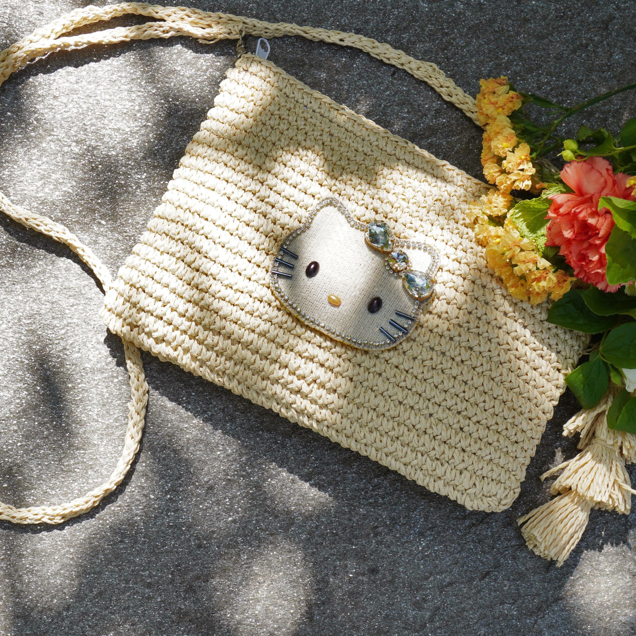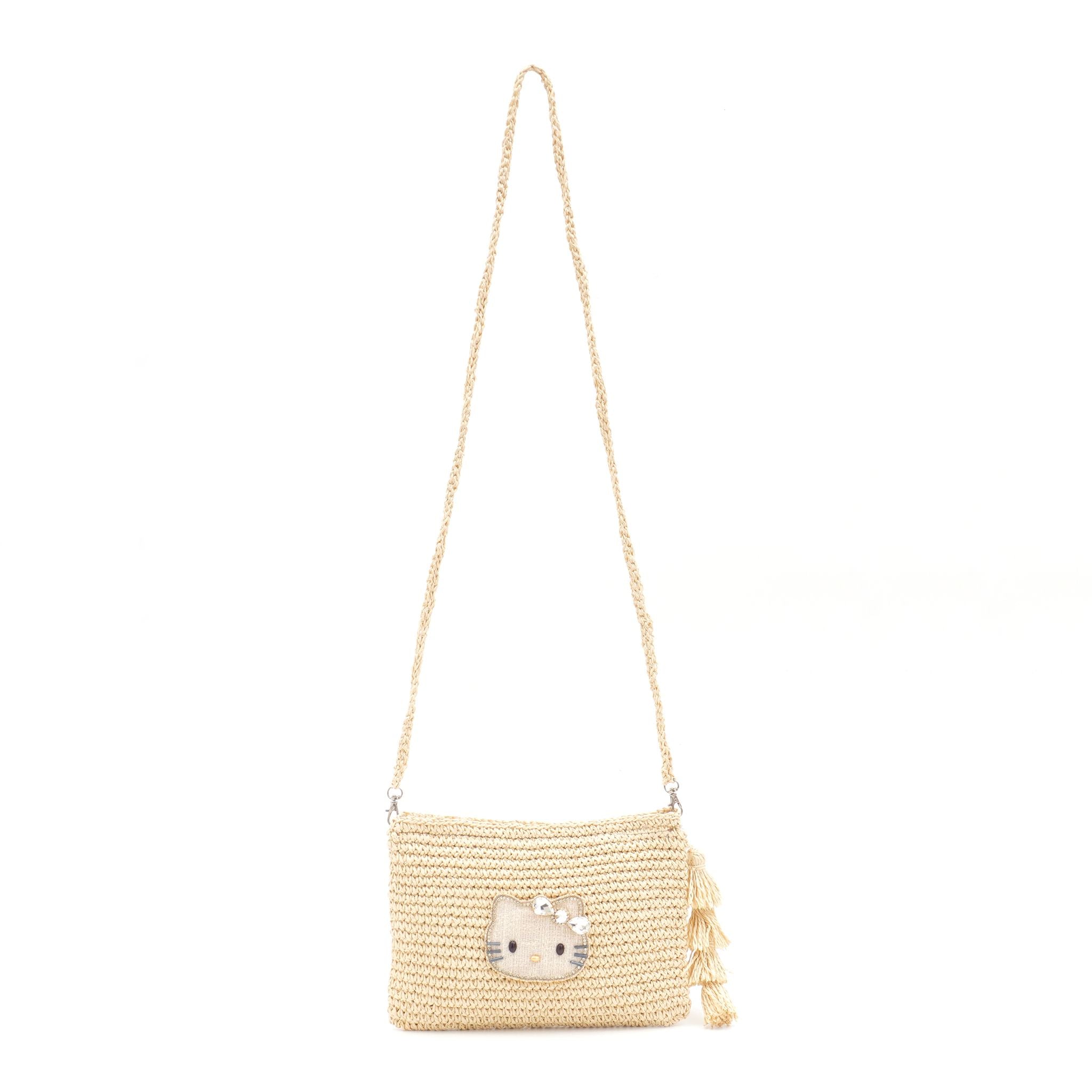 涼しげなかご素材とビジューキティの組み合わせが、夏空にぴったり。