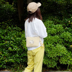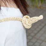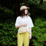 肩がけも斜めがけもOK。ショルダー部分は結んでお好みの長さに簡単に調整でき、スタイルに合わせて自由自在。