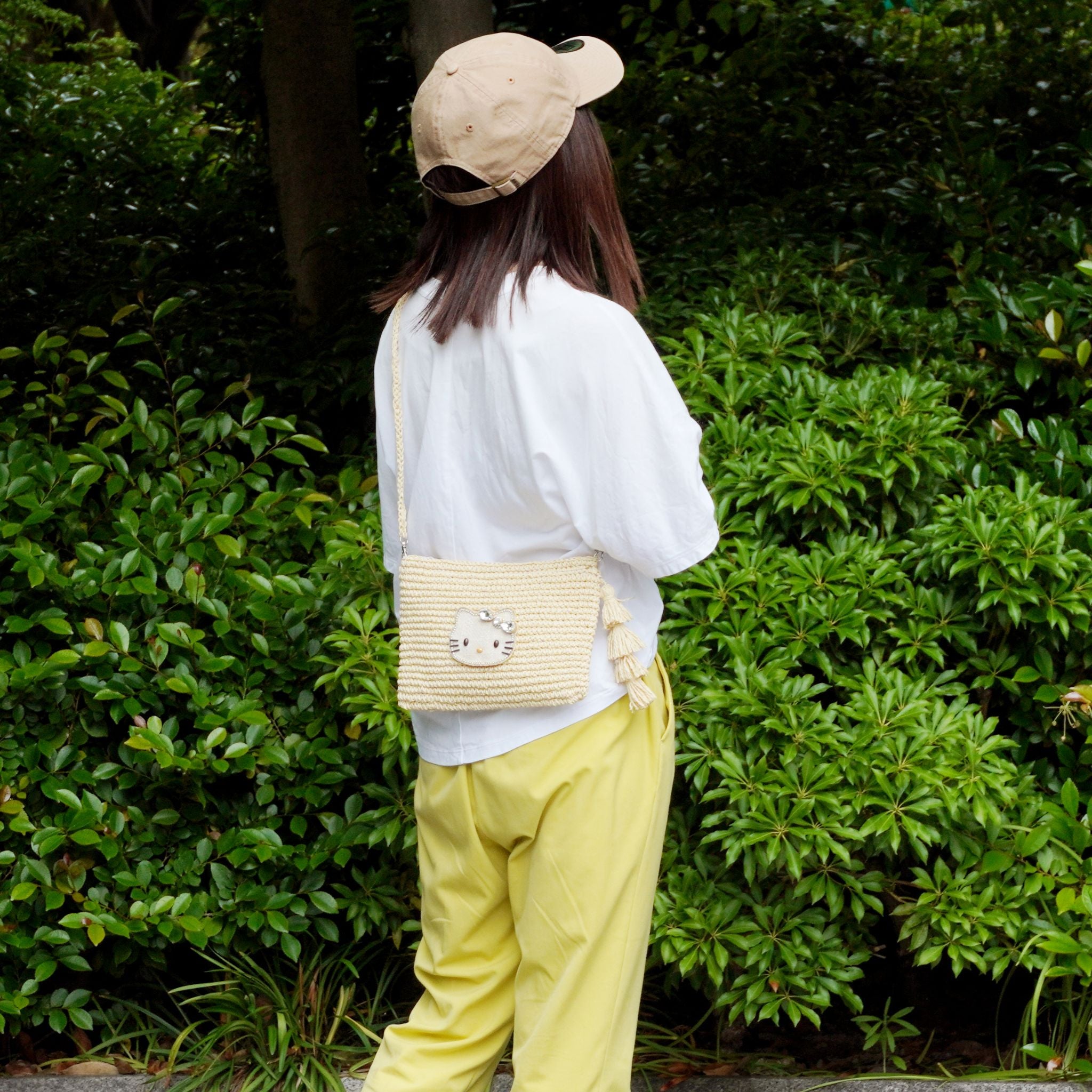 夏の装いにぴったりな、軽やかさと可愛さを兼ね備えたショルダーバッグ。ナチュラルな風合いのかごショルダーバッグに、きらりと光るキティのワッペンがアクセント。軽くてやわらかく、夏のおでかけにぴったりのショルダーバッグです。タッセルのゆらめきが大人の遊び心をくすぐり、カジュアルコーデを程よく格上げしてくれます。甘くなりすぎないナチュラルテイストだから、大人の“可愛い”を心地よく持ち歩ける一点です。