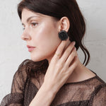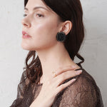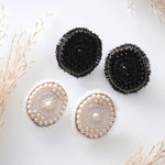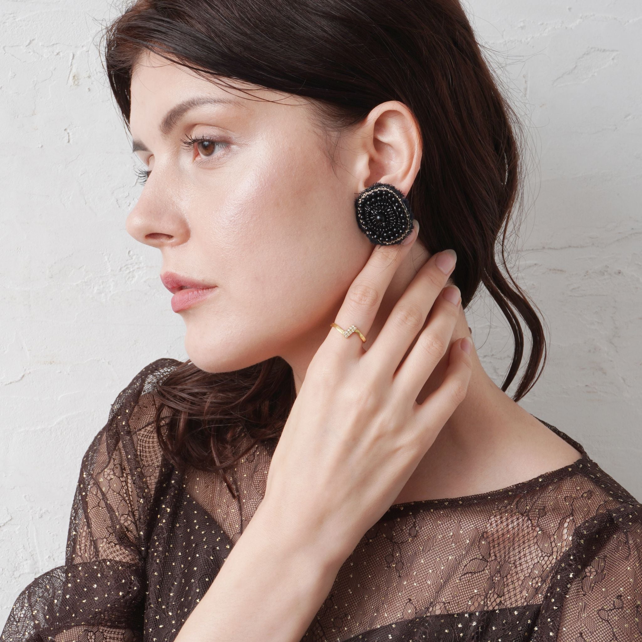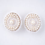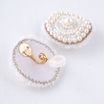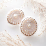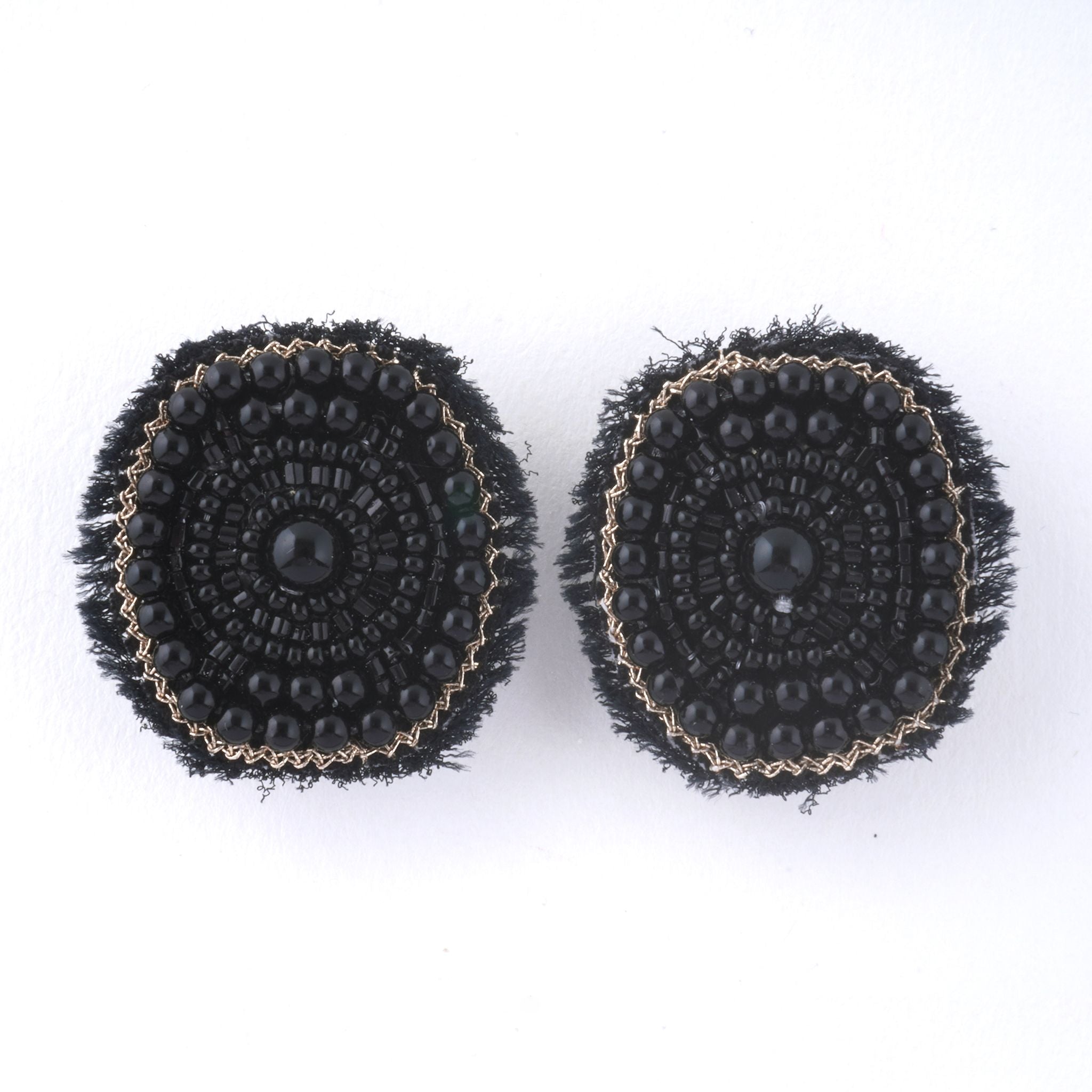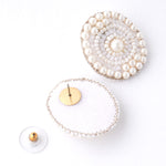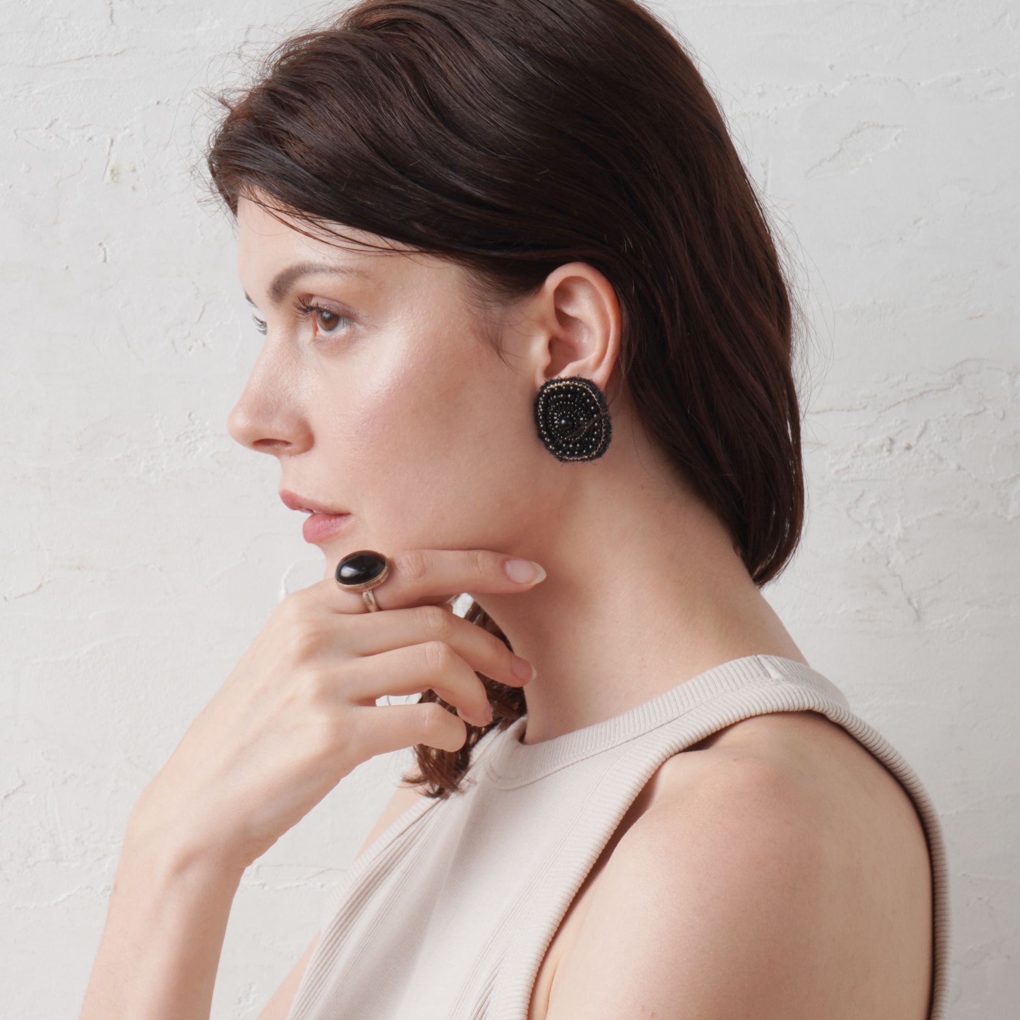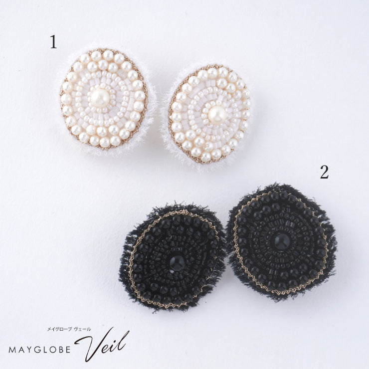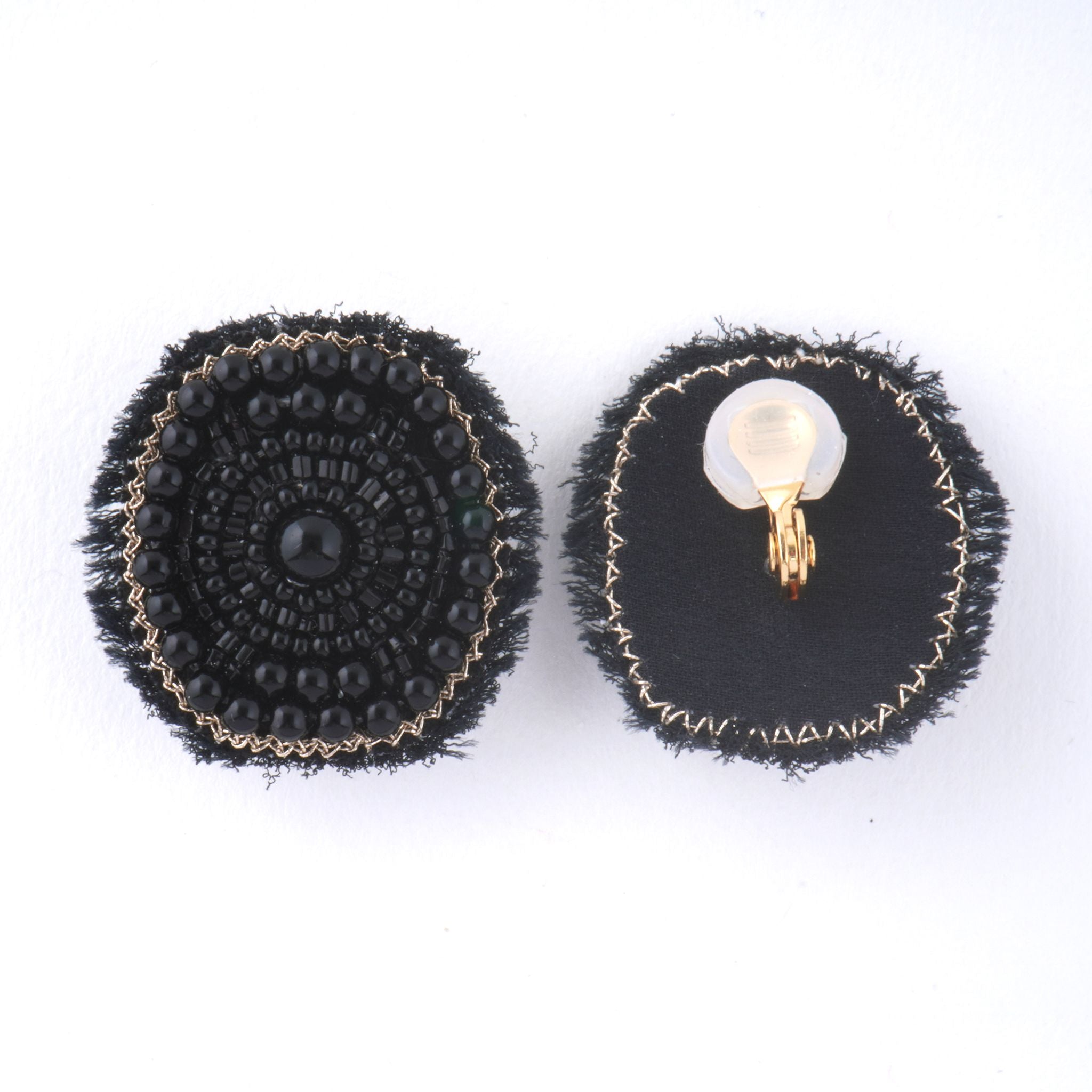 クラシカルな気品を纏う、ビーズエンブロイダリーピアス/イヤリング、Selina セリナ。 まるでアンティークのブローチのような風格と、ハンドメイドの温かみを兼ね備えたデザイン。繊細に編み込まれたビーズが、幾重にも重なることで奥行きのある美しさを生み出し、シンプルながらも存在感のあるアクセサリーに仕上げました。
