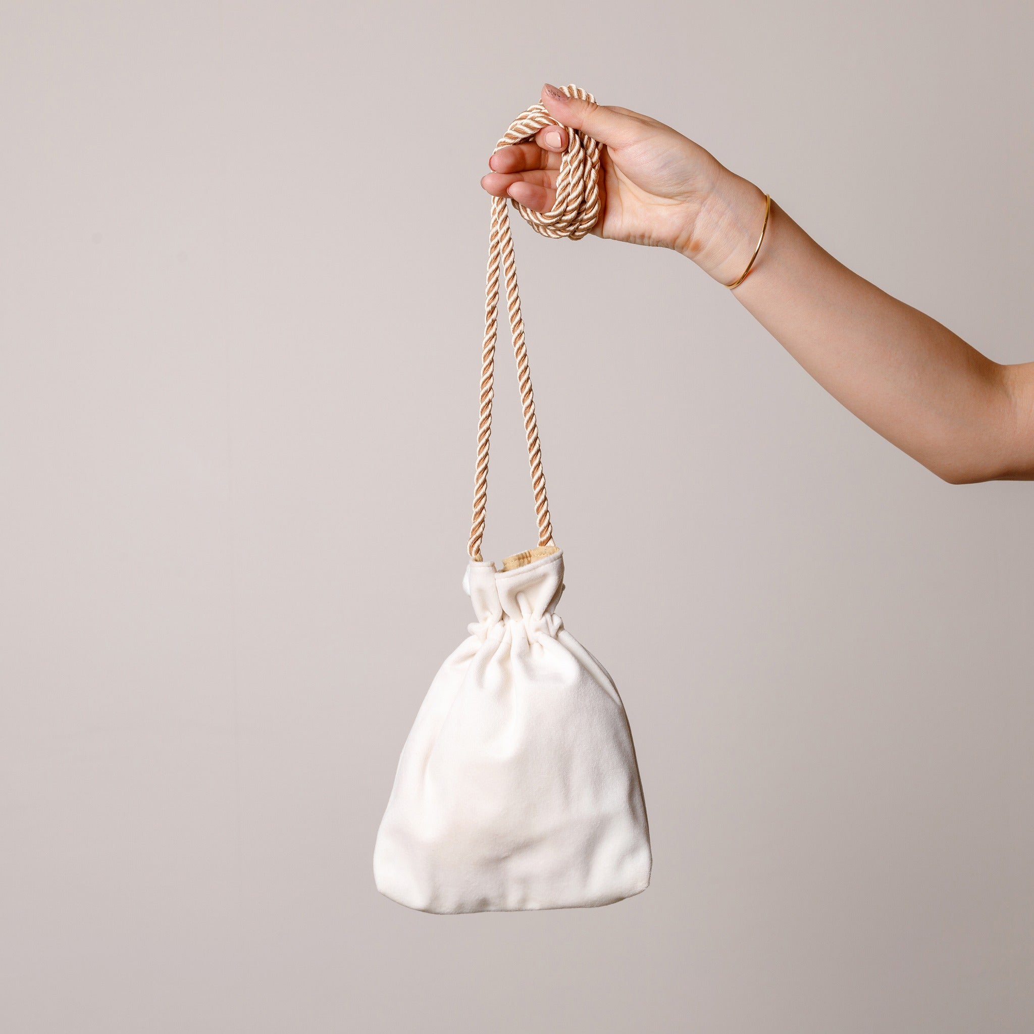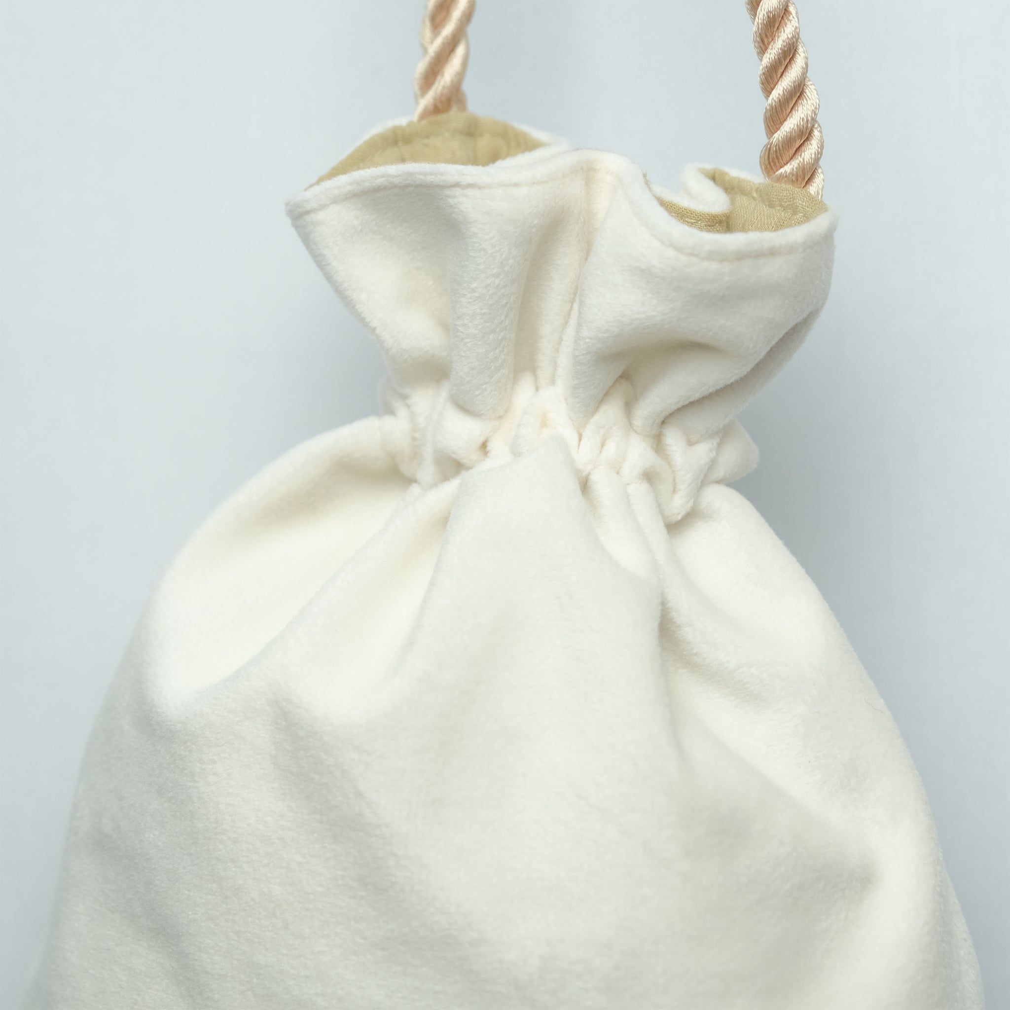 持ち手部分の長さを変えるだけでショルダーバッグとして、また短い持ち手の巾着バッグとしてお使い頂けます。