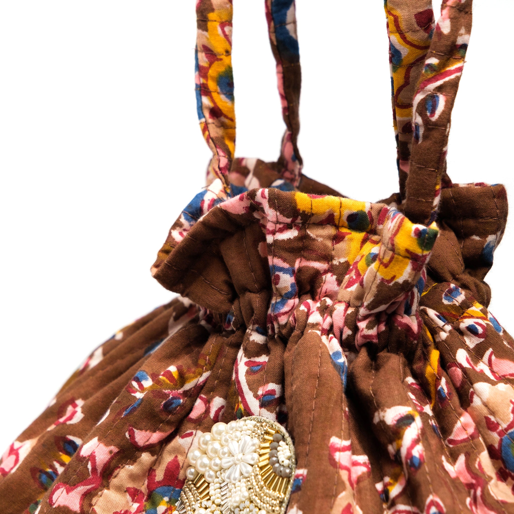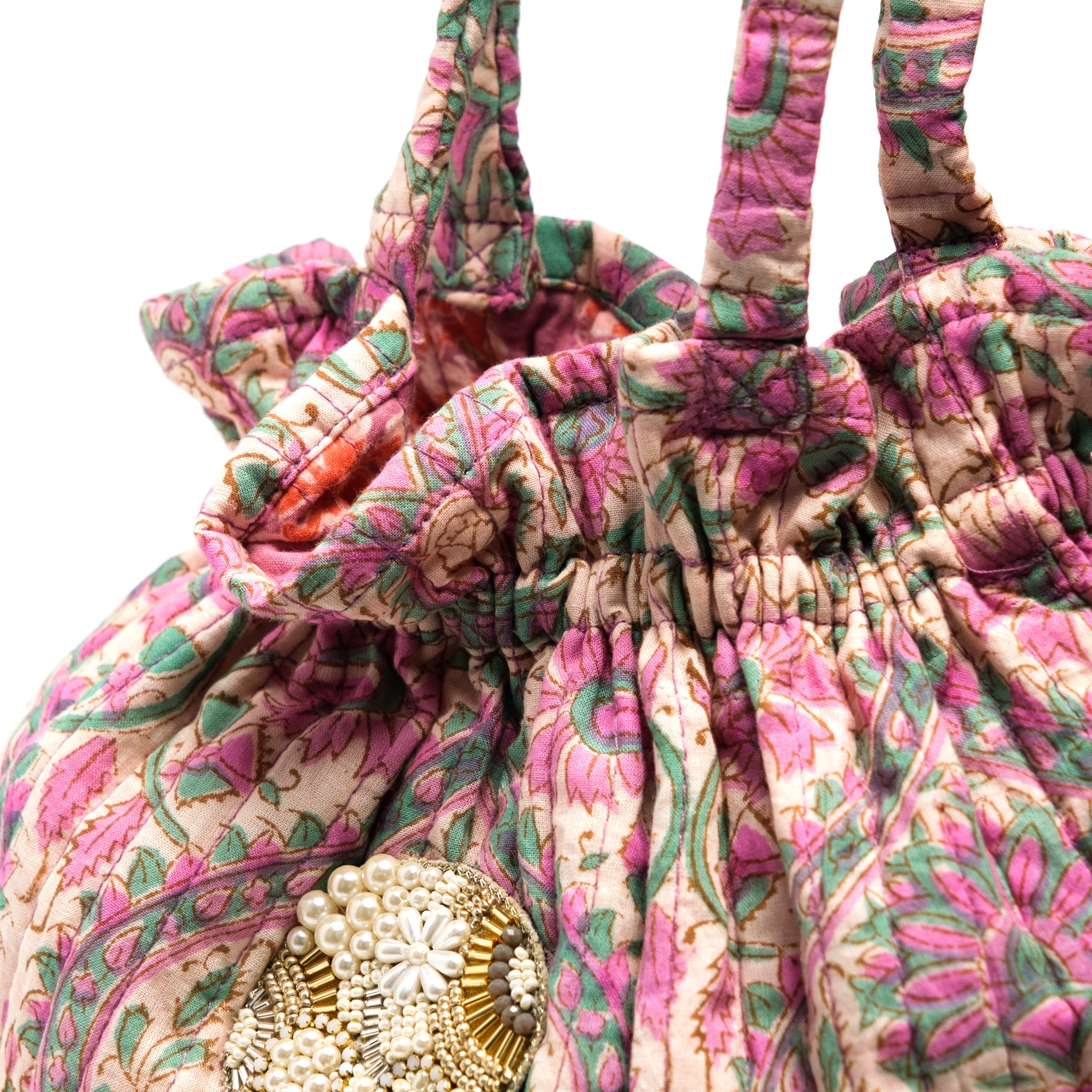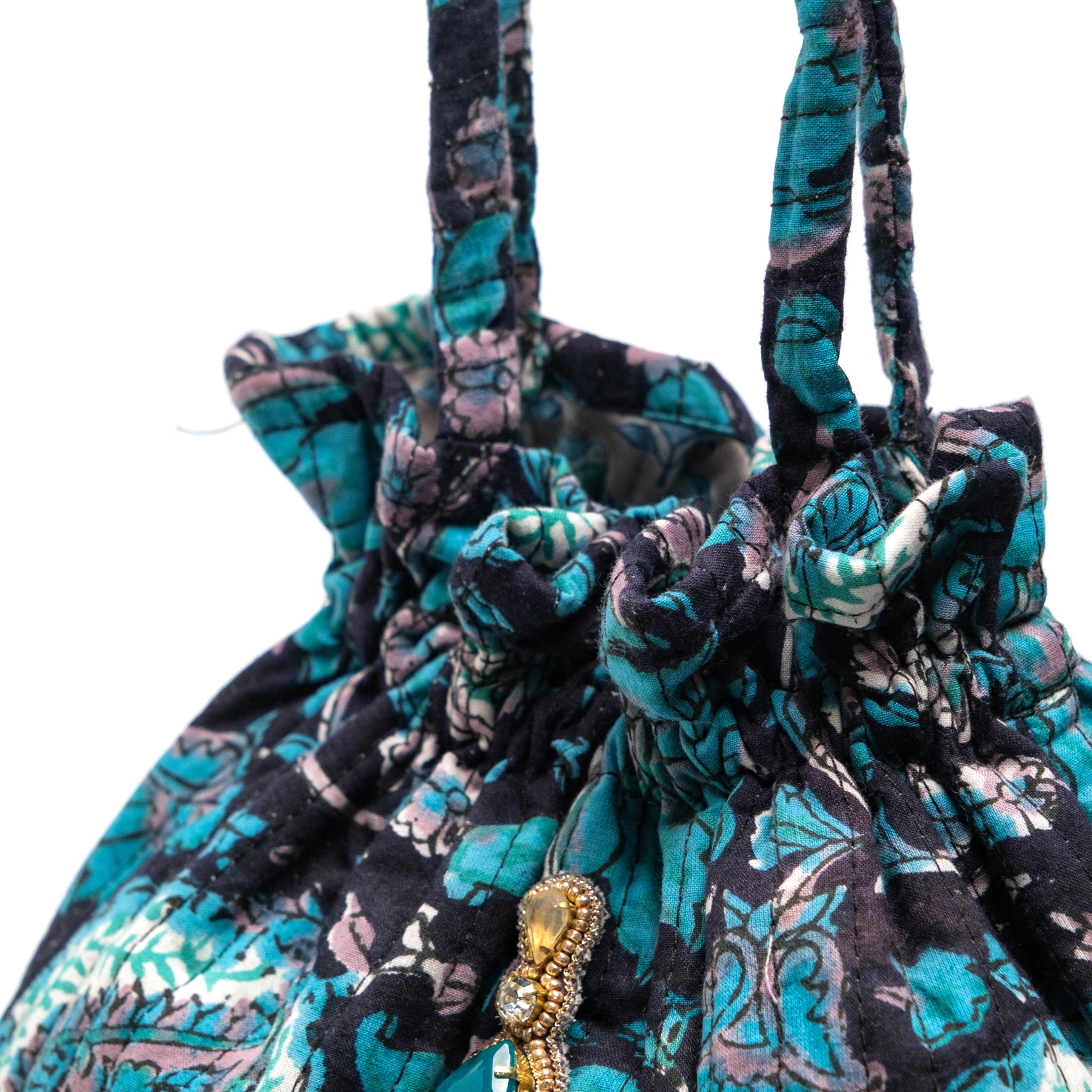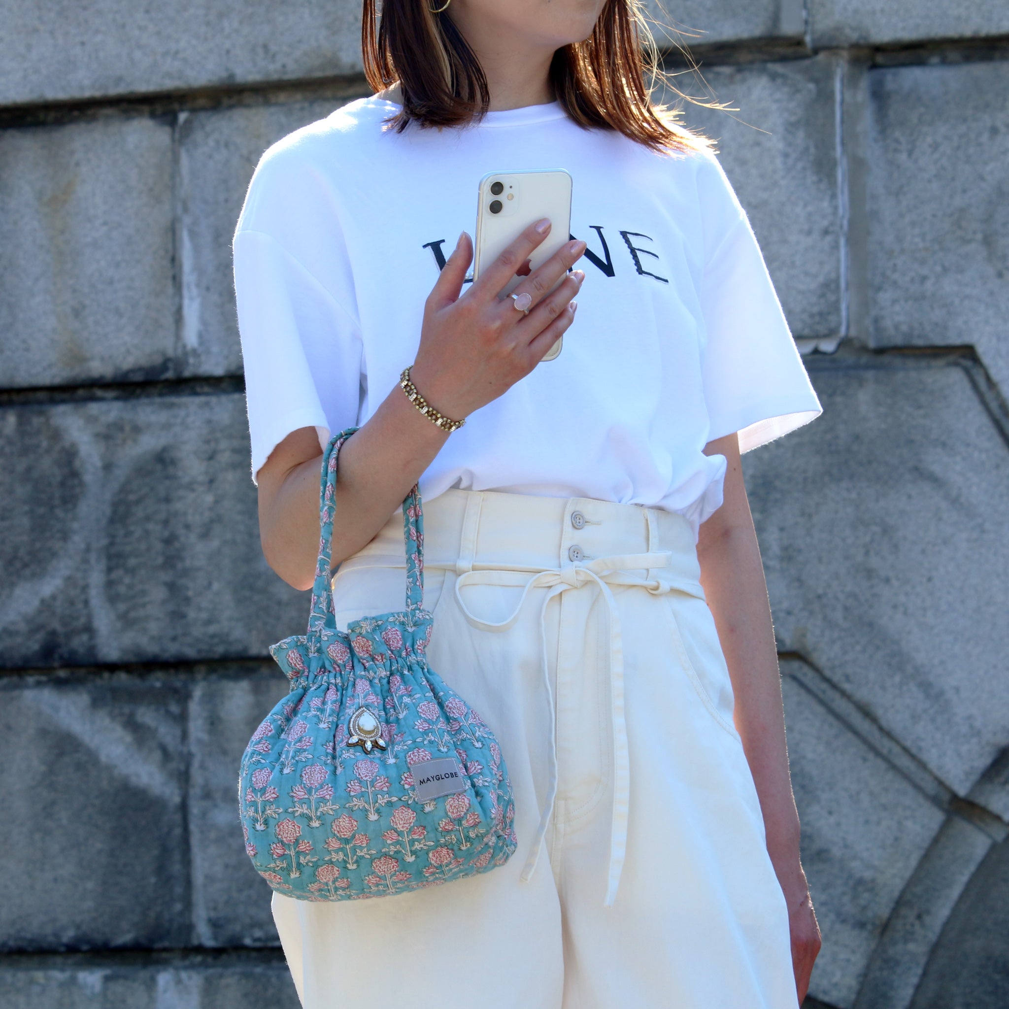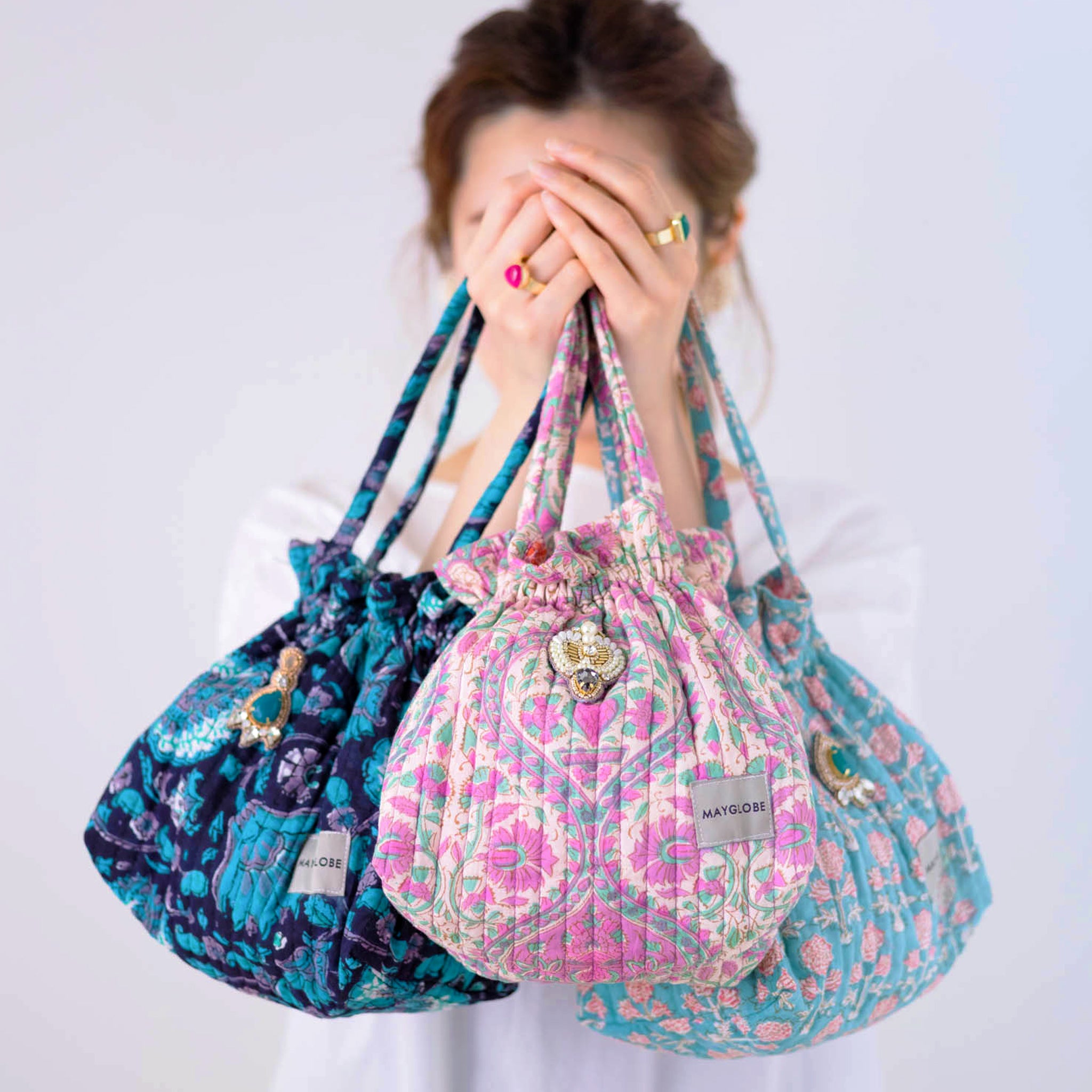 ブロックプリント巾着バッグ|ビジューモチーフ