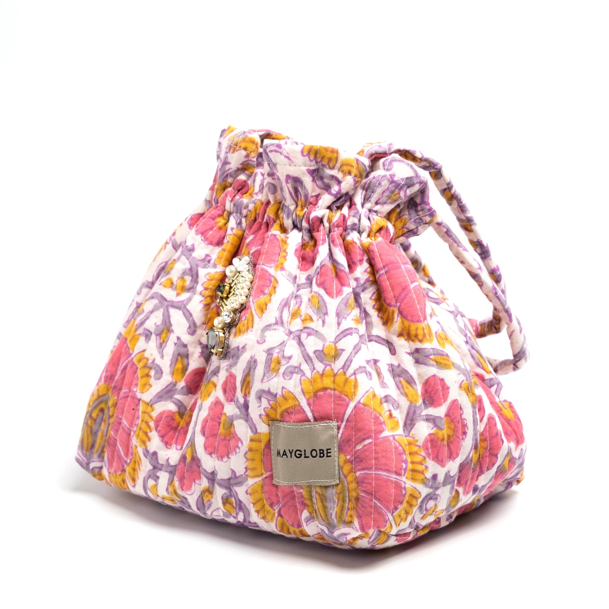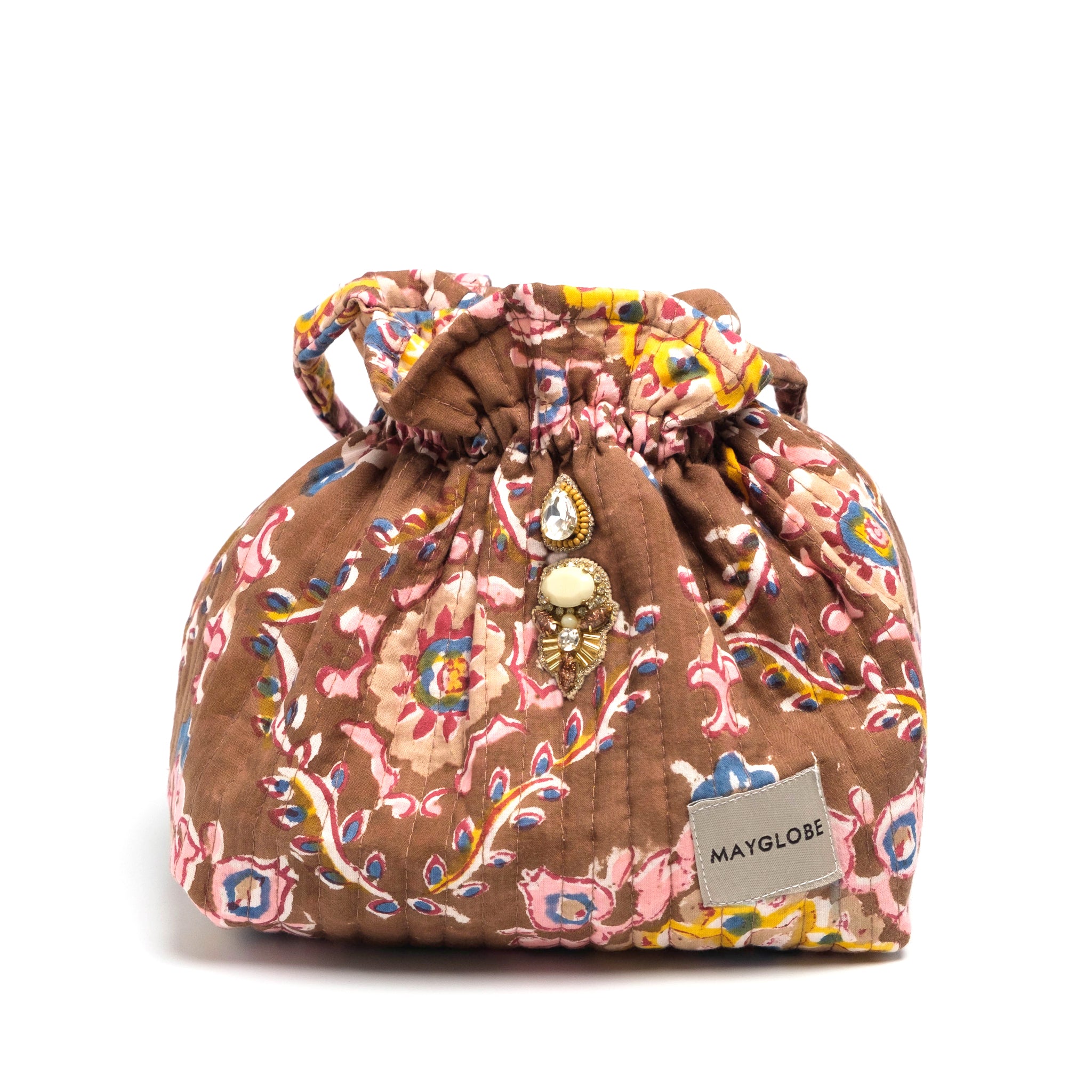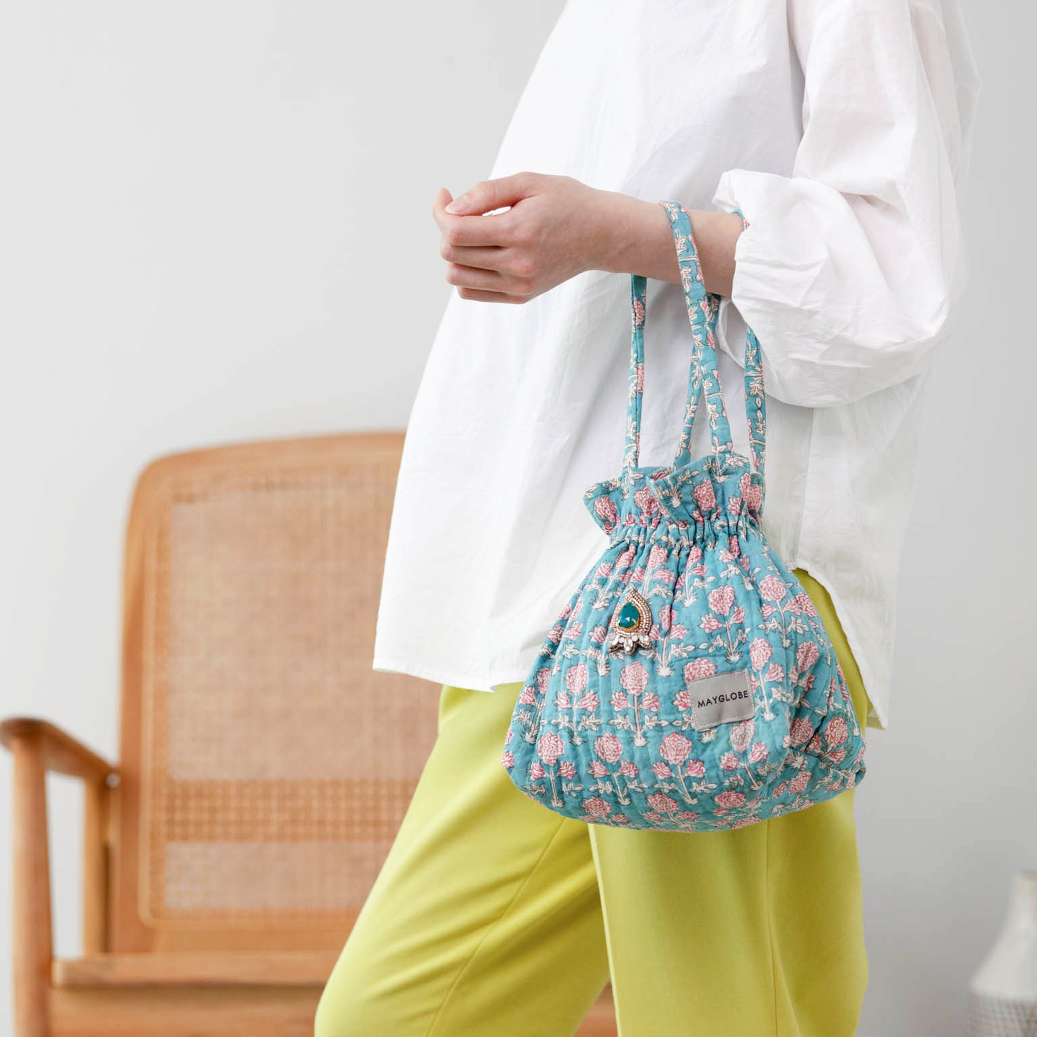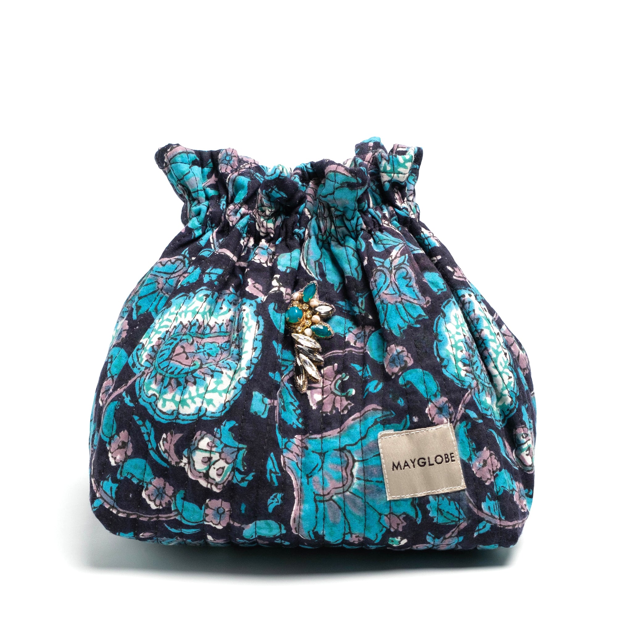 ブロックプリント巾着バッグ|ビジューモチーフ