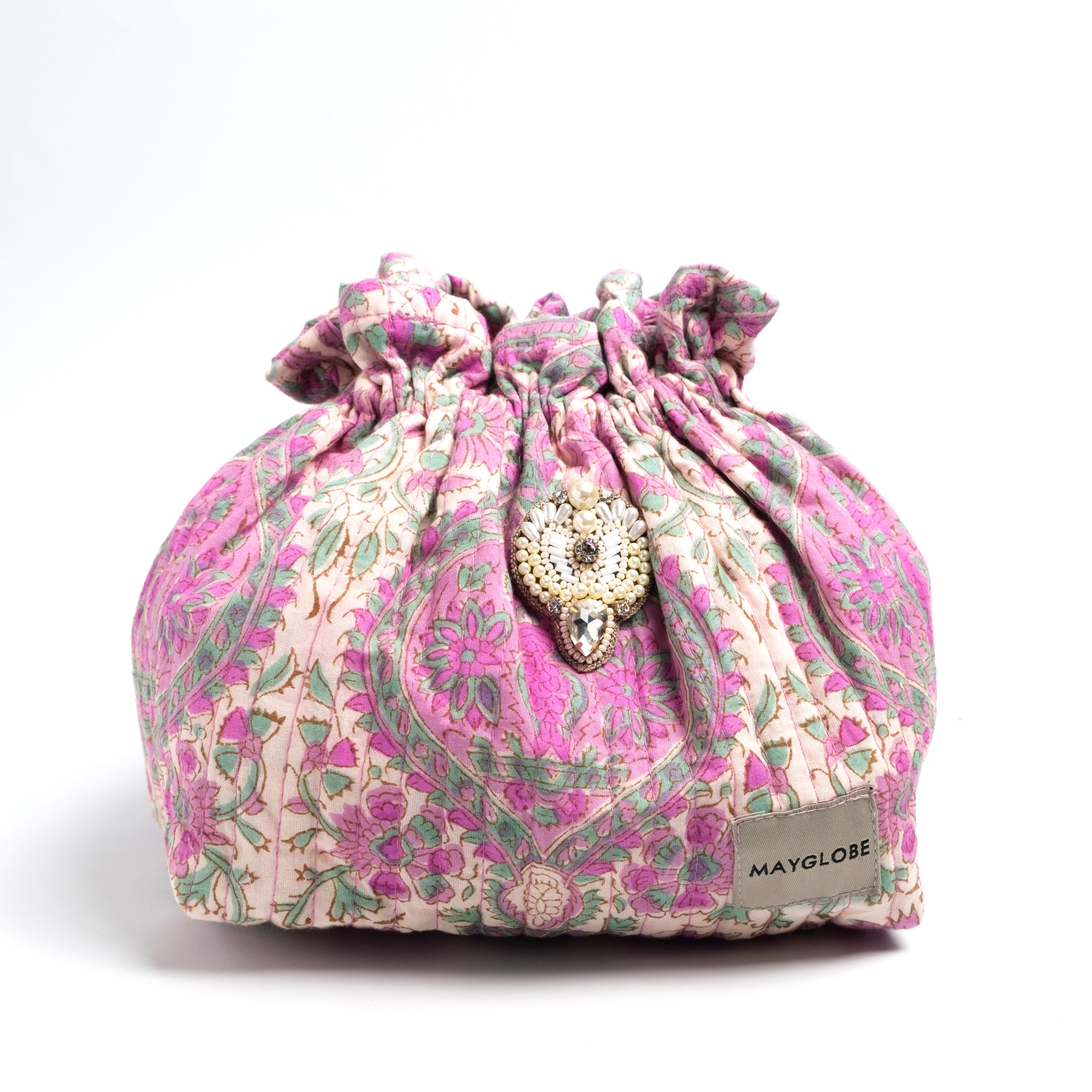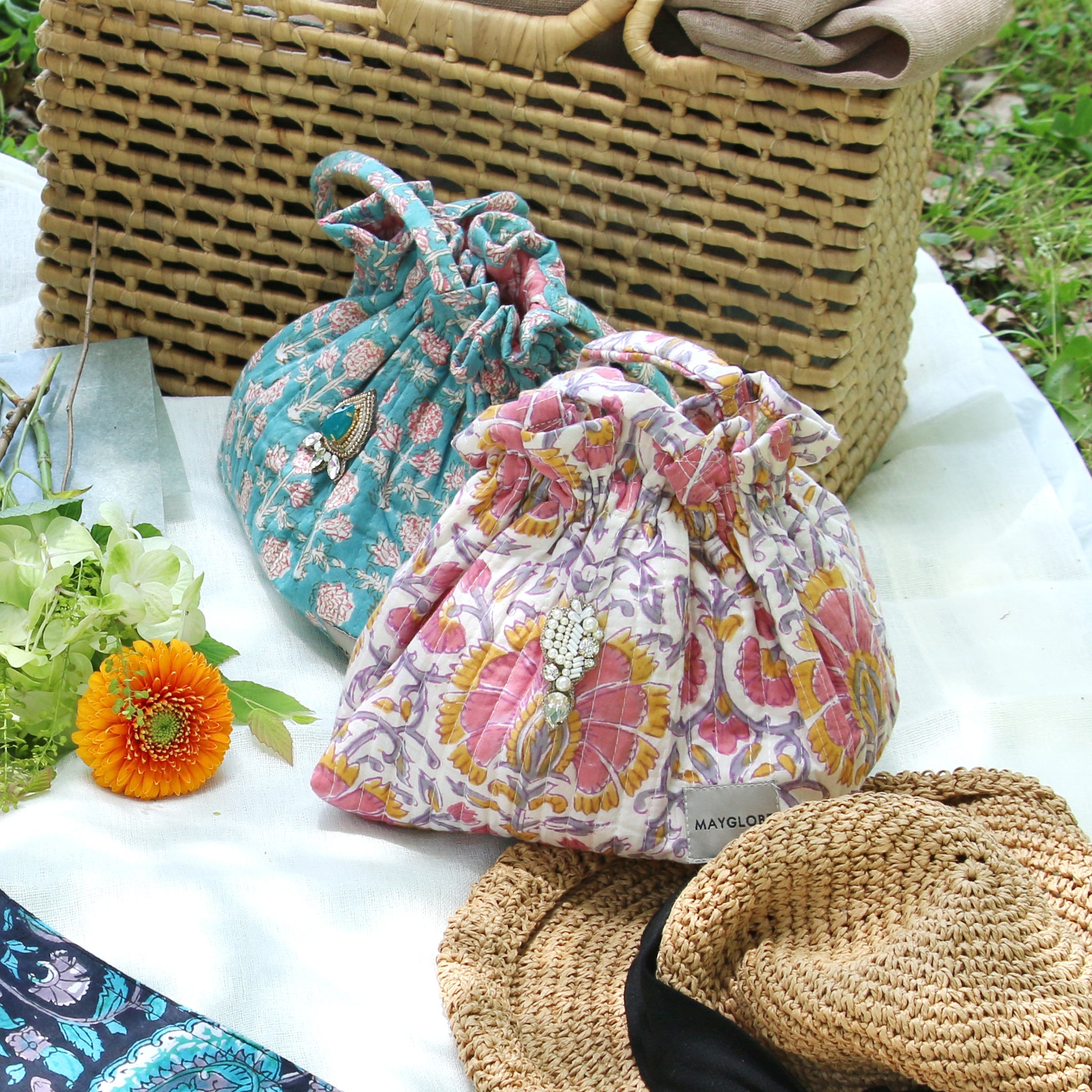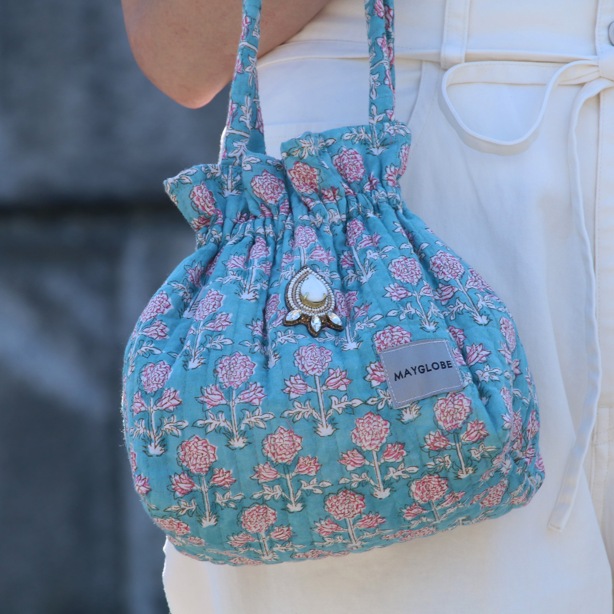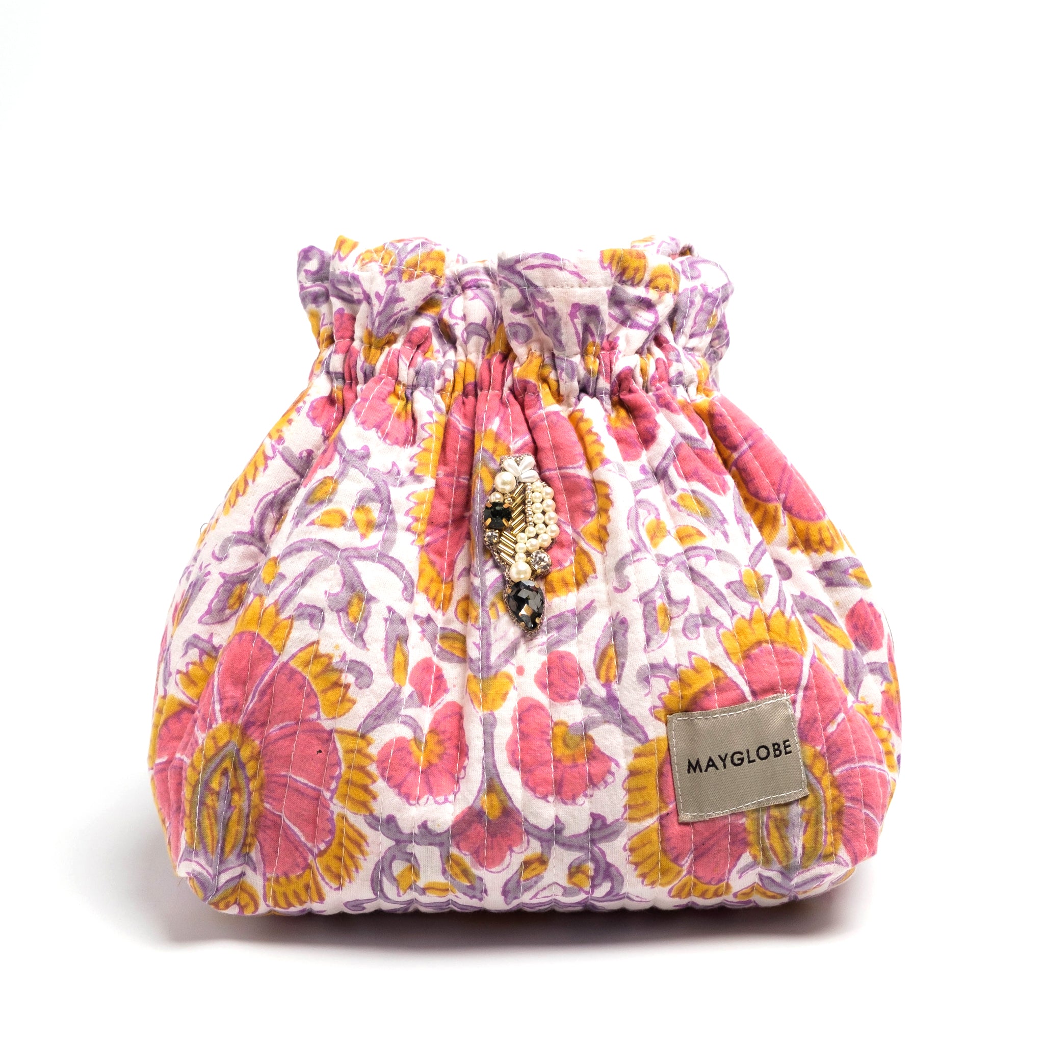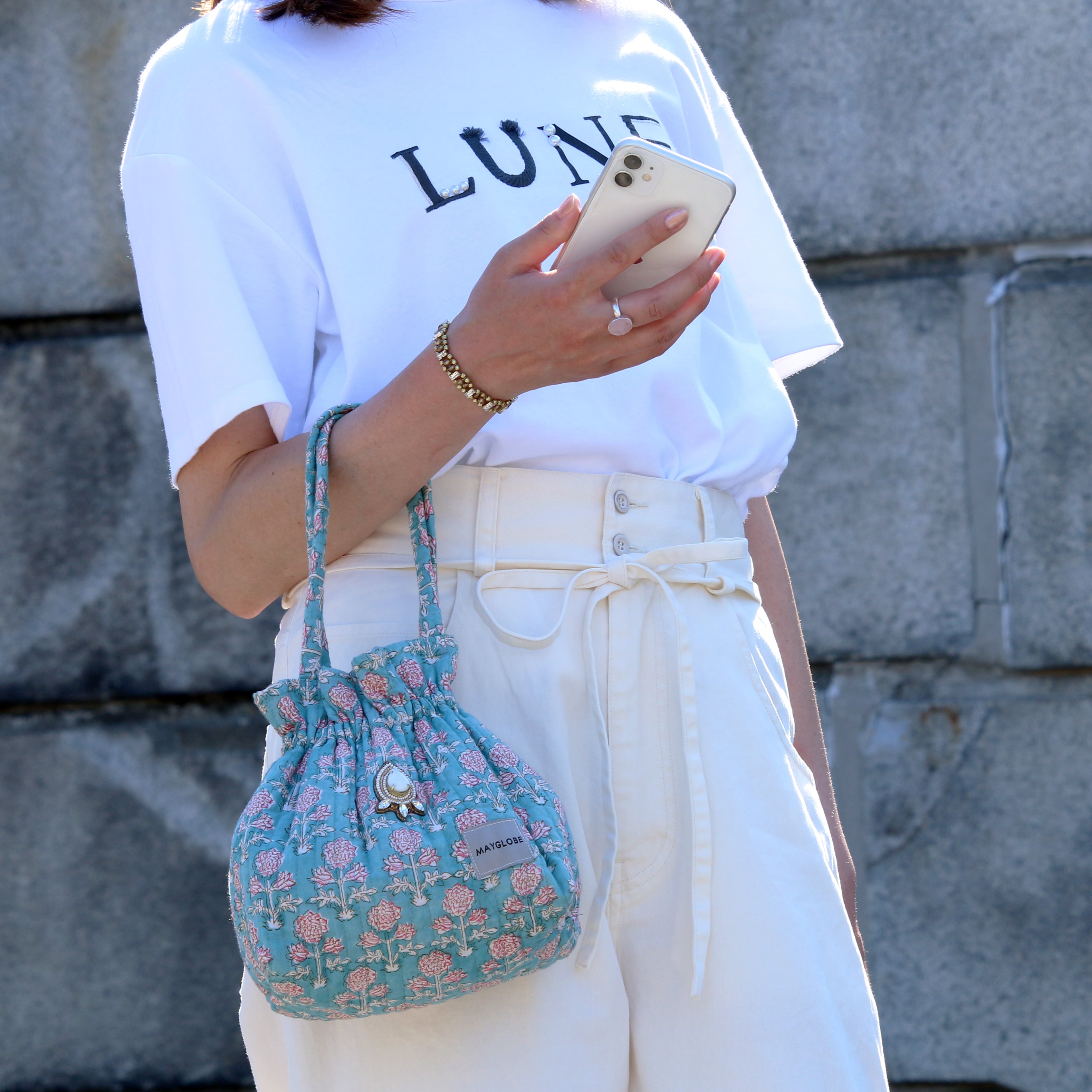 ブロックプリント巾着バッグ|ビジューモチーフ