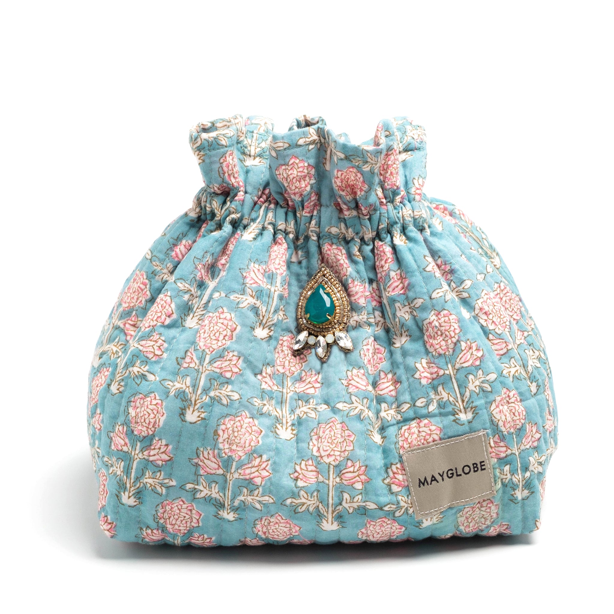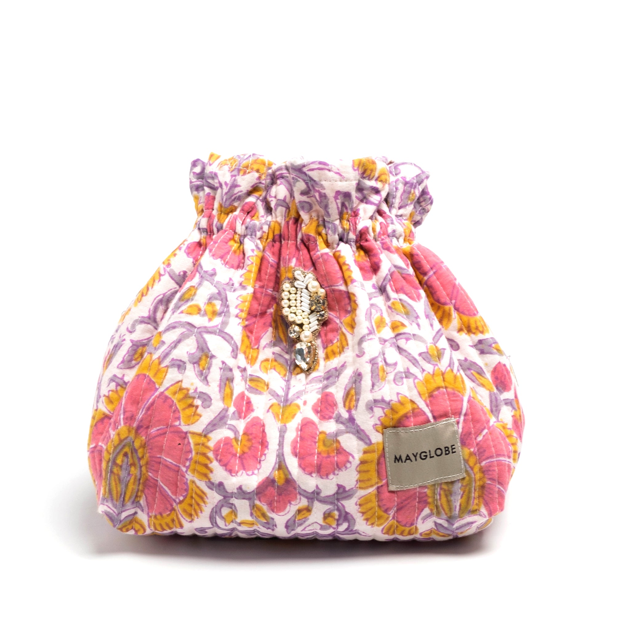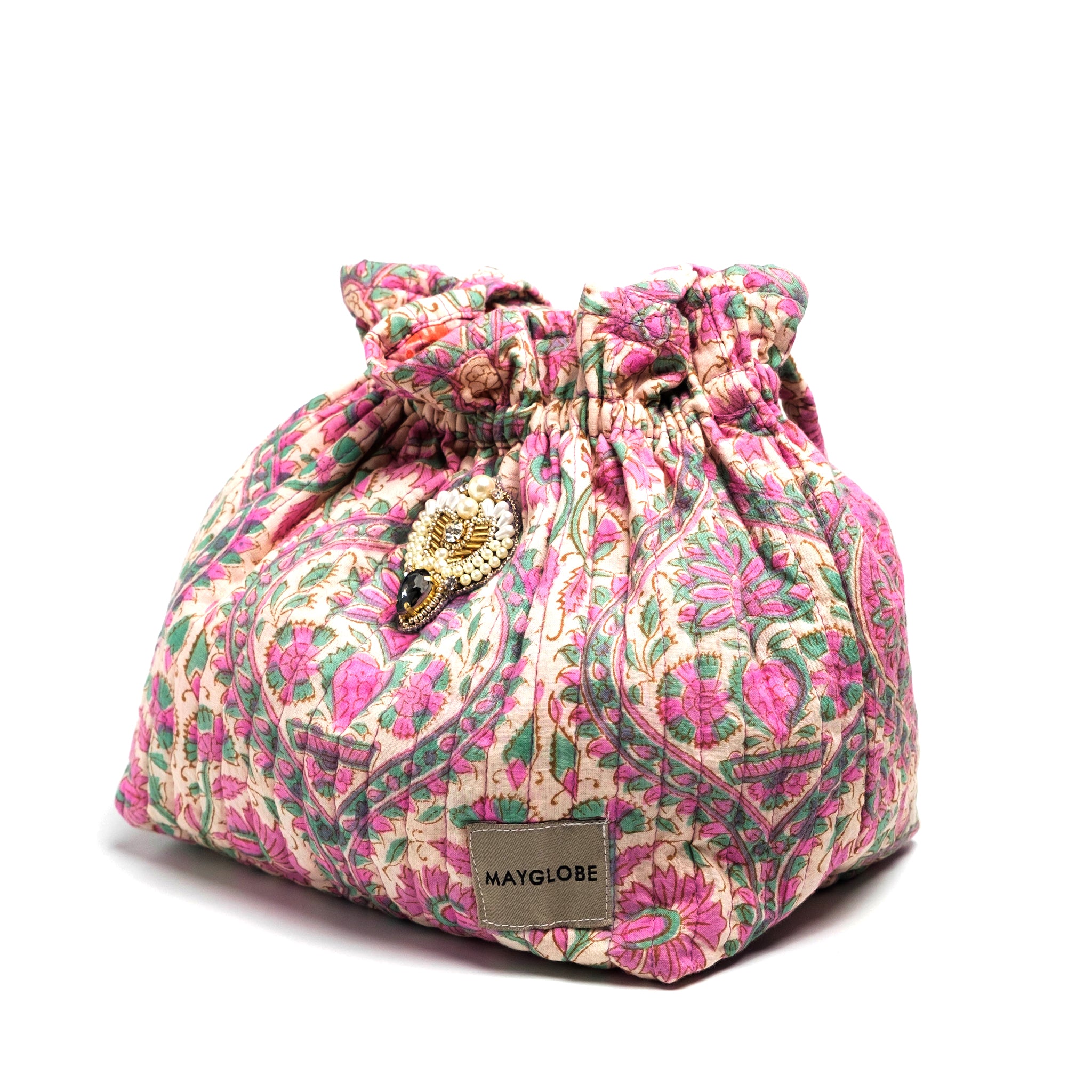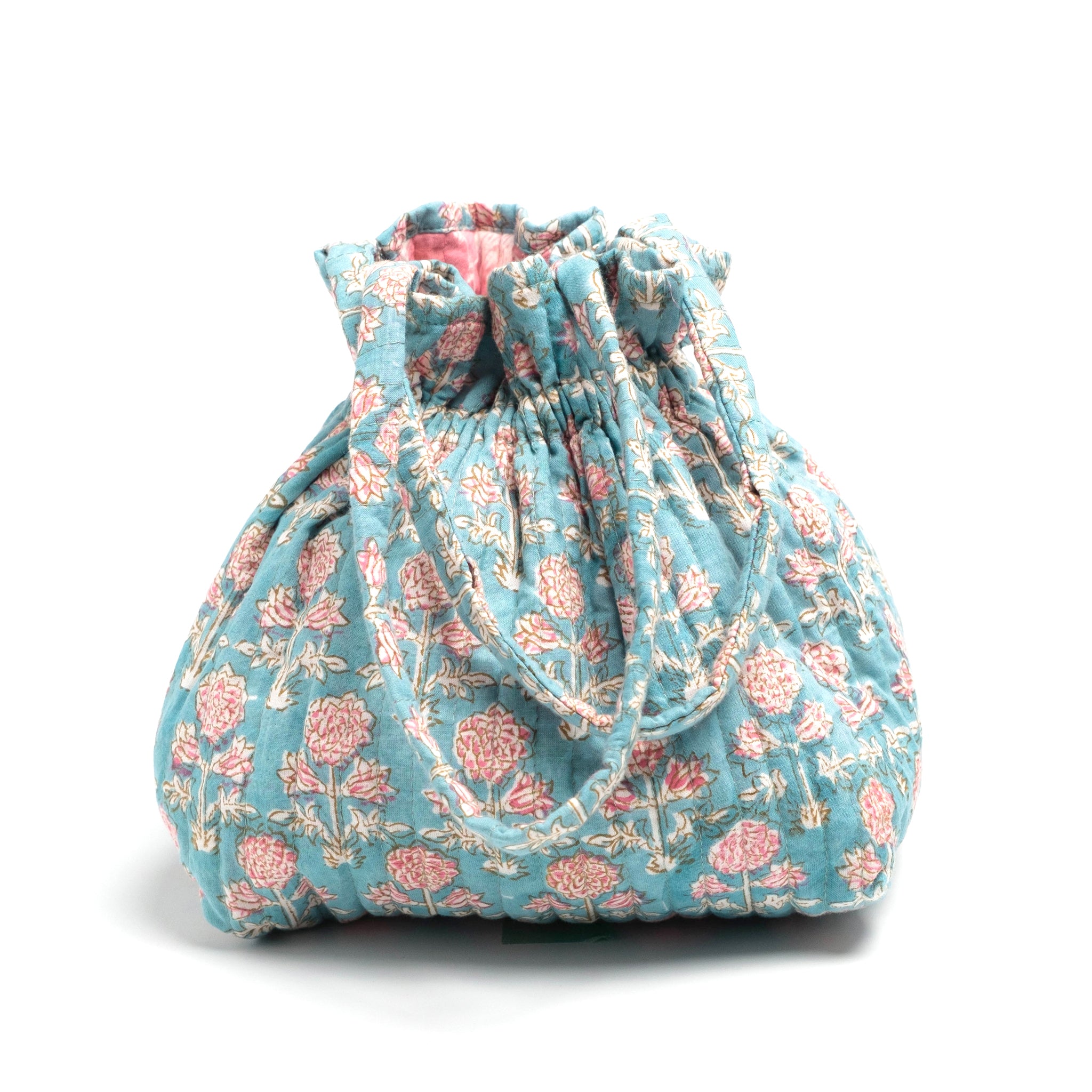 ブロックプリント巾着バッグ|ビジューモチーフ