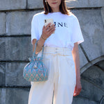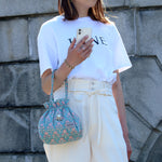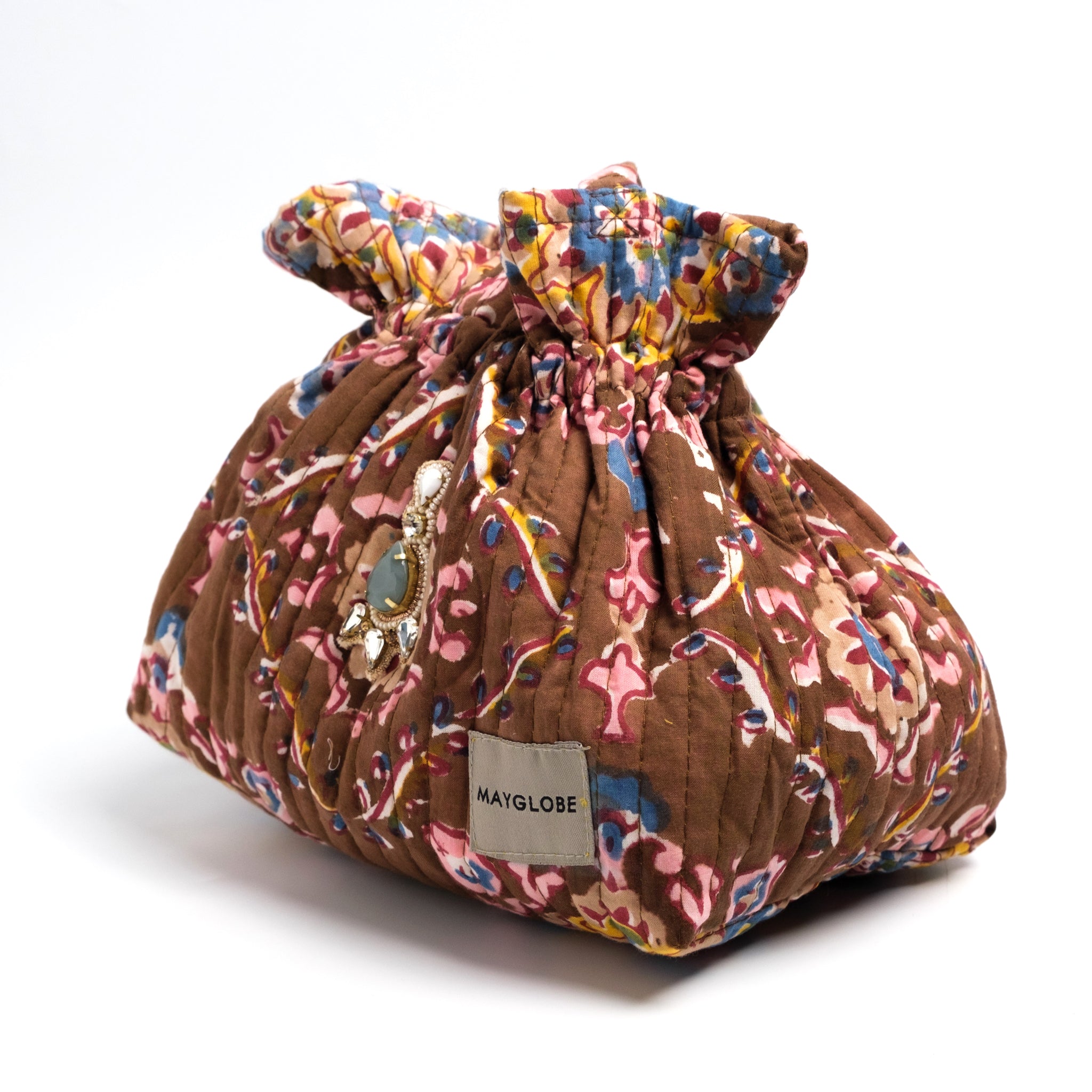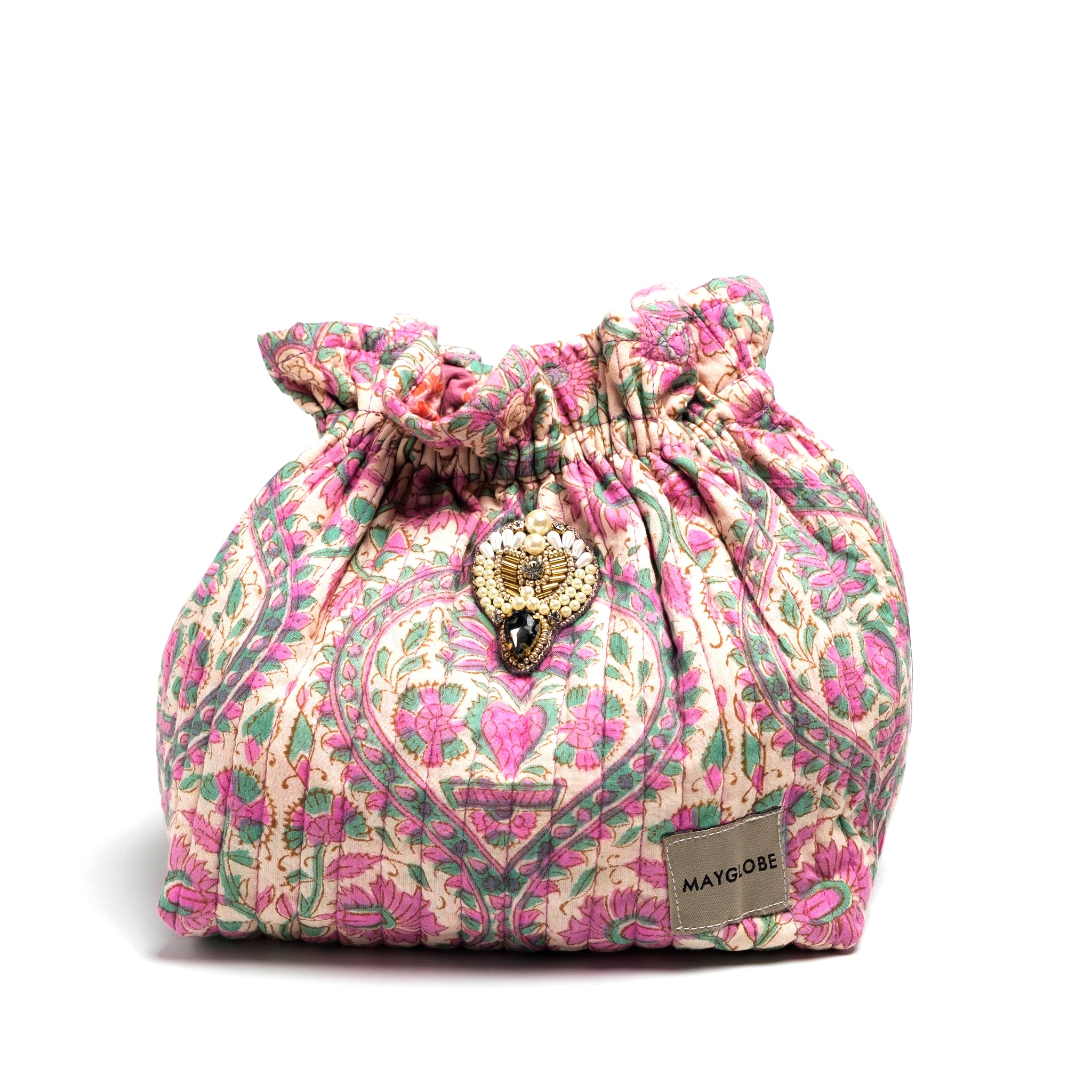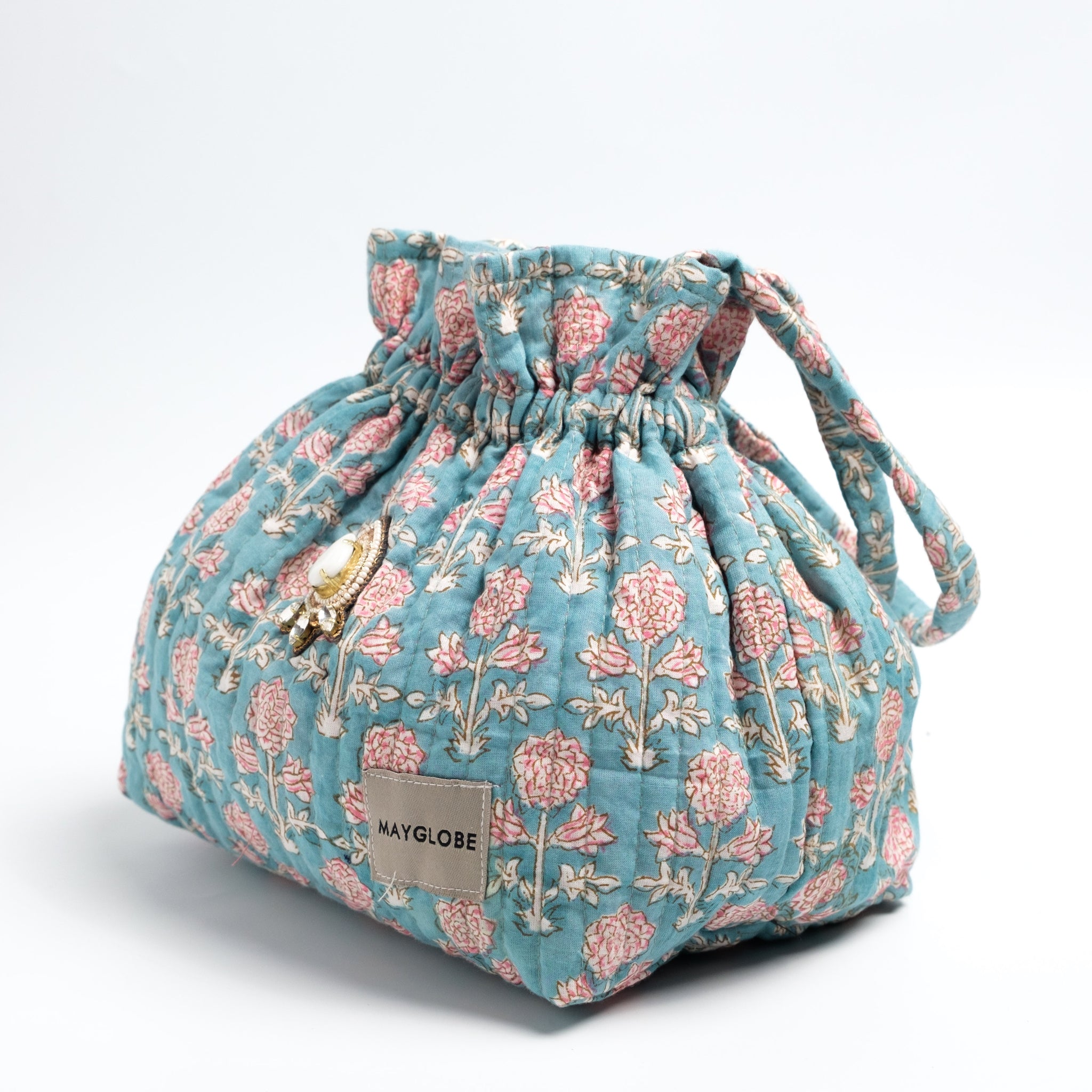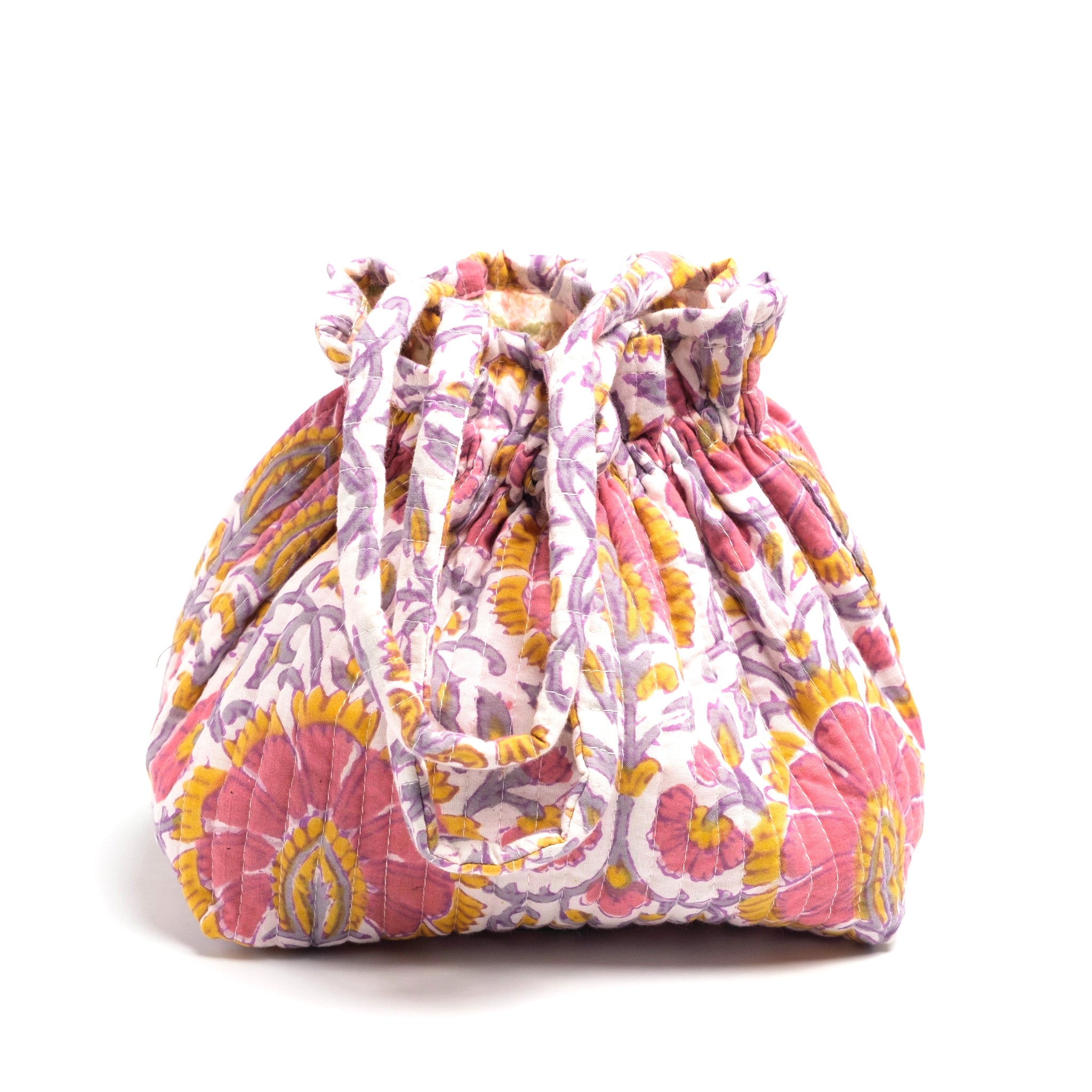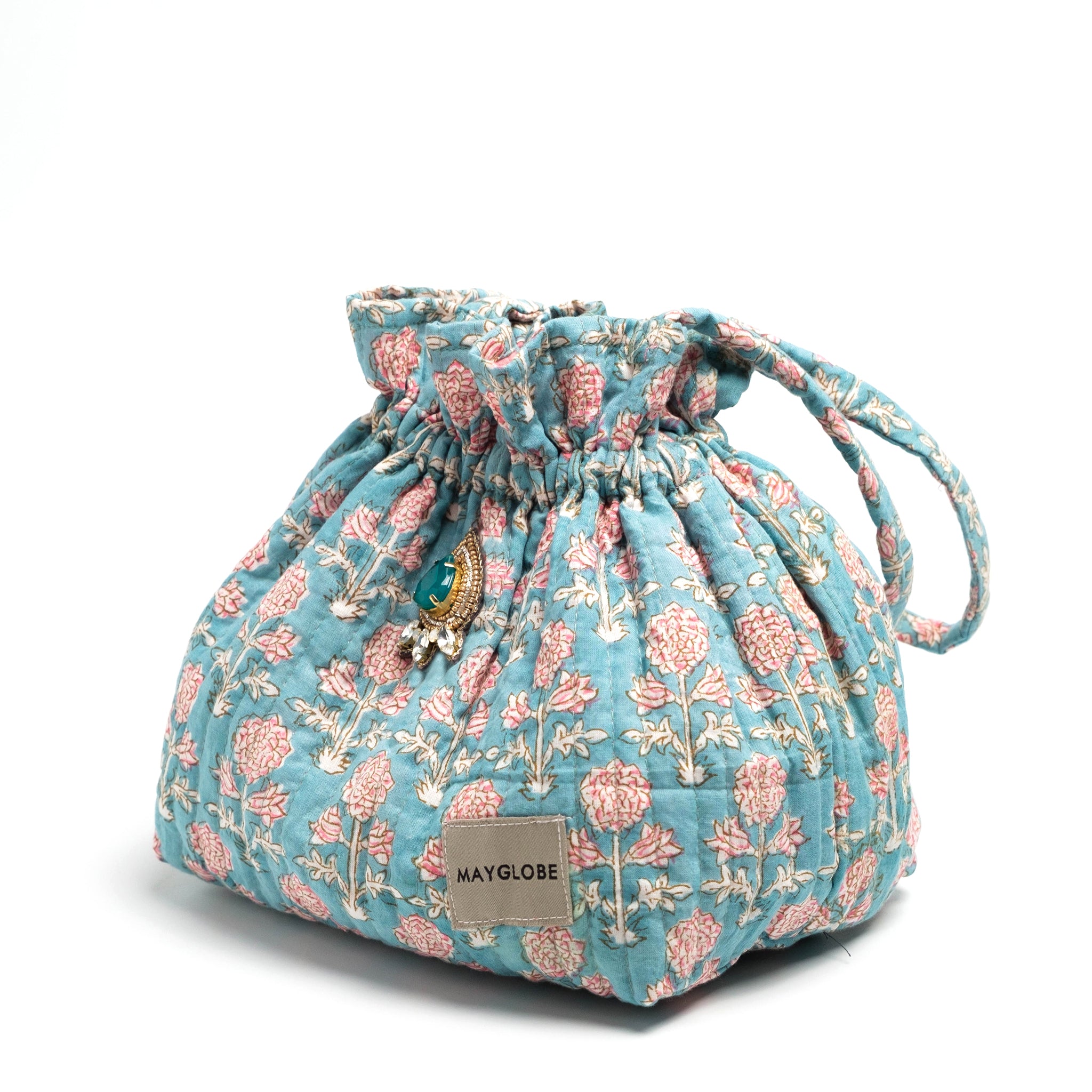 ブロックプリント巾着バッグ|ビジューモチーフ