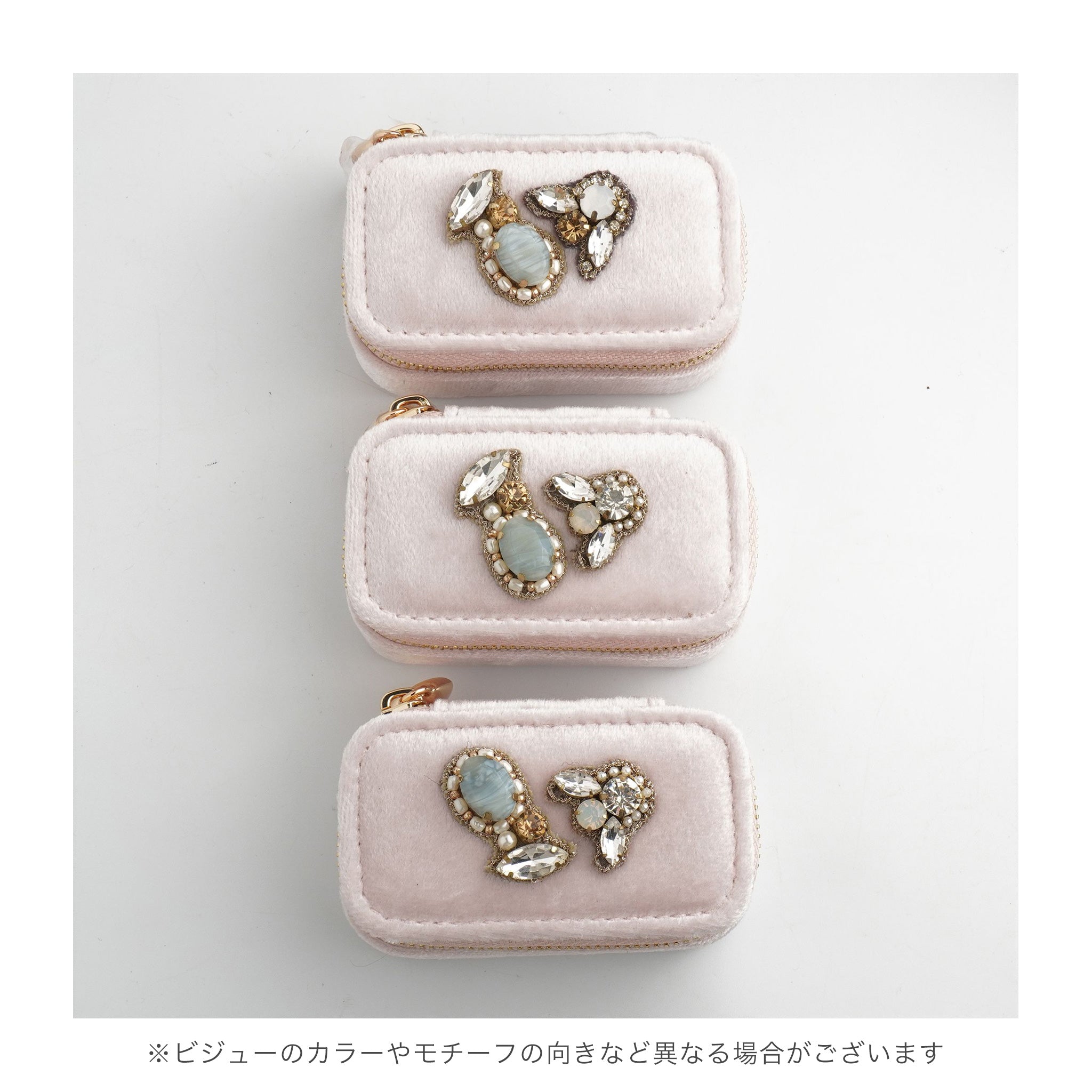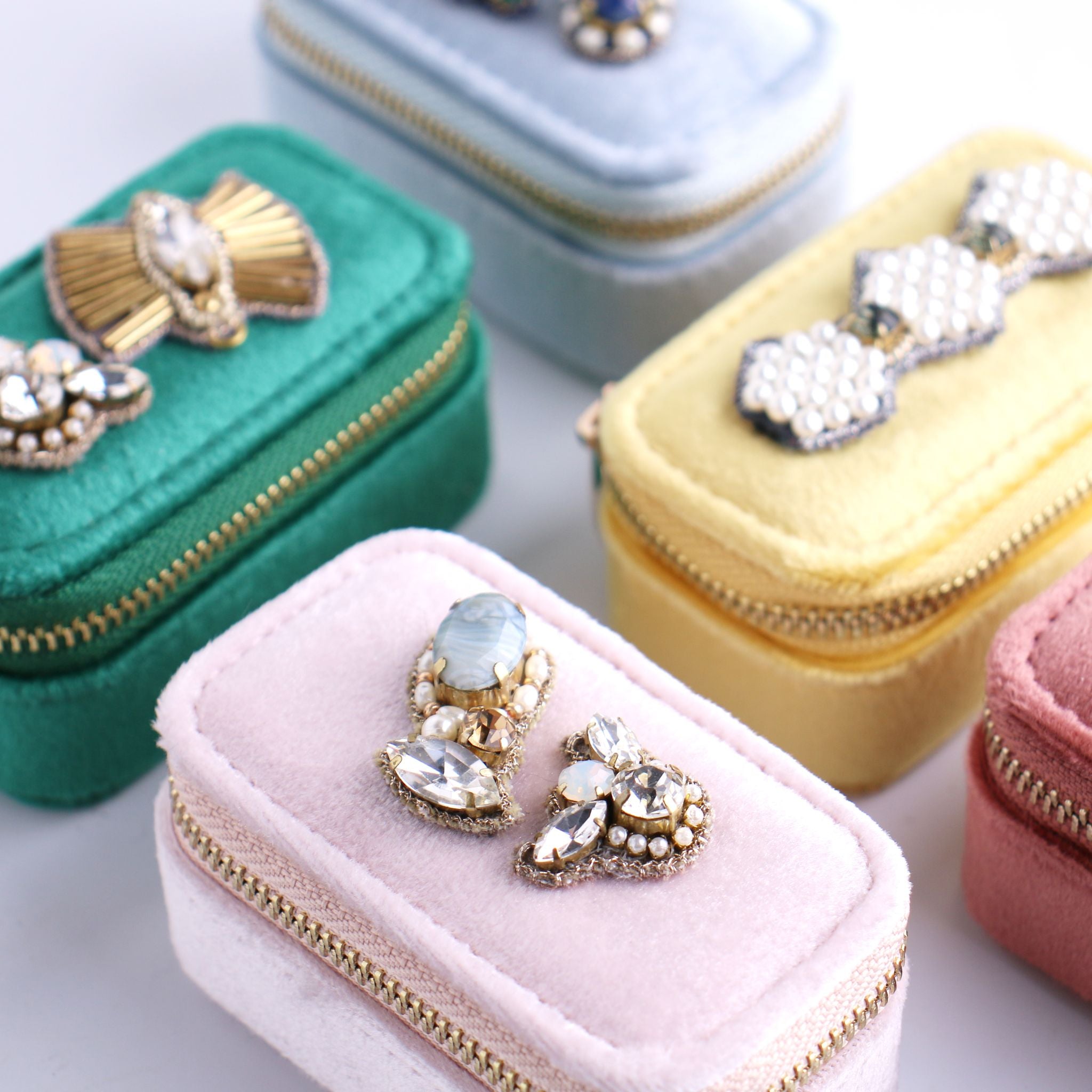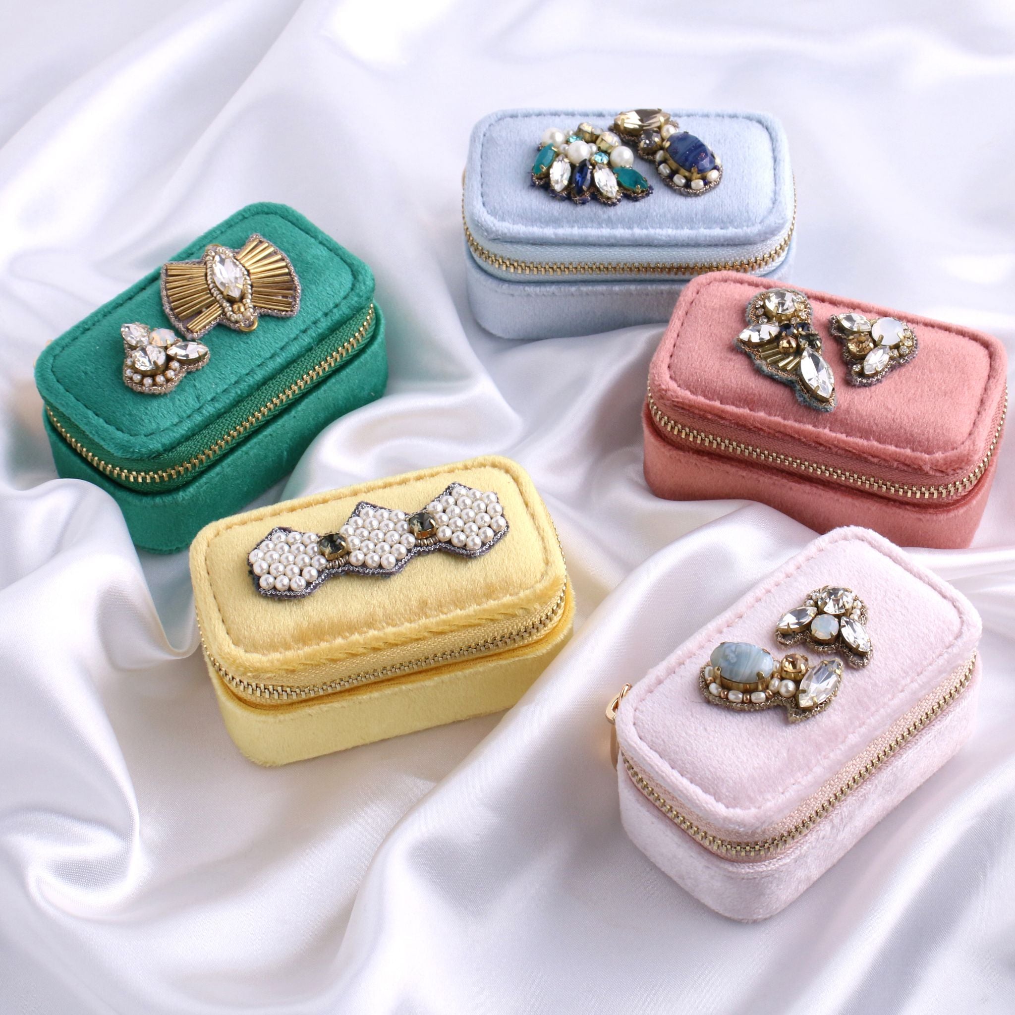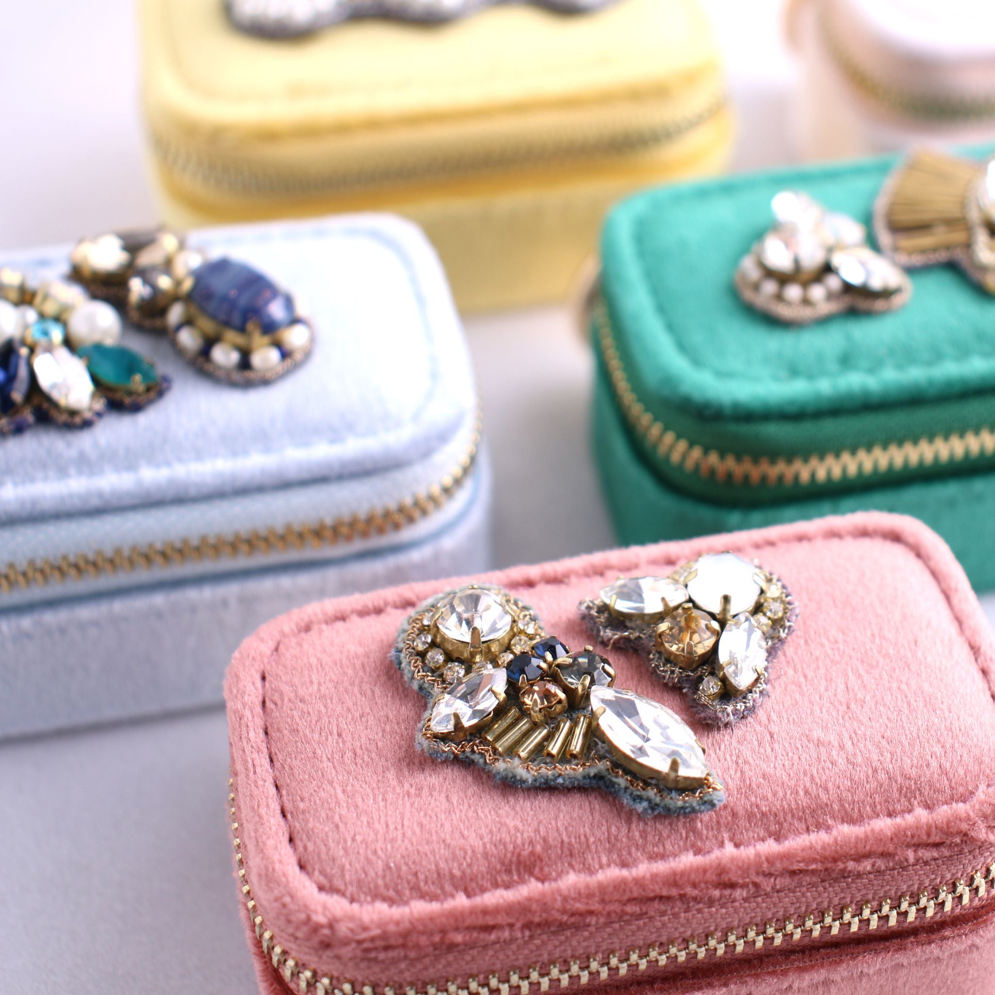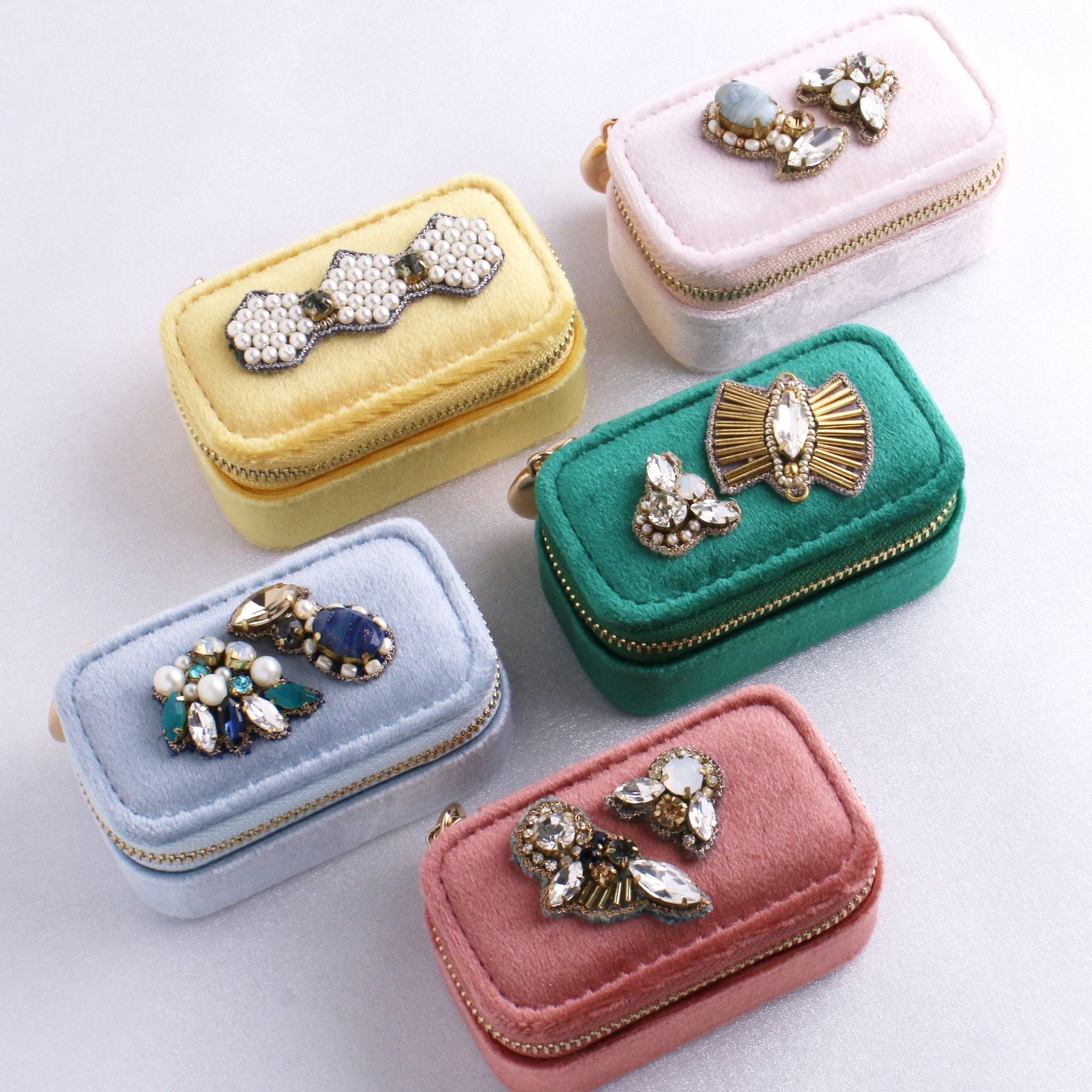 MAYGLOBEでしか手に入らない刺繍モチーフをあしらった特別仕様のジュエリーボックス。ご自宅使用はもちろん、お出かけ用に持ち歩く時にも大活躍。ファスナー式でしっかりと口が開くので、取り出しやすいのも嬉しいポイント。ボックスは高級感のあるベルベットを採用。お気に入りのジュエリーを大切に保管できます。