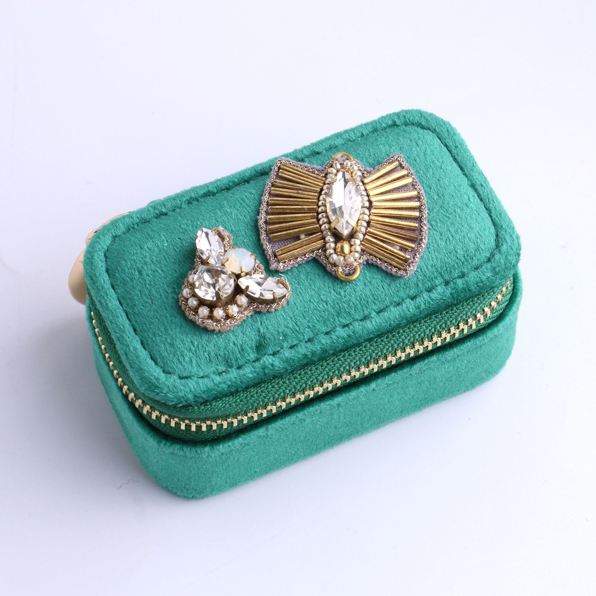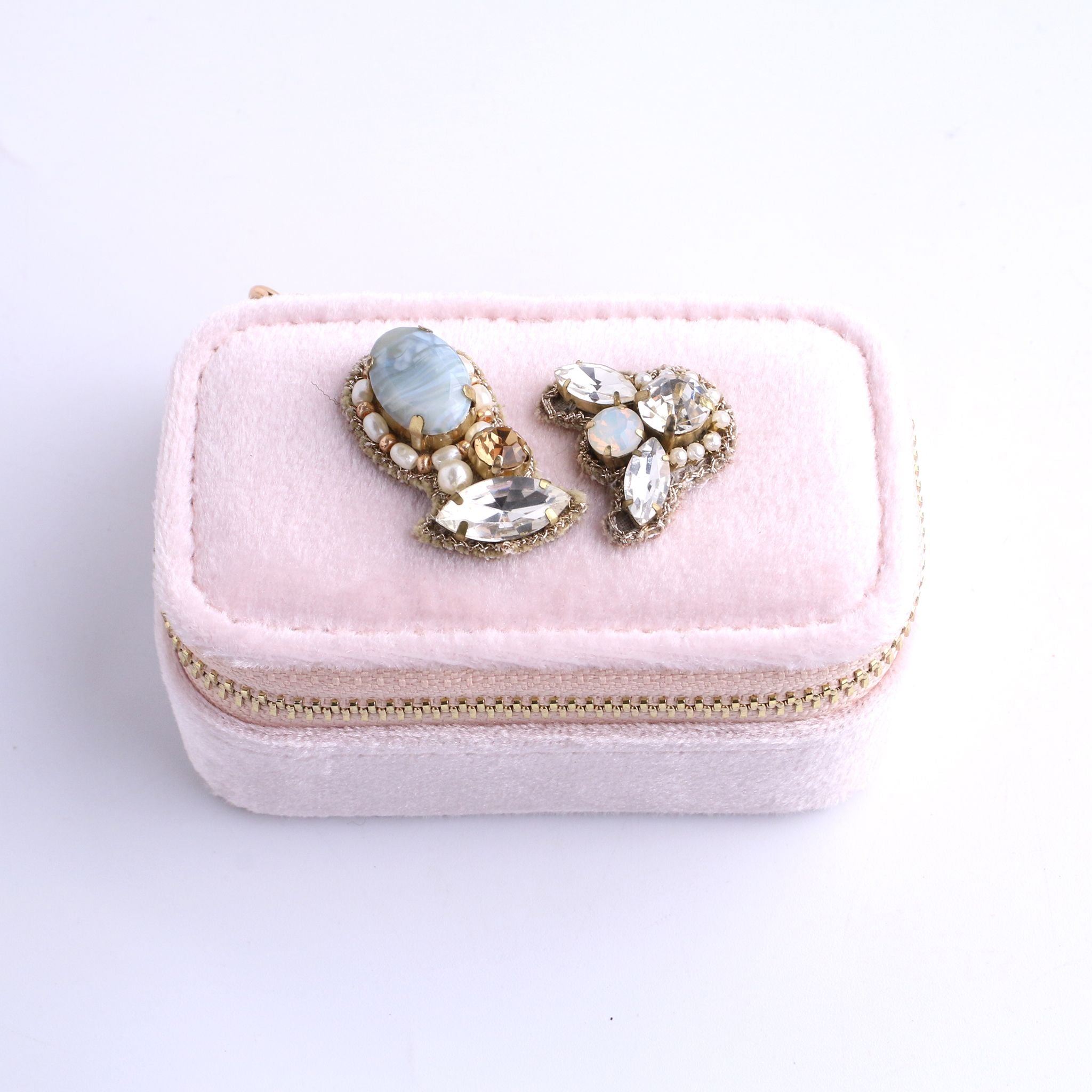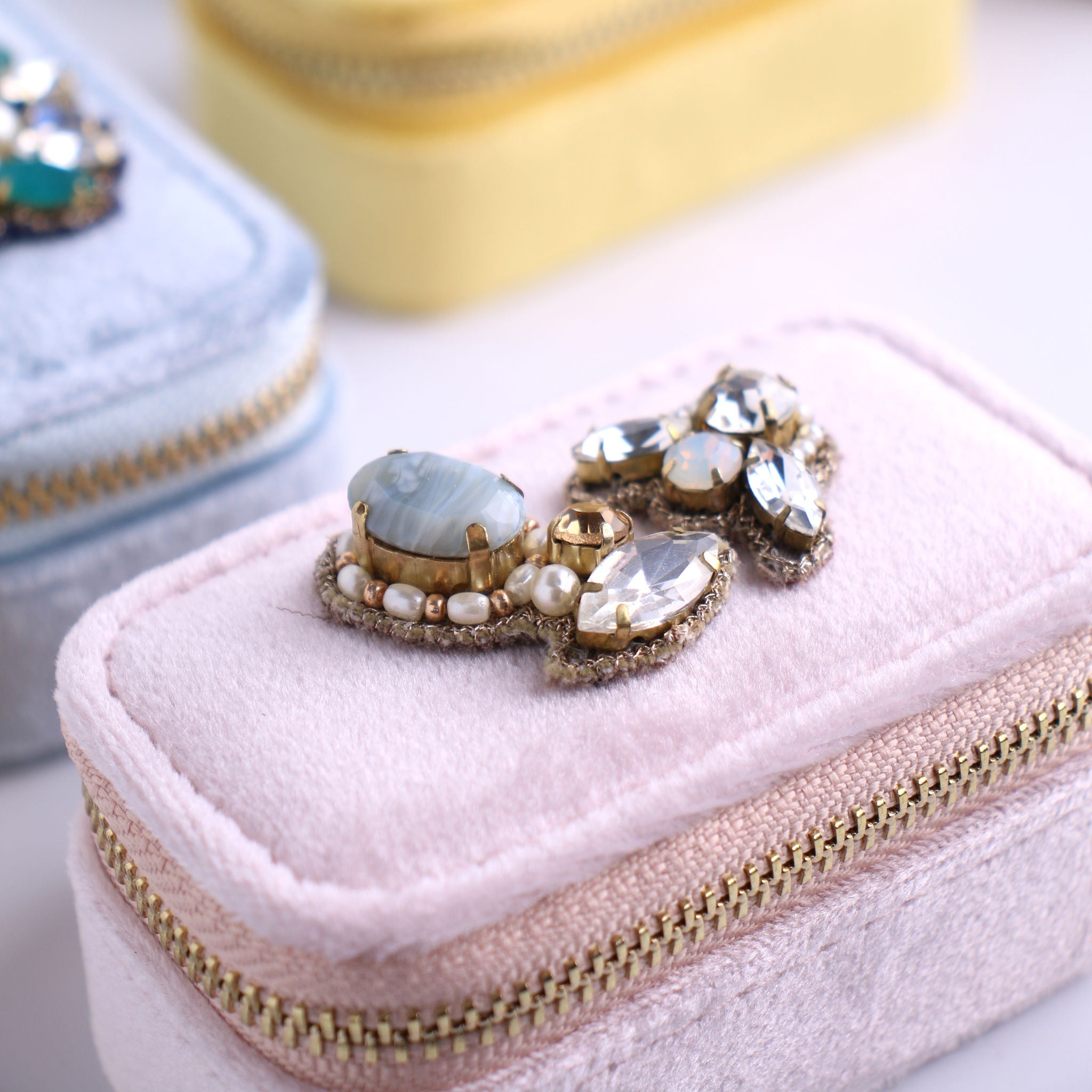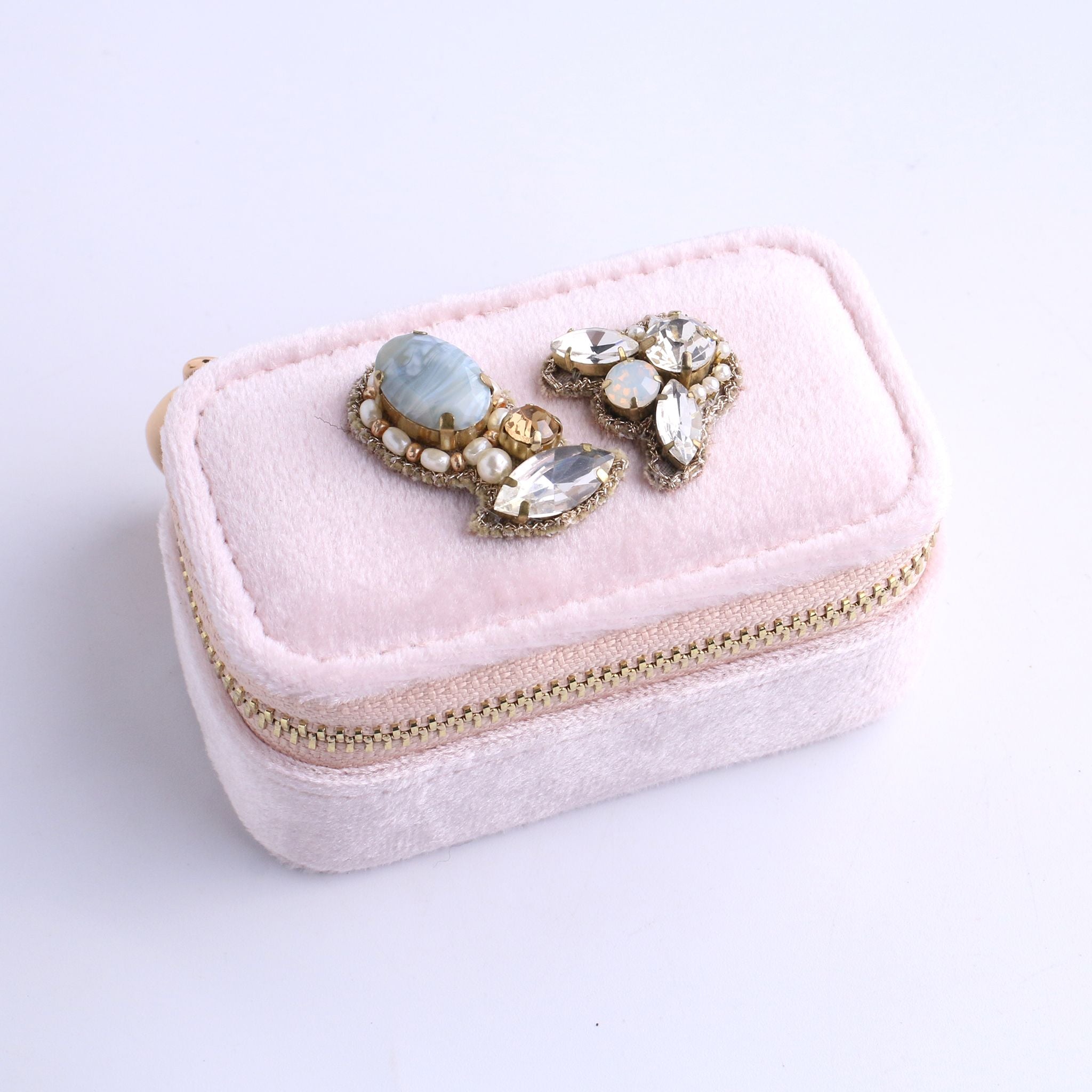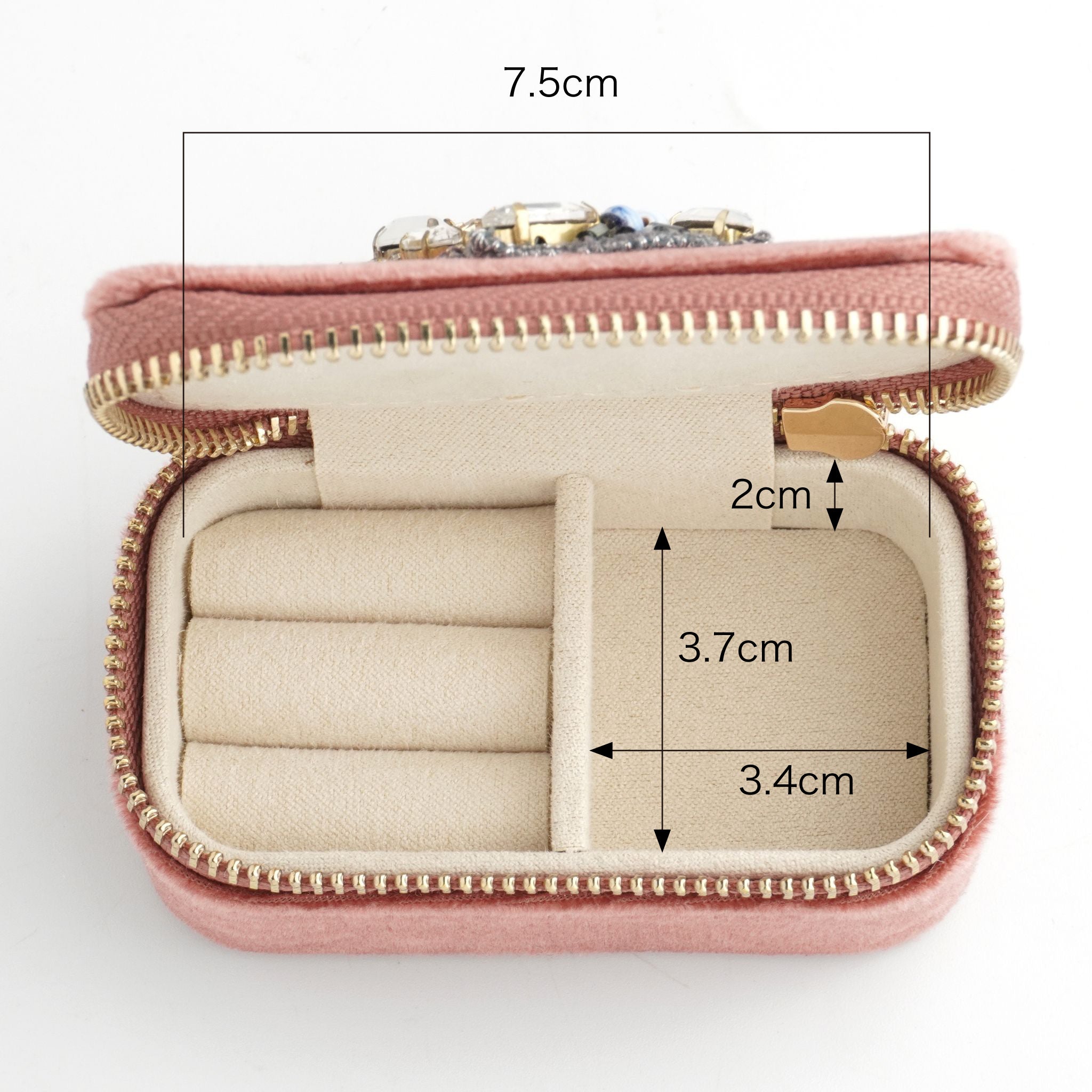 MAYGLOBEでしか手に入らない刺繍モチーフをあしらった特別仕様のジュエリーボックス。ご自宅使用はもちろん、お出かけ用に持ち歩く時にも大活躍。ファスナー式でしっかりと口が開くので、取り出しやすいのも嬉しいポイント。ボックスは高級感のあるベルベットを採用。お気に入りのジュエリーを大切に保管できます。