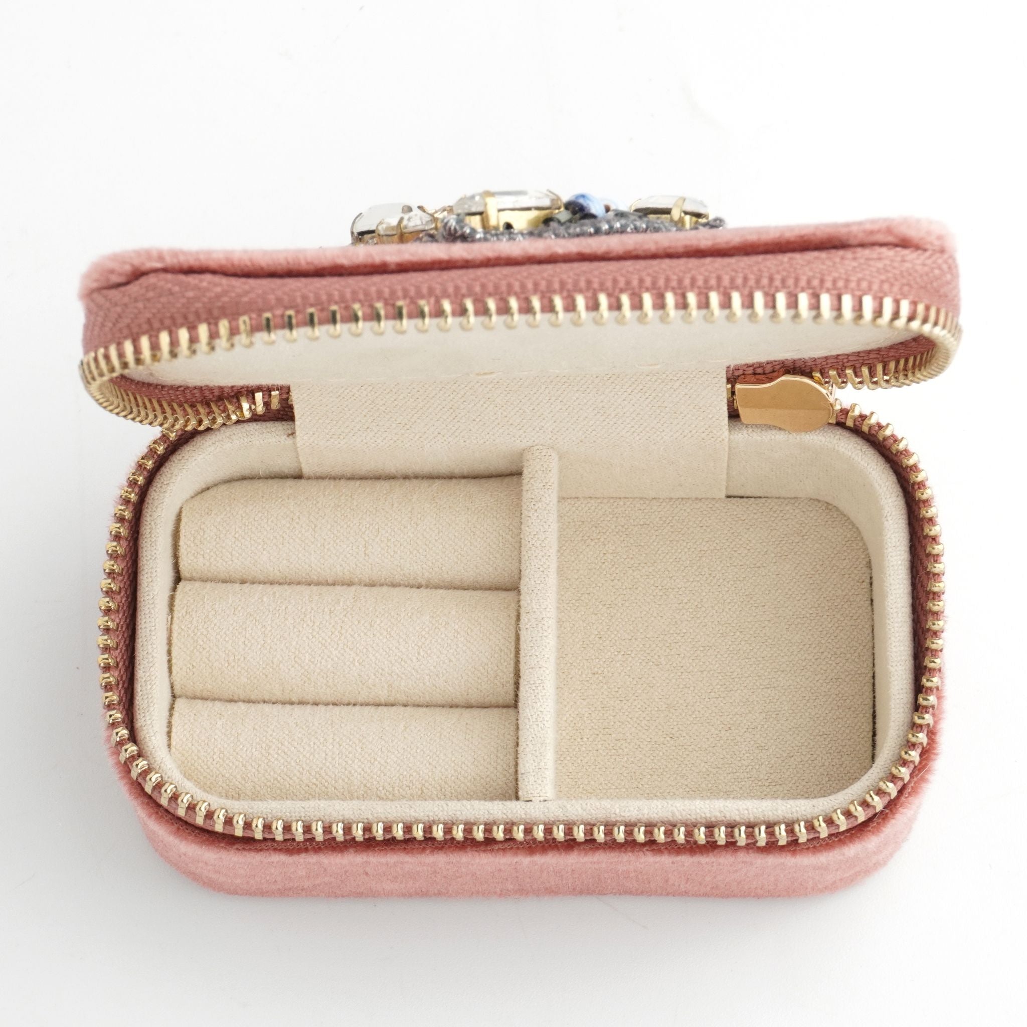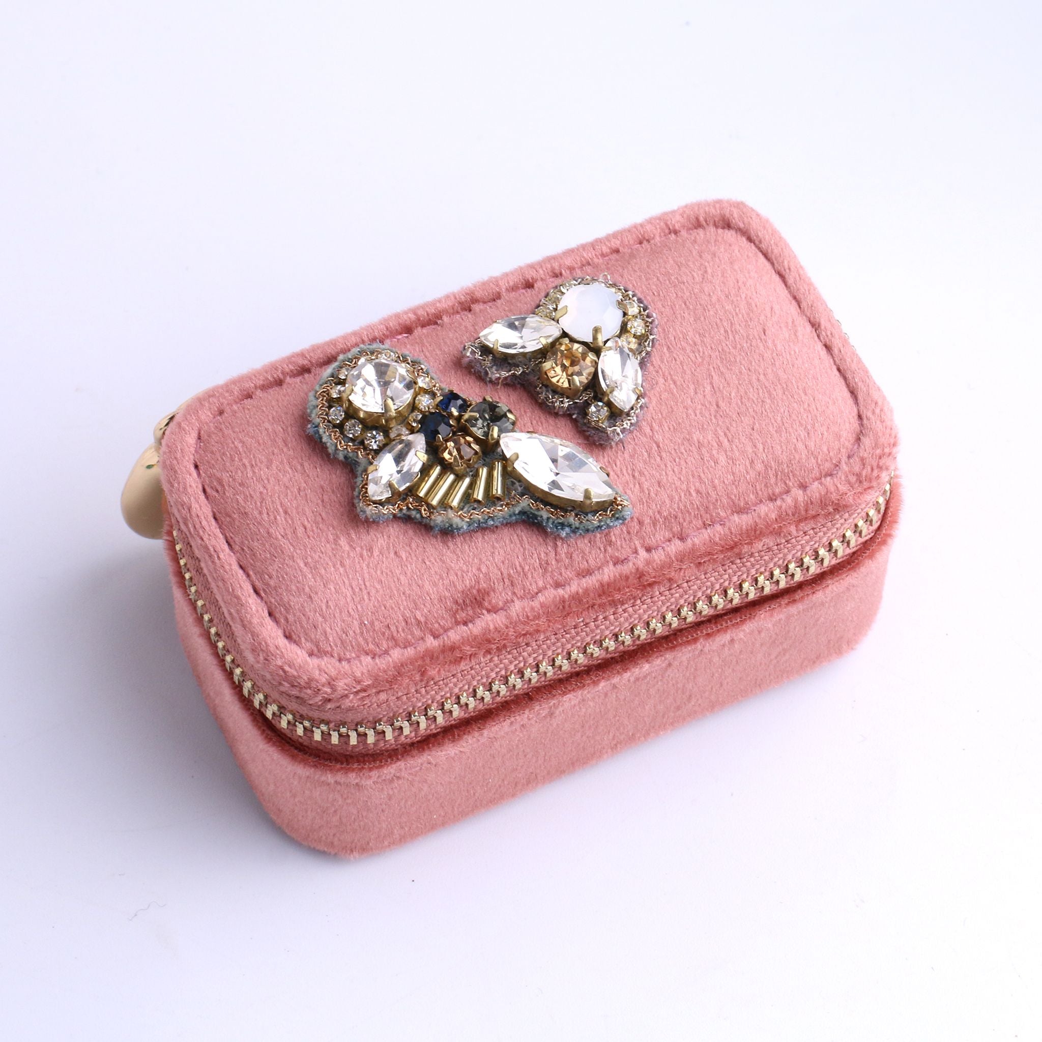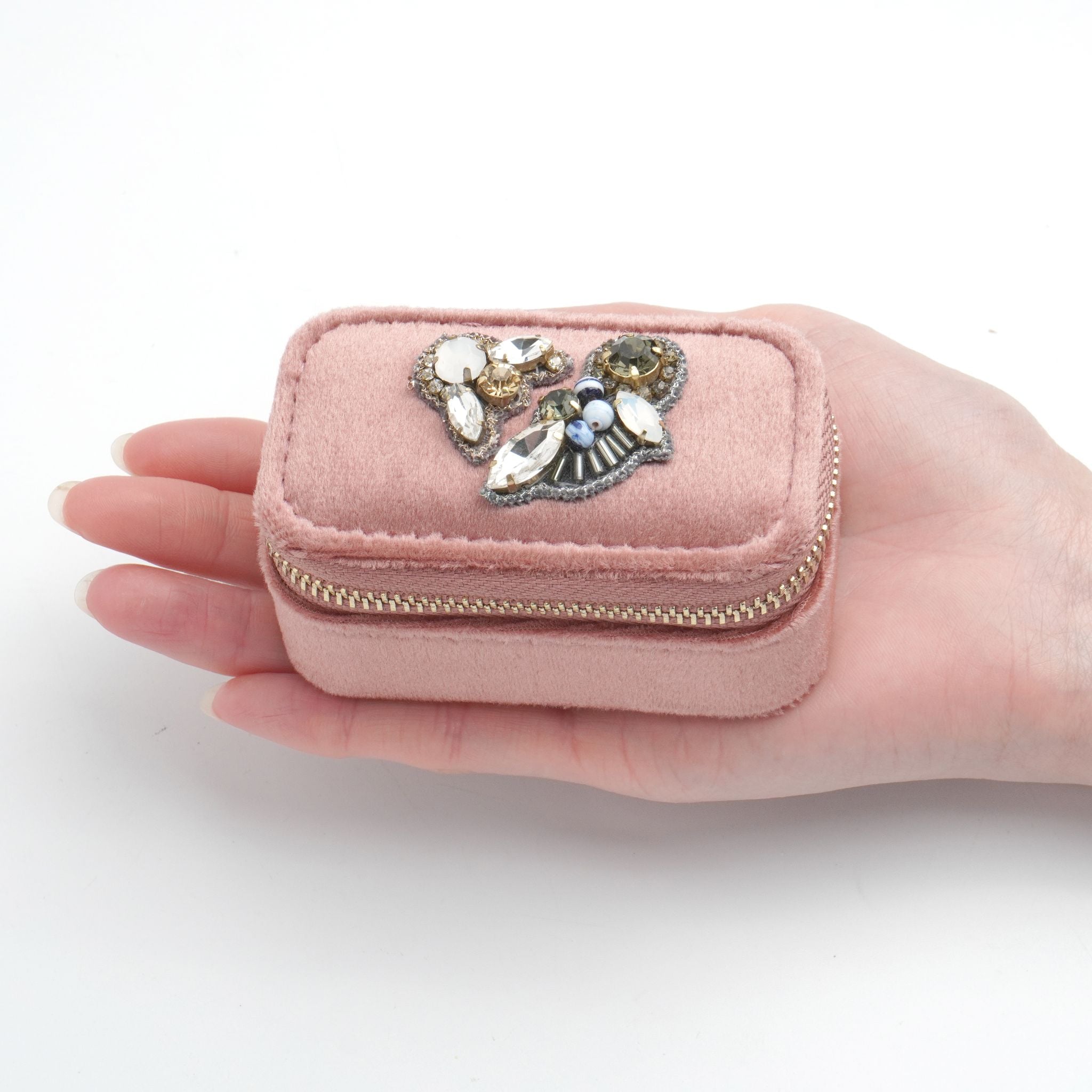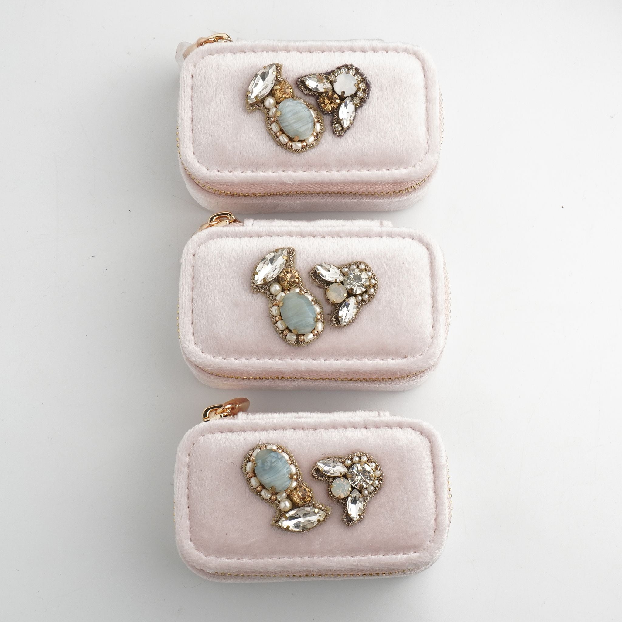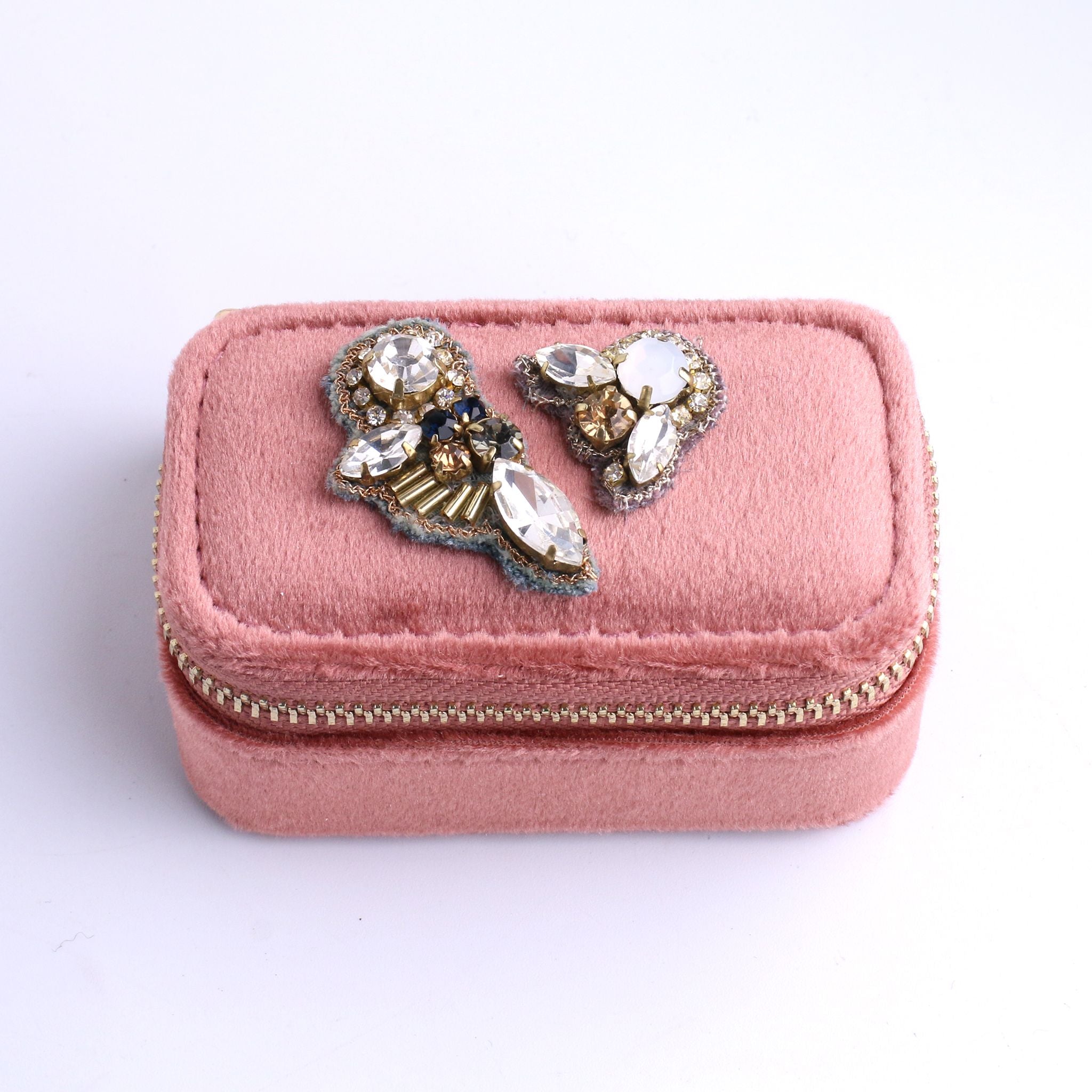 MAYGLOBEでしか手に入らない刺繍モチーフをあしらった特別仕様のジュエリーボックス。ご自宅使用はもちろん、お出かけ用に持ち歩く時にも大活躍。ファスナー式でしっかりと口が開くので、取り出しやすいのも嬉しいポイント。ボックスは高級感のあるベルベットを採用。お気に入りのジュエリーを大切に保管できます。