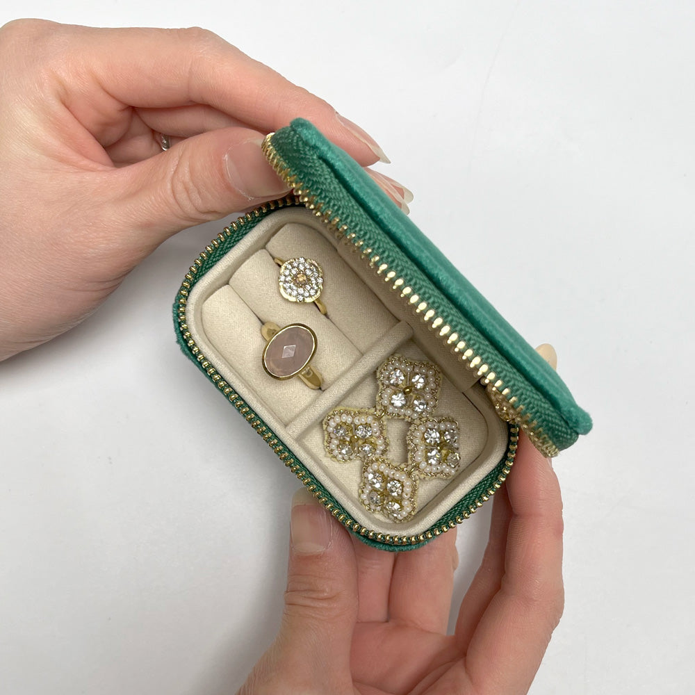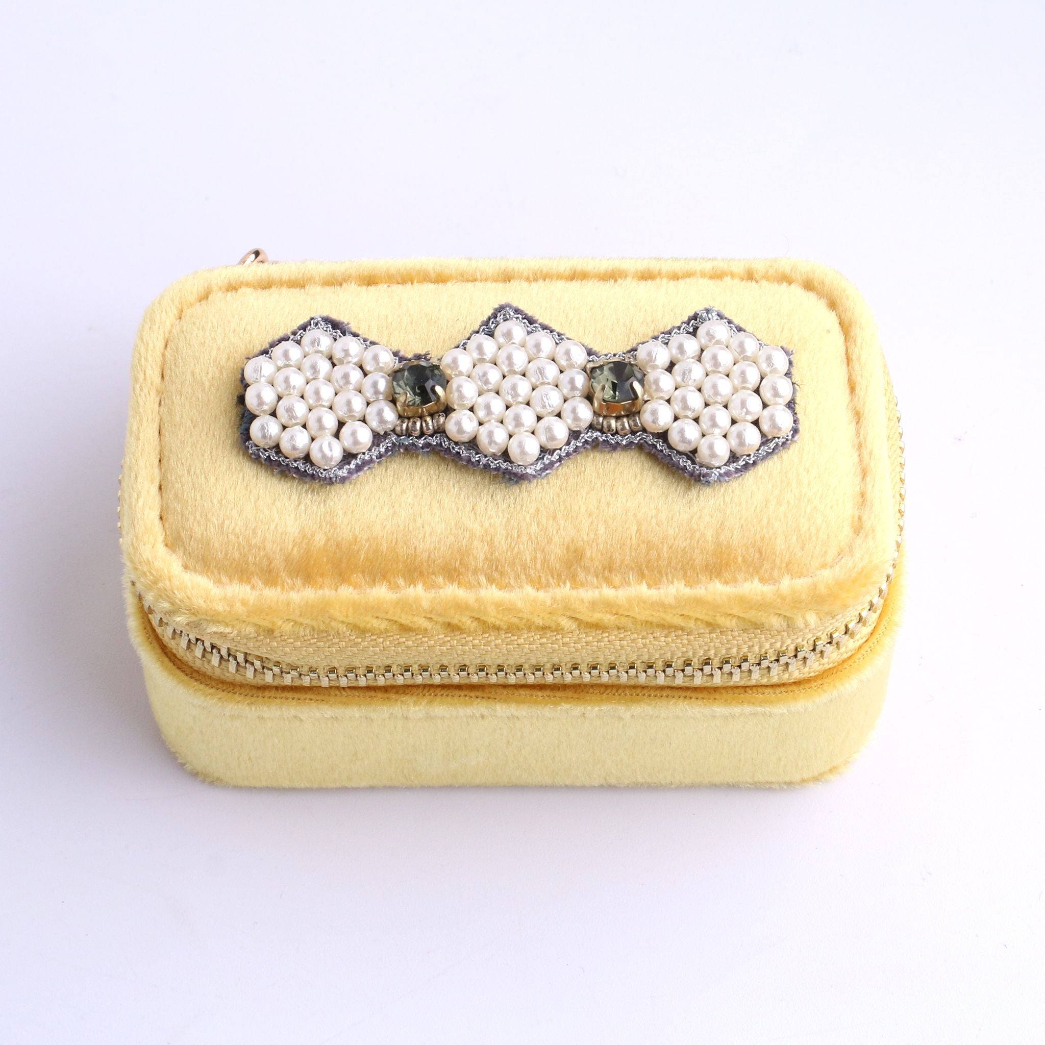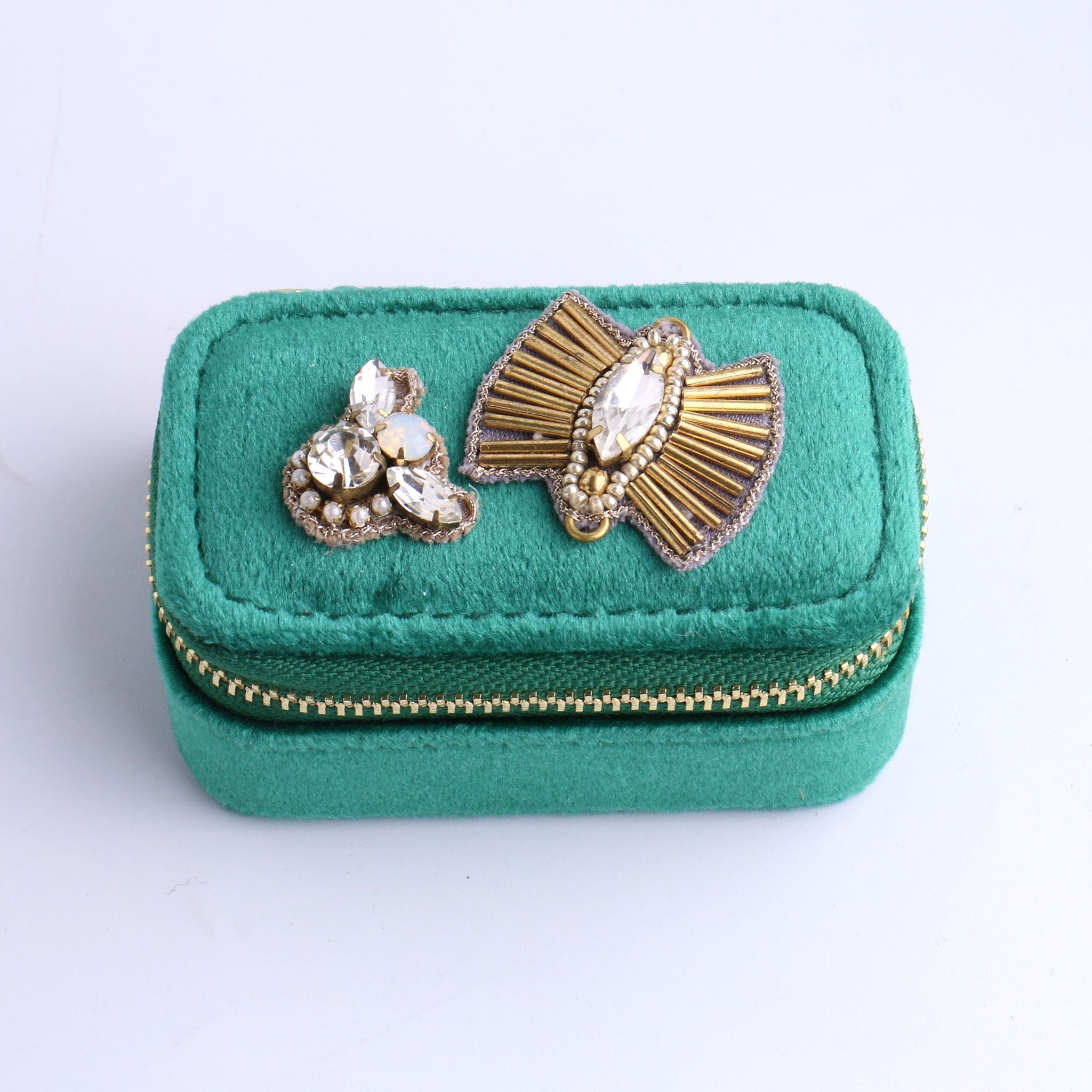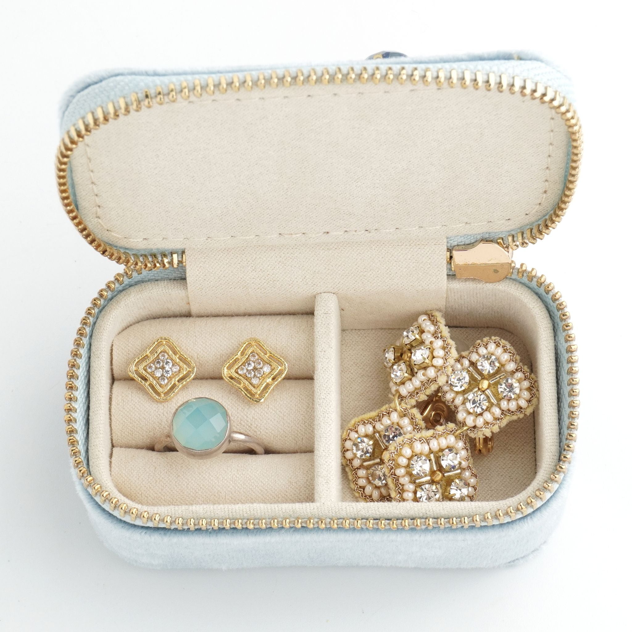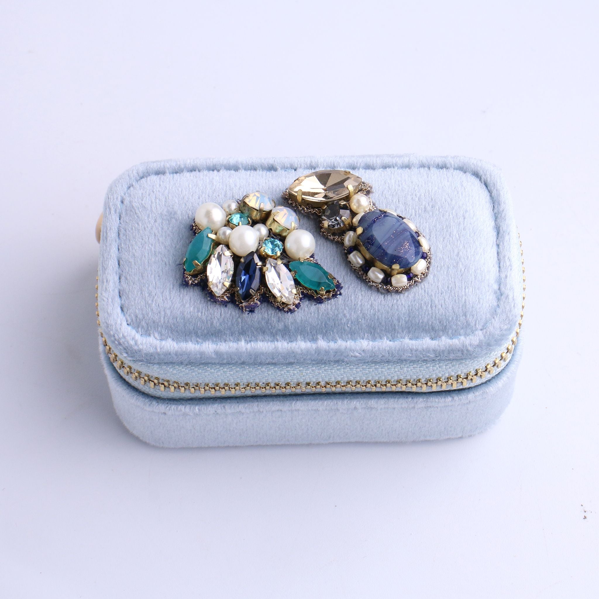 MAYGLOBEでしか手に入らない刺繍モチーフをあしらった特別仕様のジュエリーボックス。ご自宅使用はもちろん、お出かけ用に持ち歩く時にも大活躍。ファスナー式でしっかりと口が開くので、取り出しやすいのも嬉しいポイント。ボックスは高級感のあるベルベットを採用。お気に入りのジュエリーを大切に保管できます。