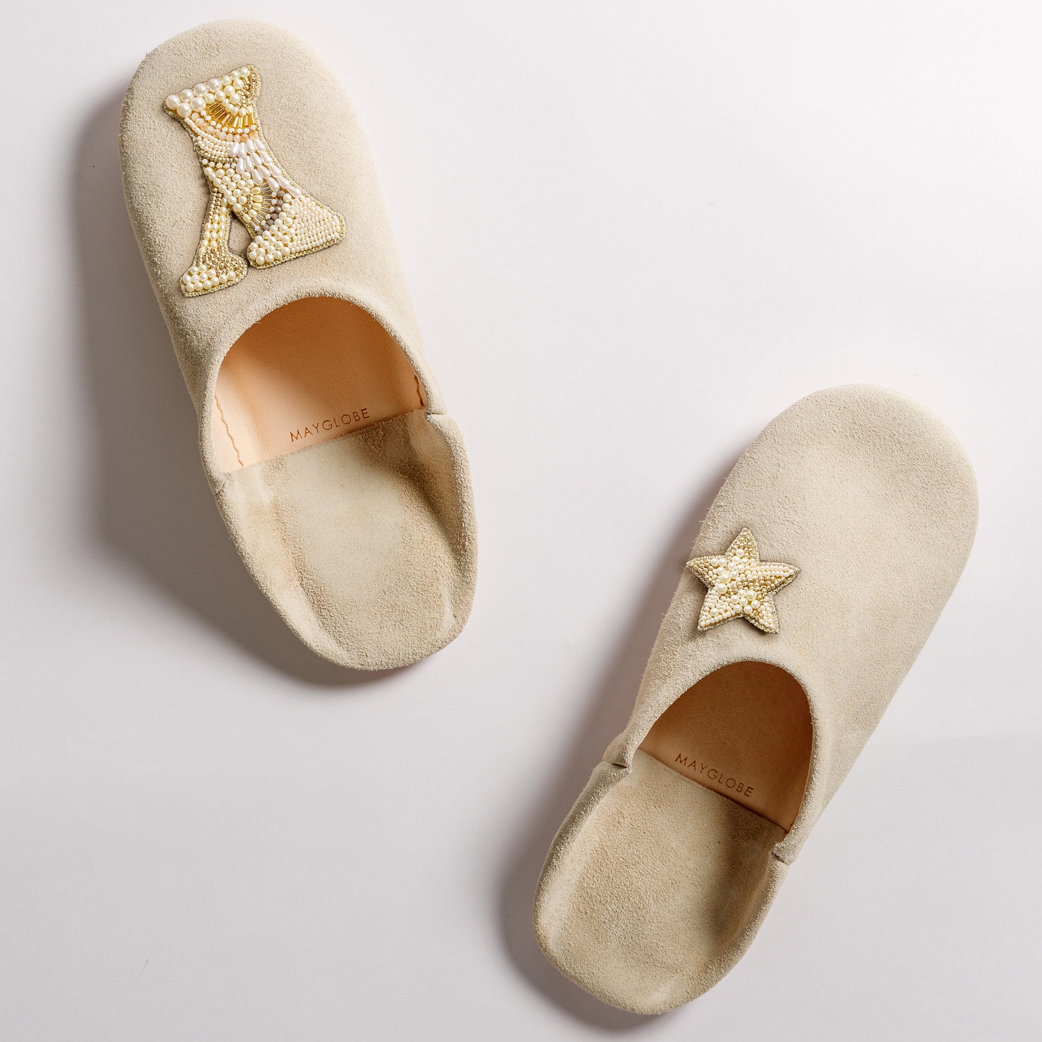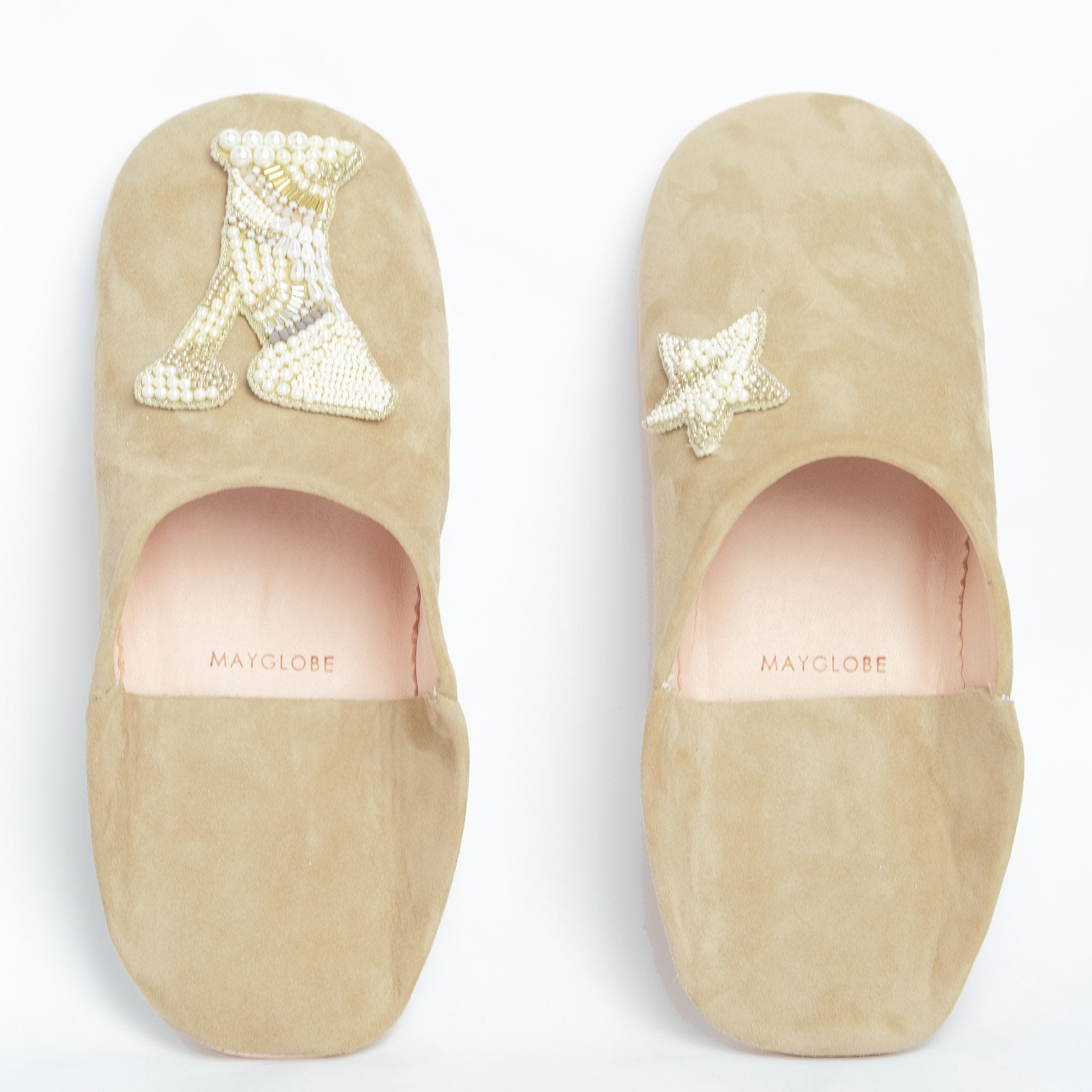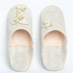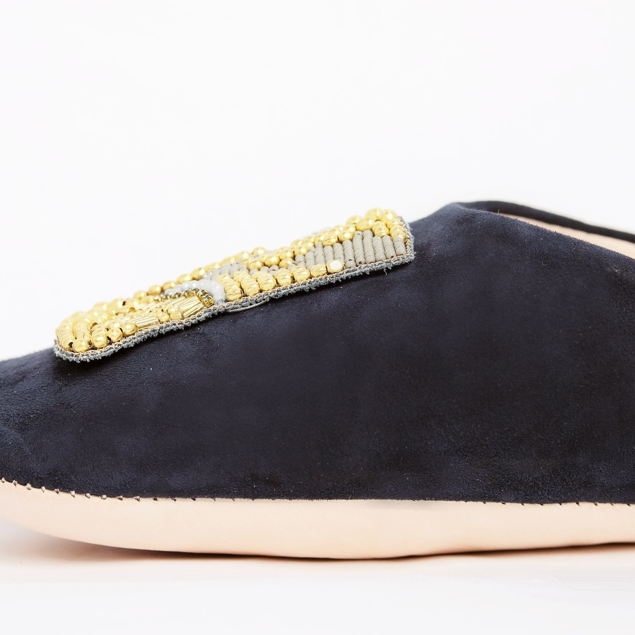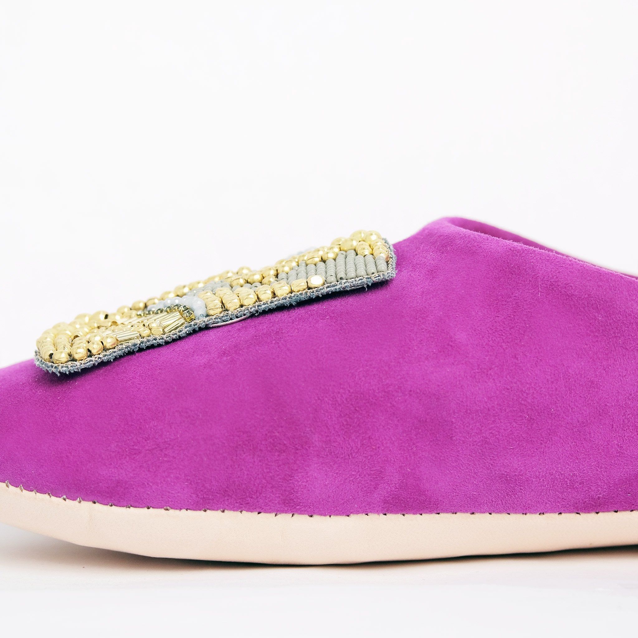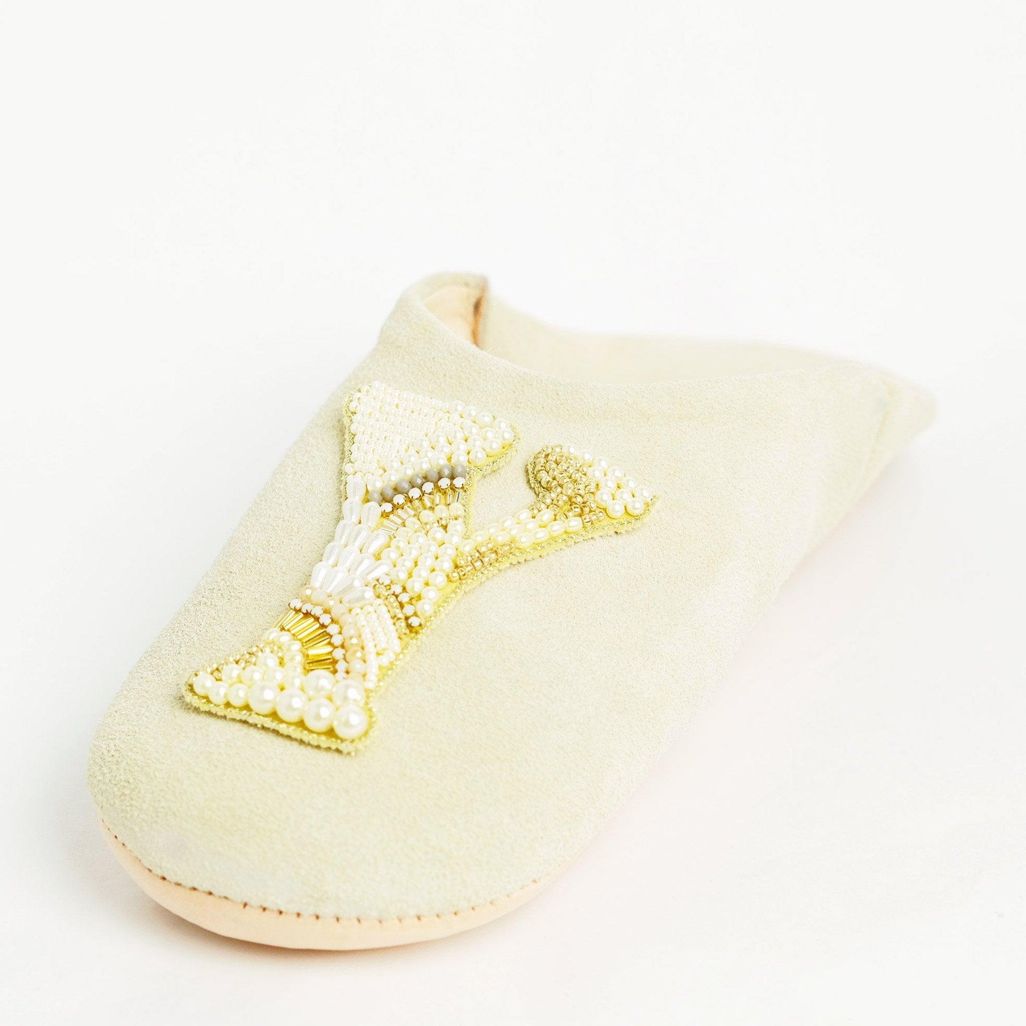 職人の手仕事が生み出す、繊細で美しい刺繍がこのバブーシュの最大の魅力。一針一針丁寧に施されたビジュー刺繍は、光の加減でさりげなく輝き、足元に上品なアクセントをプラスします。