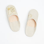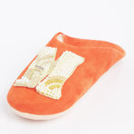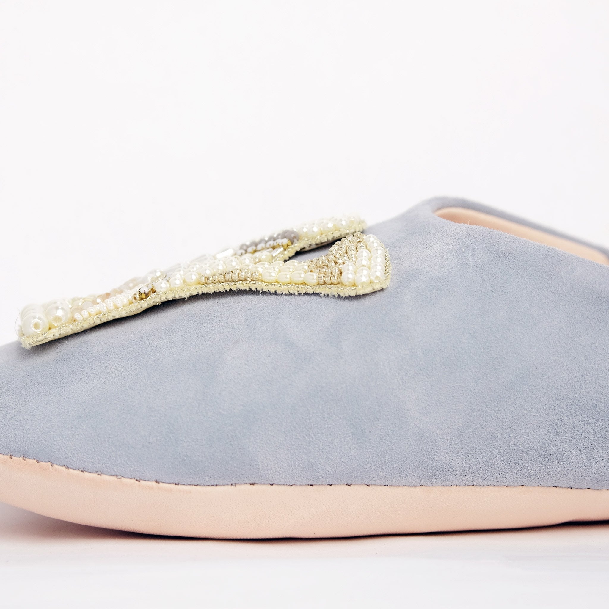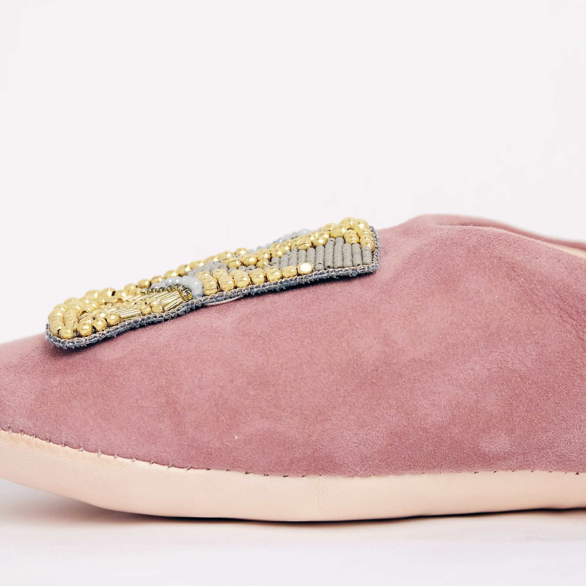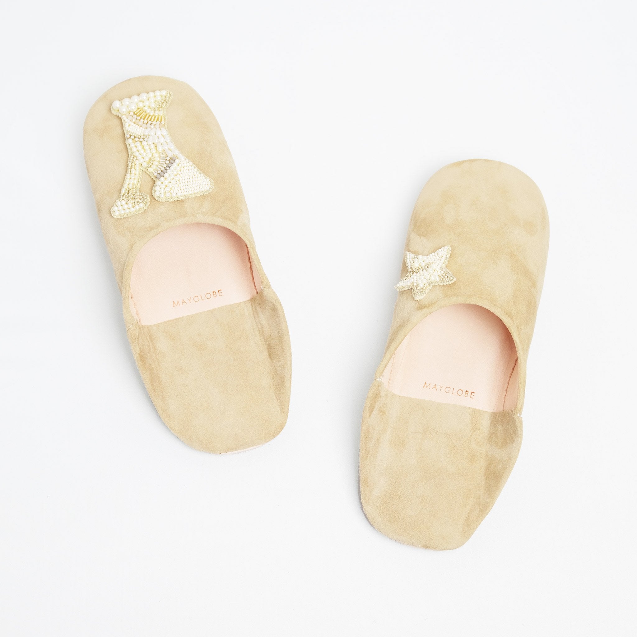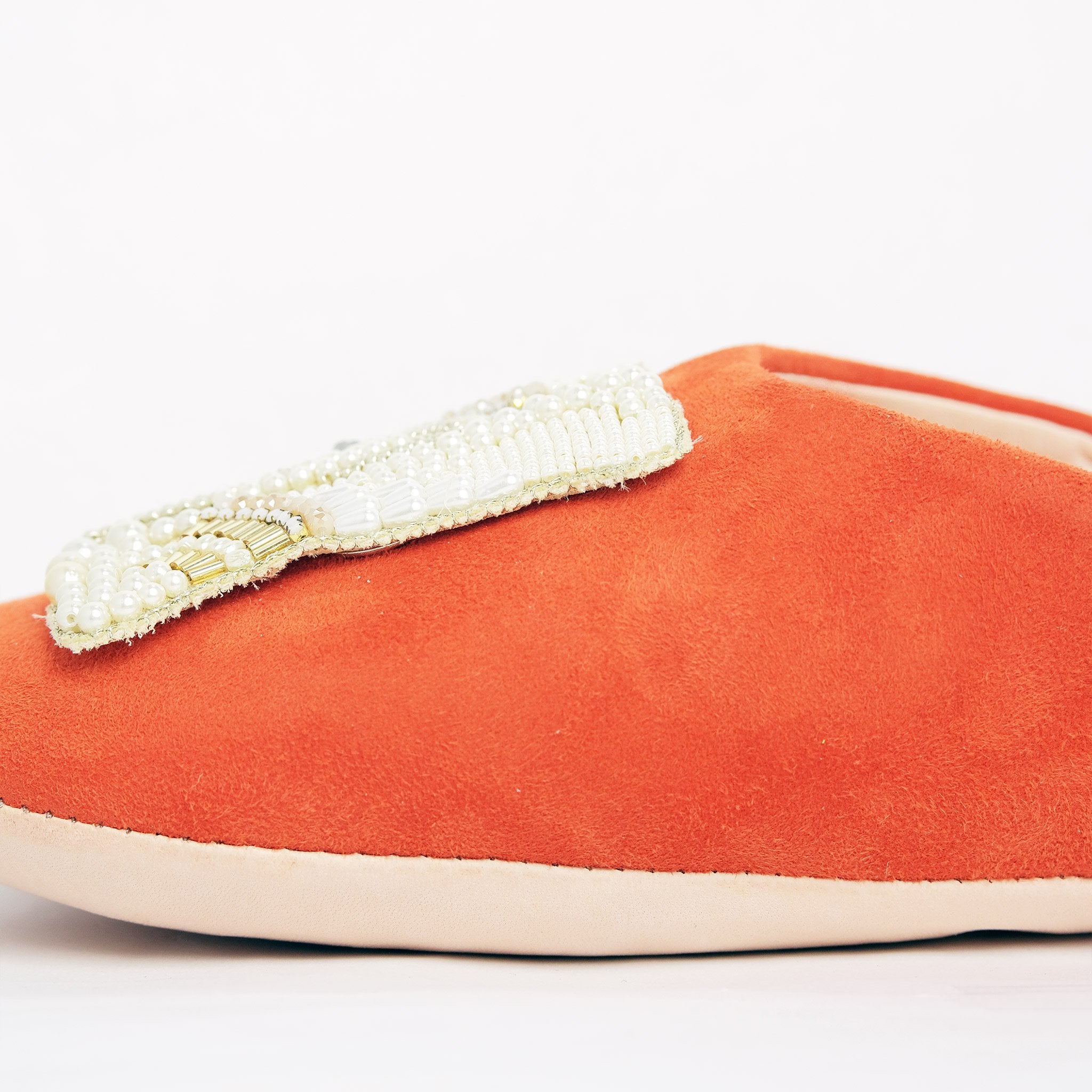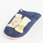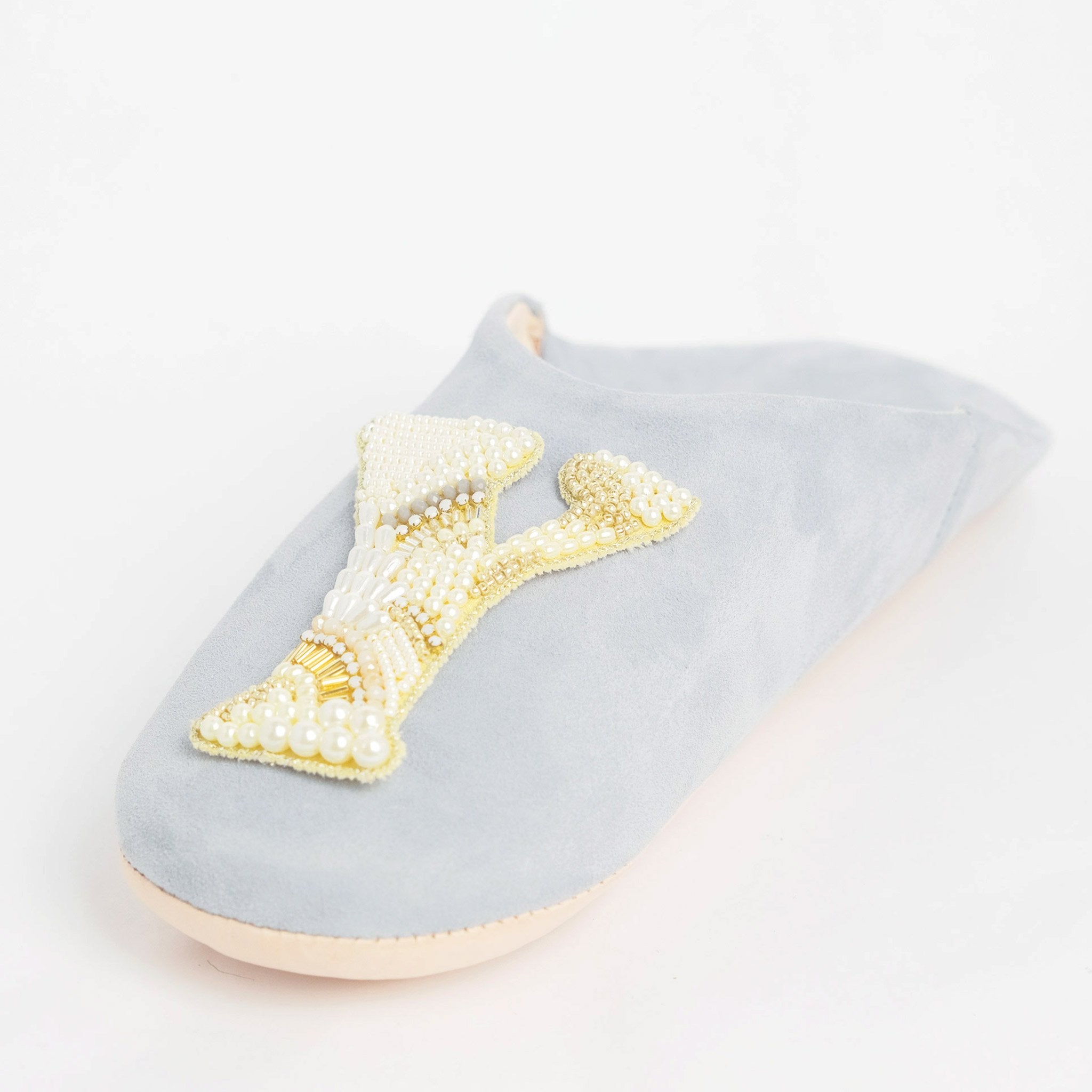 職人の手仕事が生み出す、繊細で美しい刺繍がこのバブーシュの最大の魅力。一針一針丁寧に施されたビジュー刺繍は、光の加減でさりげなく輝き、足元に上品なアクセントをプラスします。