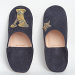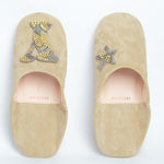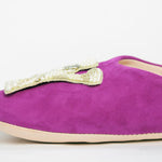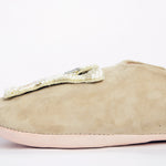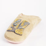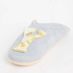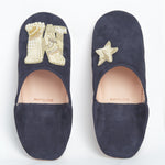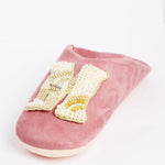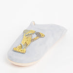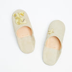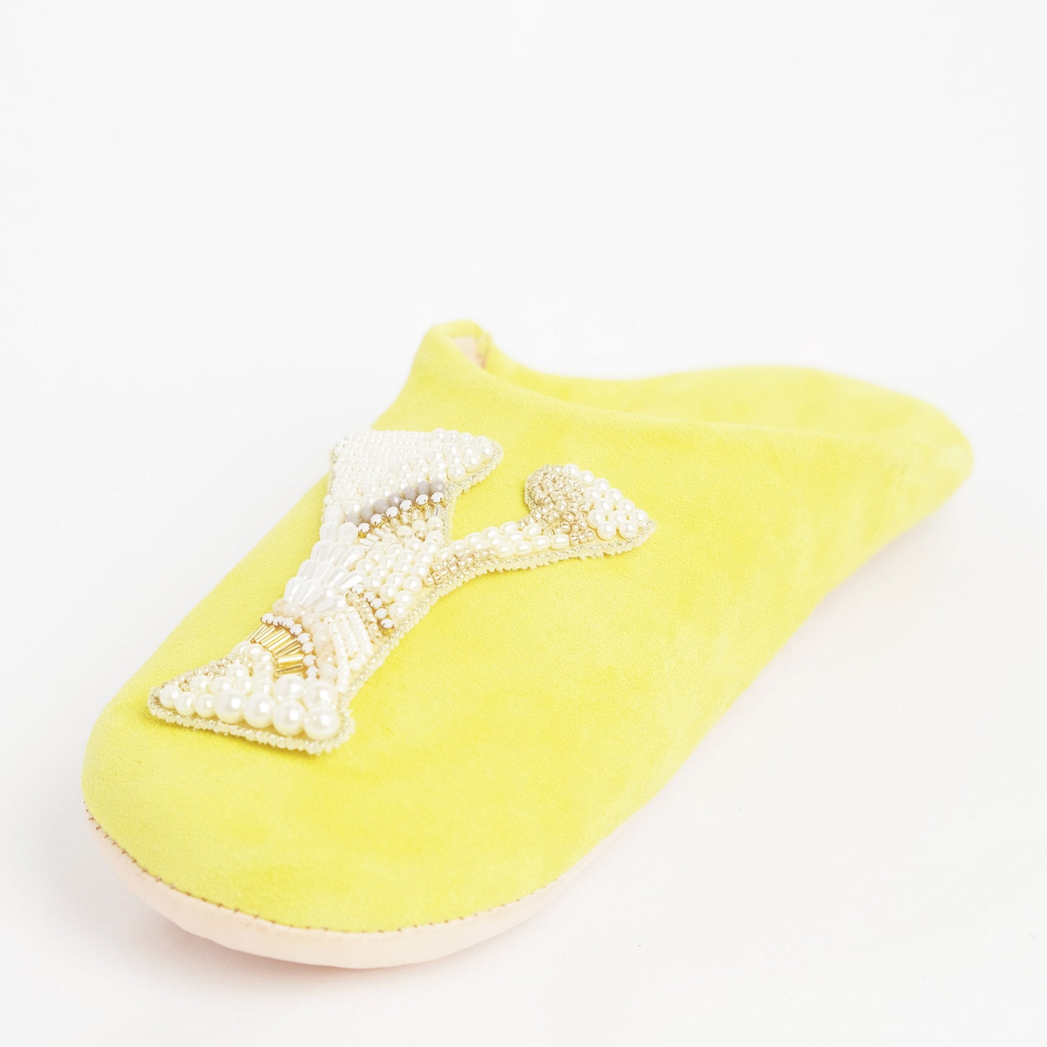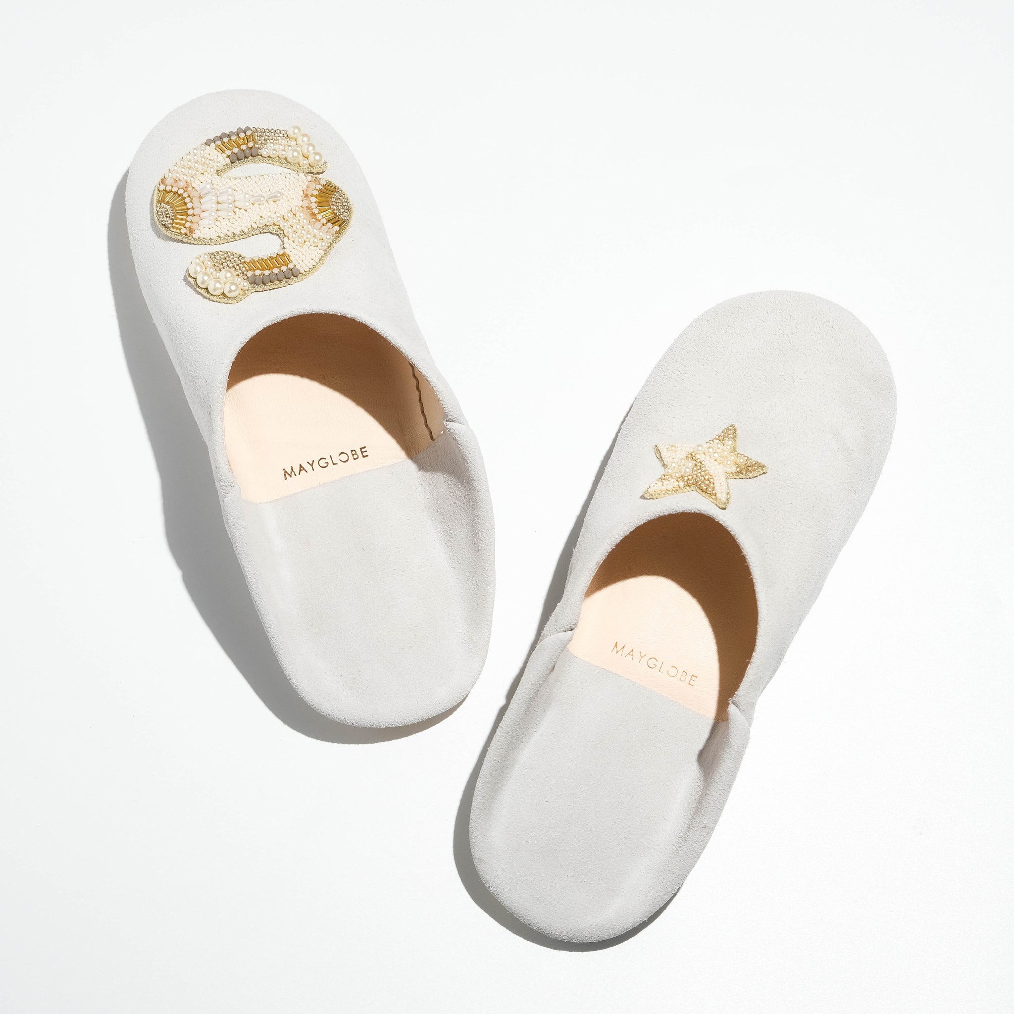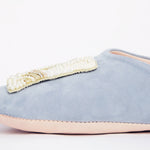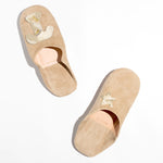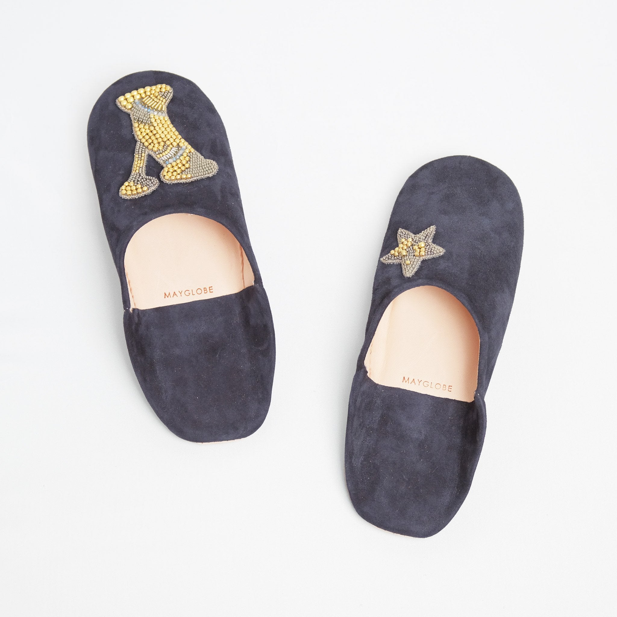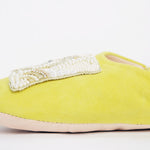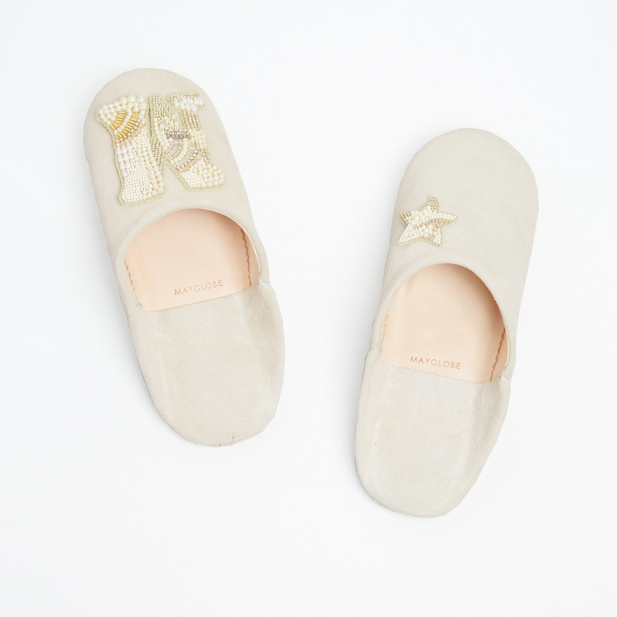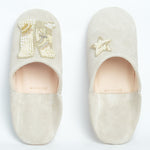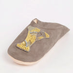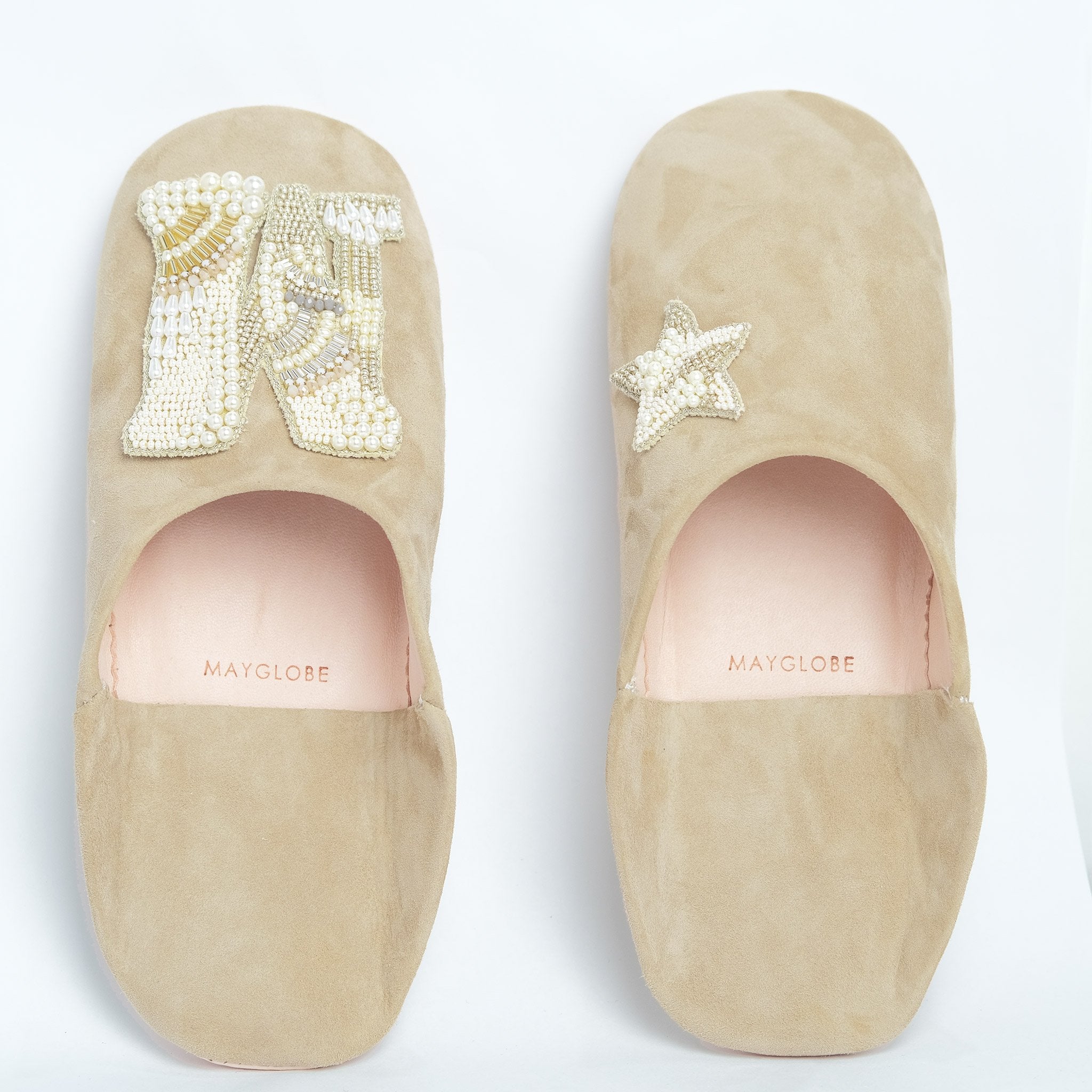 職人の手仕事が生み出す、繊細で美しい刺繍がこのバブーシュの最大の魅力。一針一針丁寧に施されたビジュー刺繍は、光の加減でさりげなく輝き、足元に上品なアクセントをプラスします。
