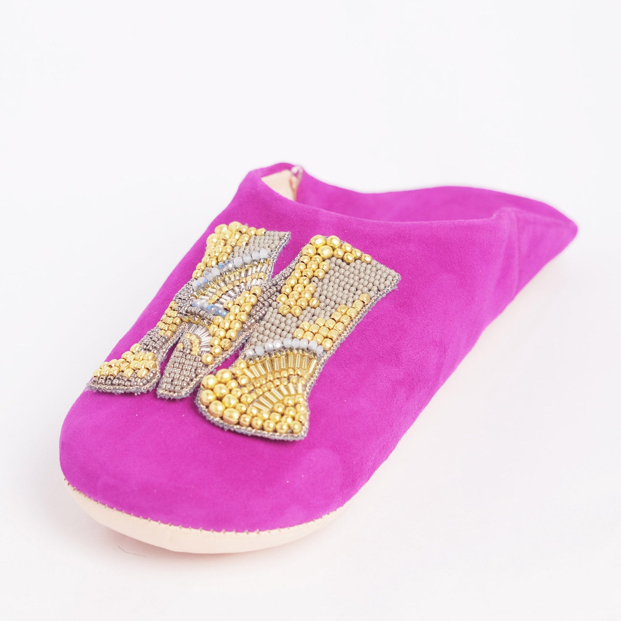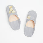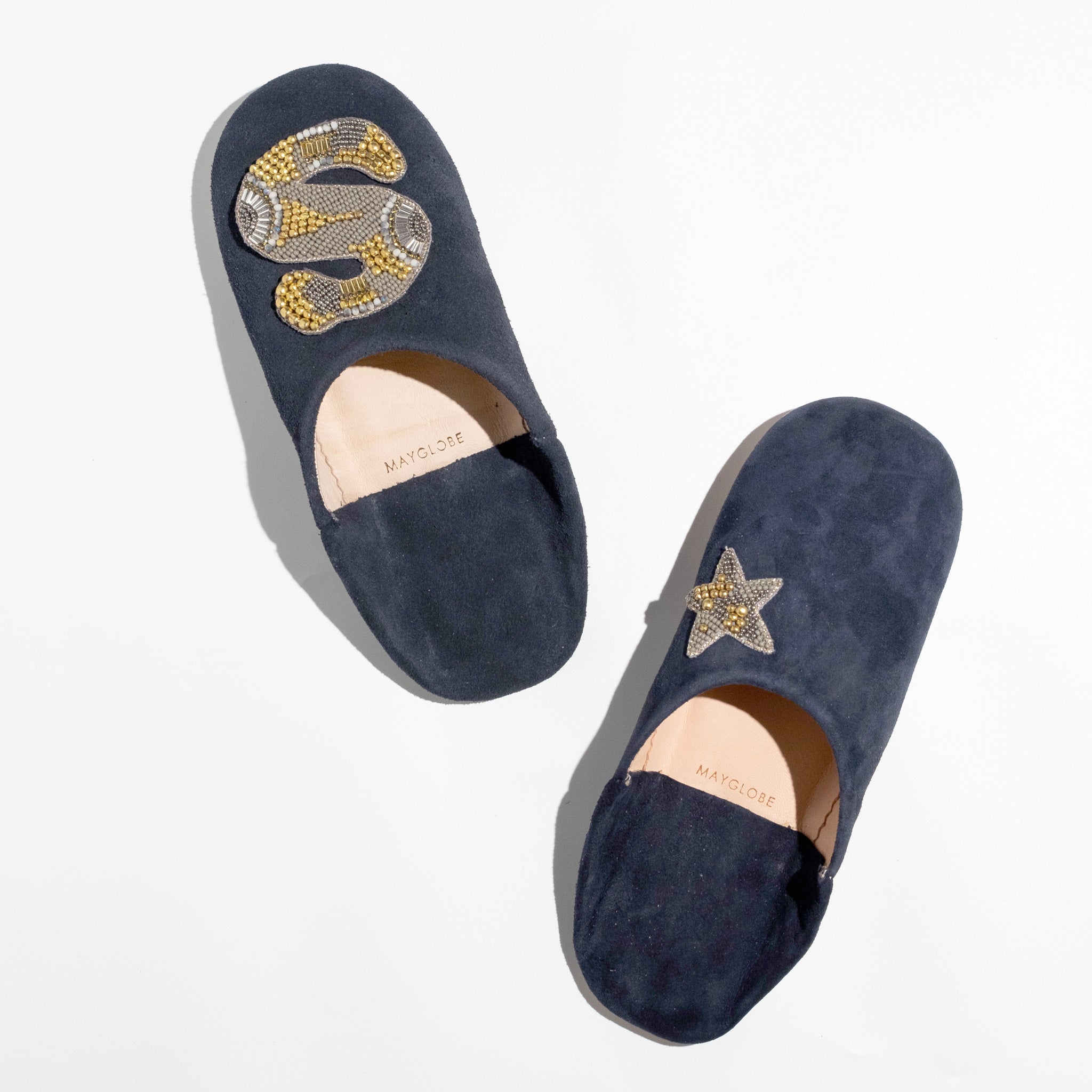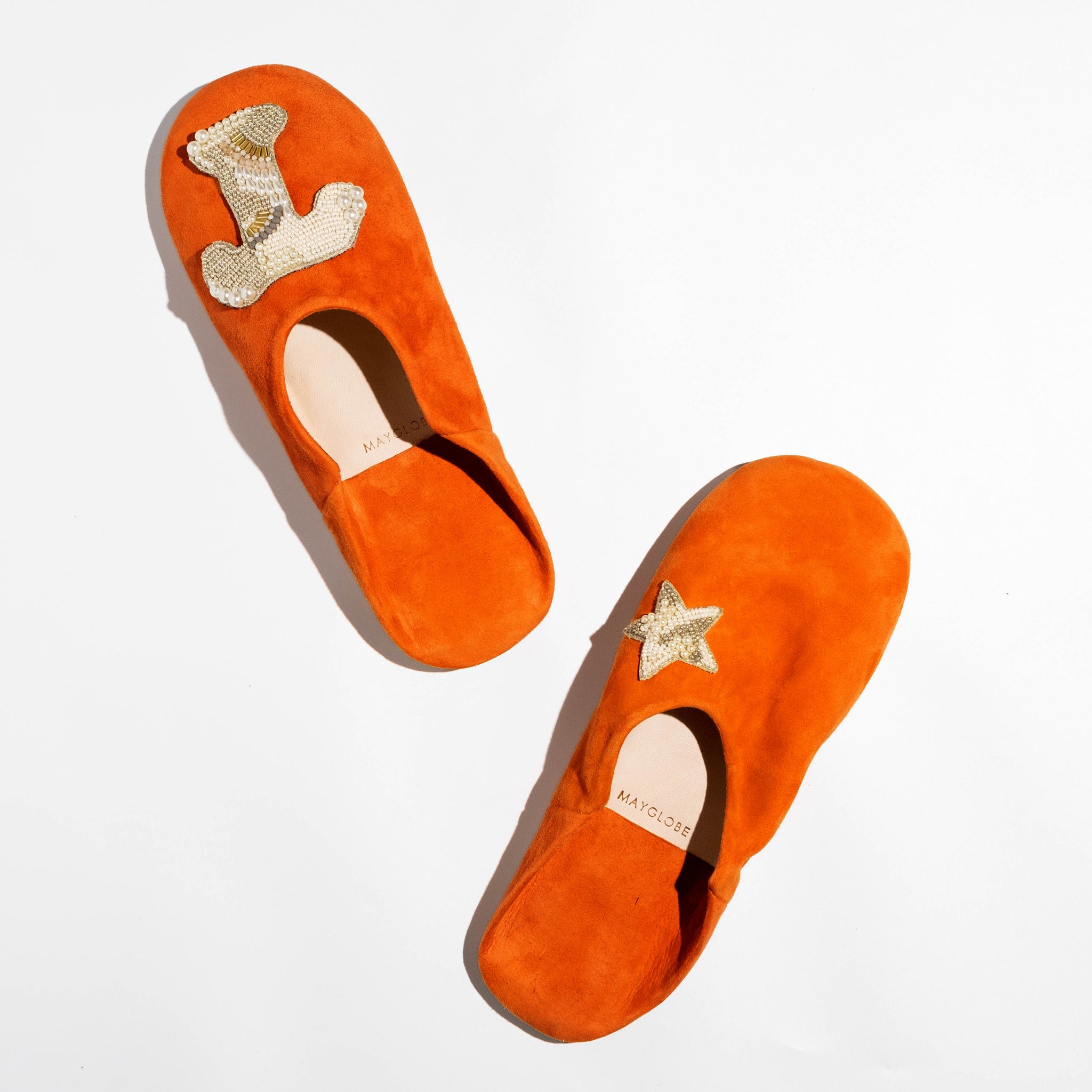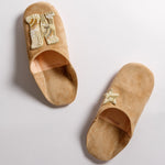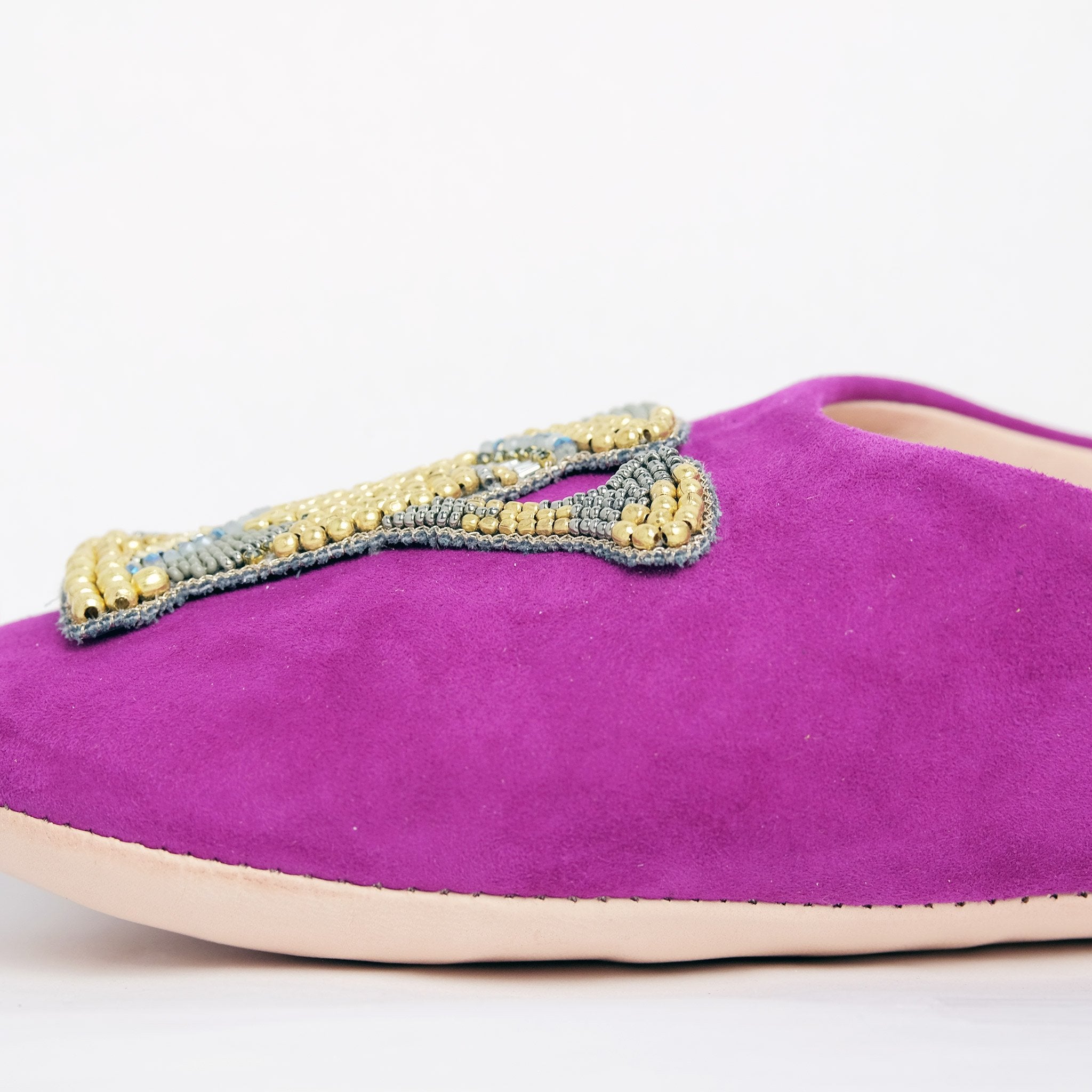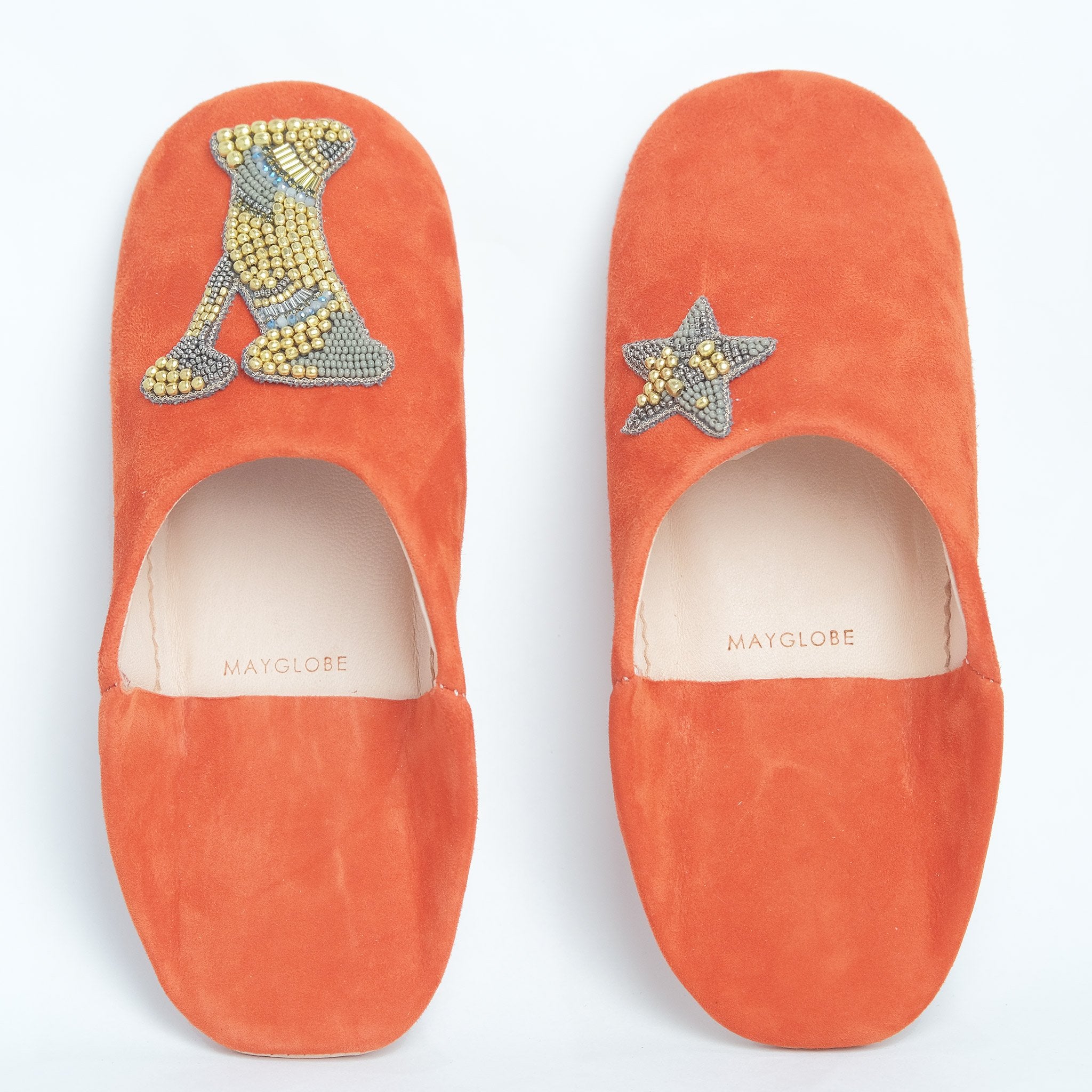モロッコの伝統的なスリッパのことで、かかとを踏んで履くスタイルが特徴のルームシューズです。羊革や牛革などの天然素材を使用し、足に馴染む柔らかさと履き心地の良さが魅力です。