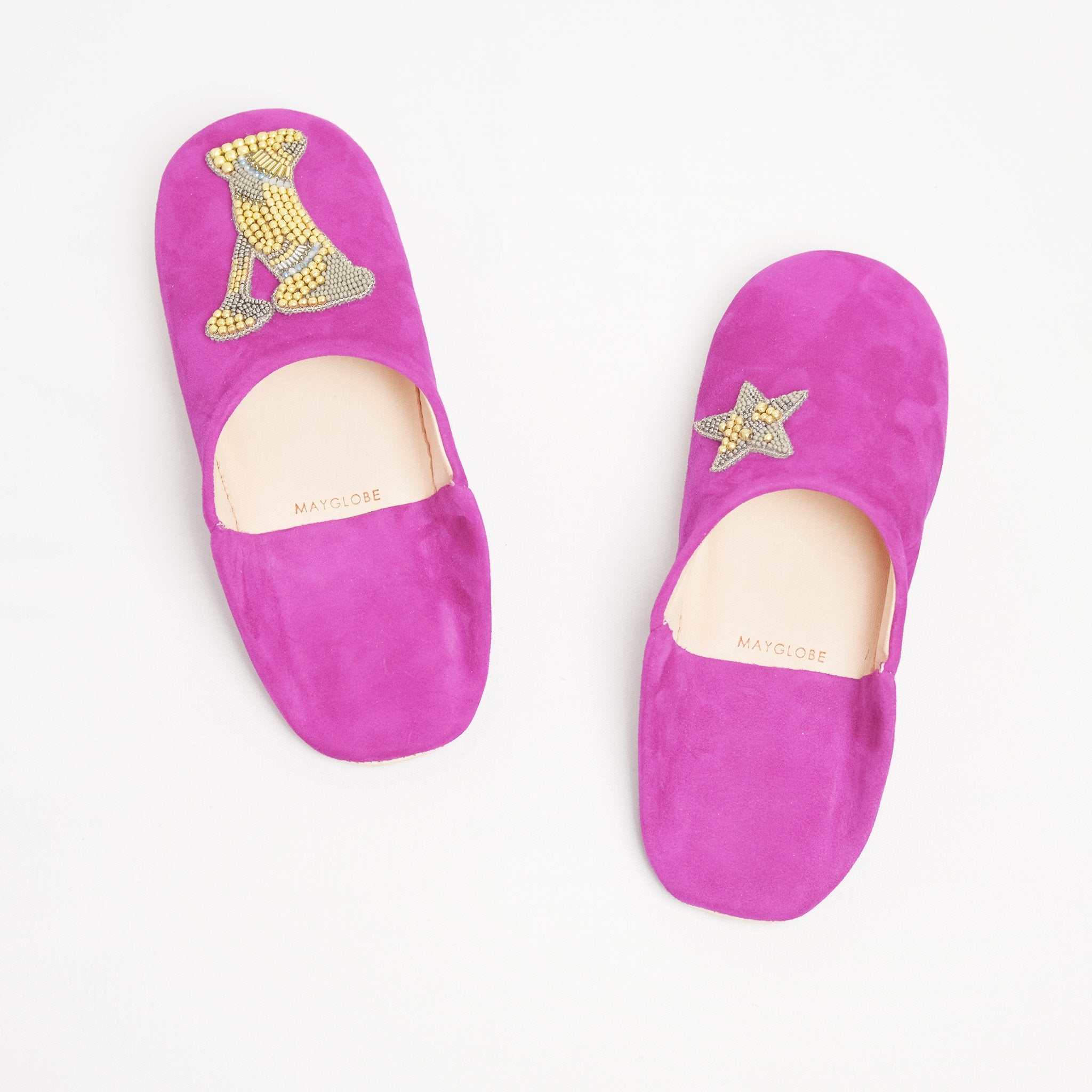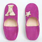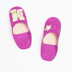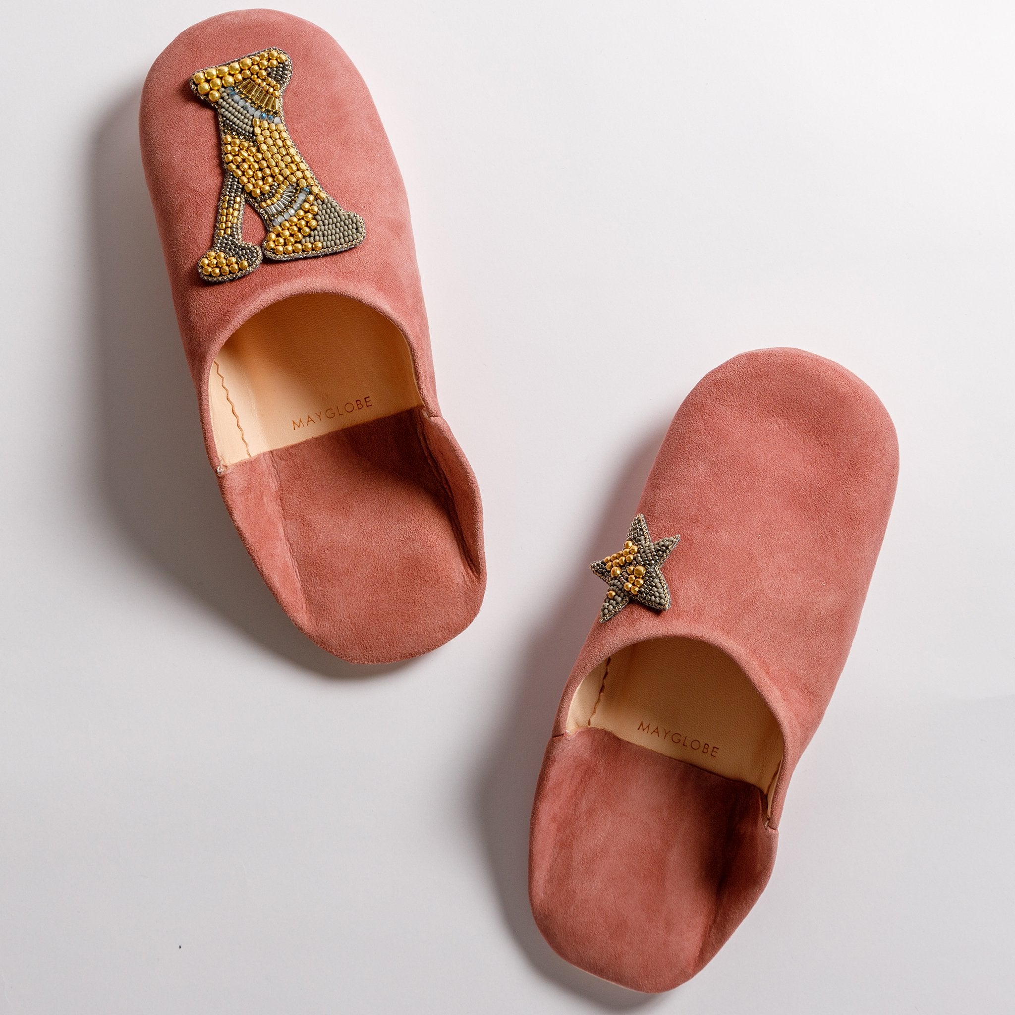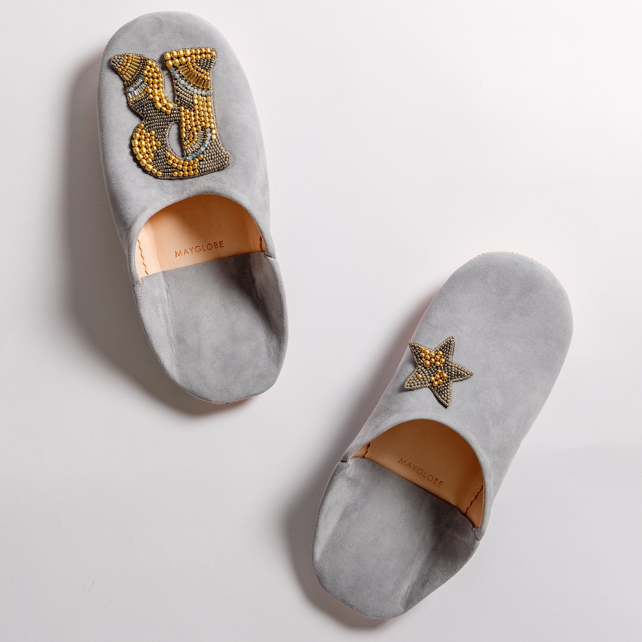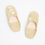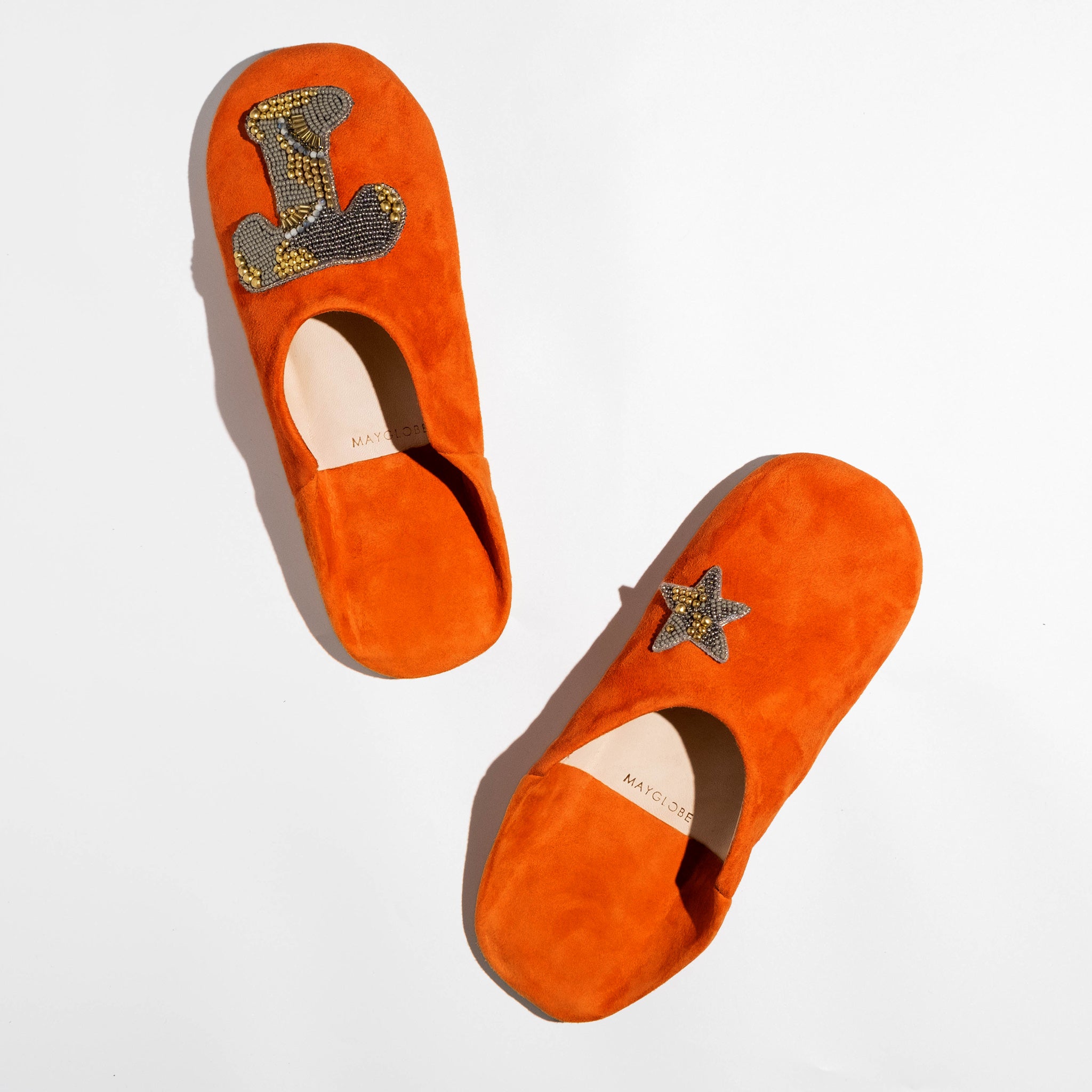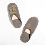 モロッコの伝統的なスリッパのことで、かかとを踏んで履くスタイルが特徴のルームシューズです。羊革や牛革などの天然素材を使用し、足に馴染む柔らかさと履き心地の良さが魅力です。