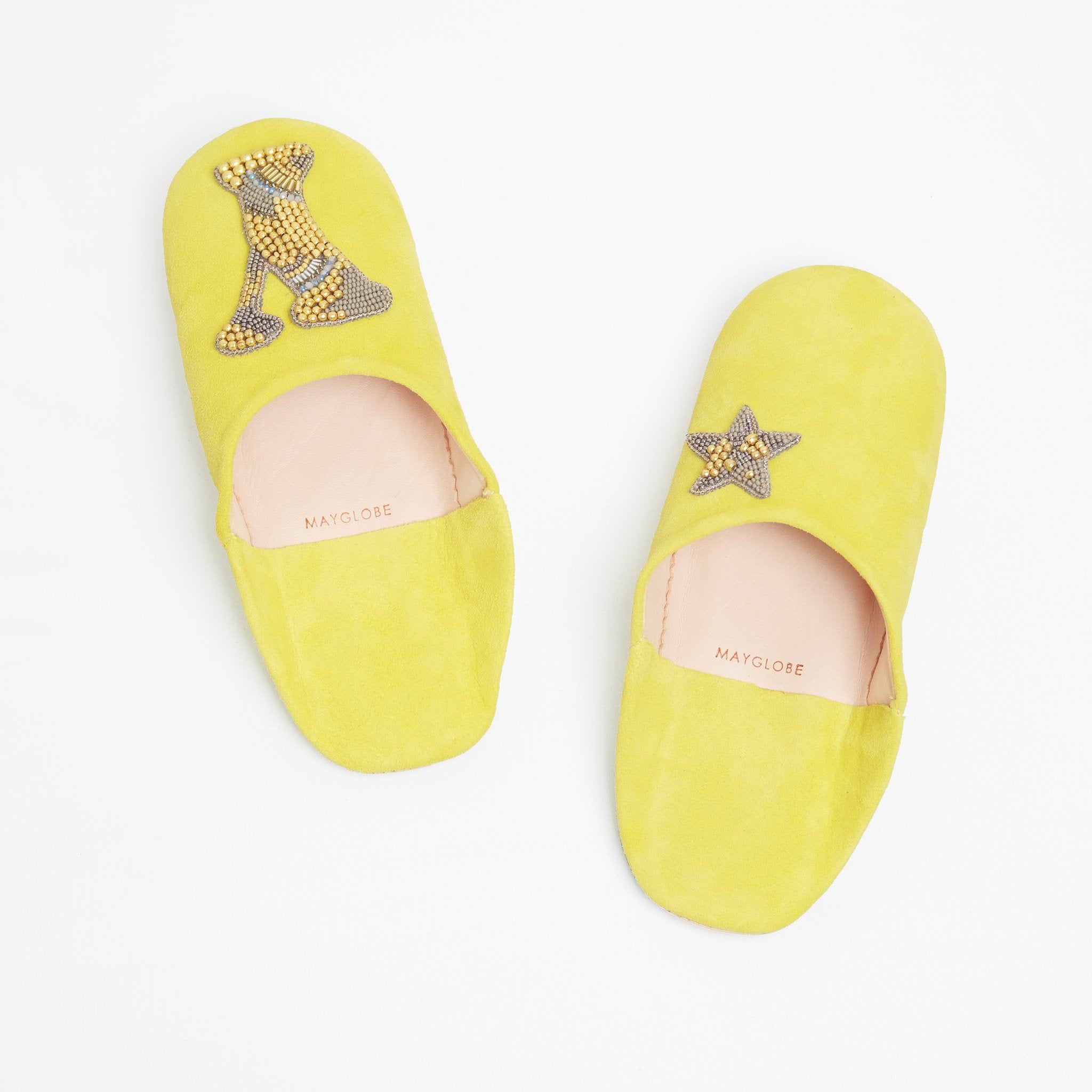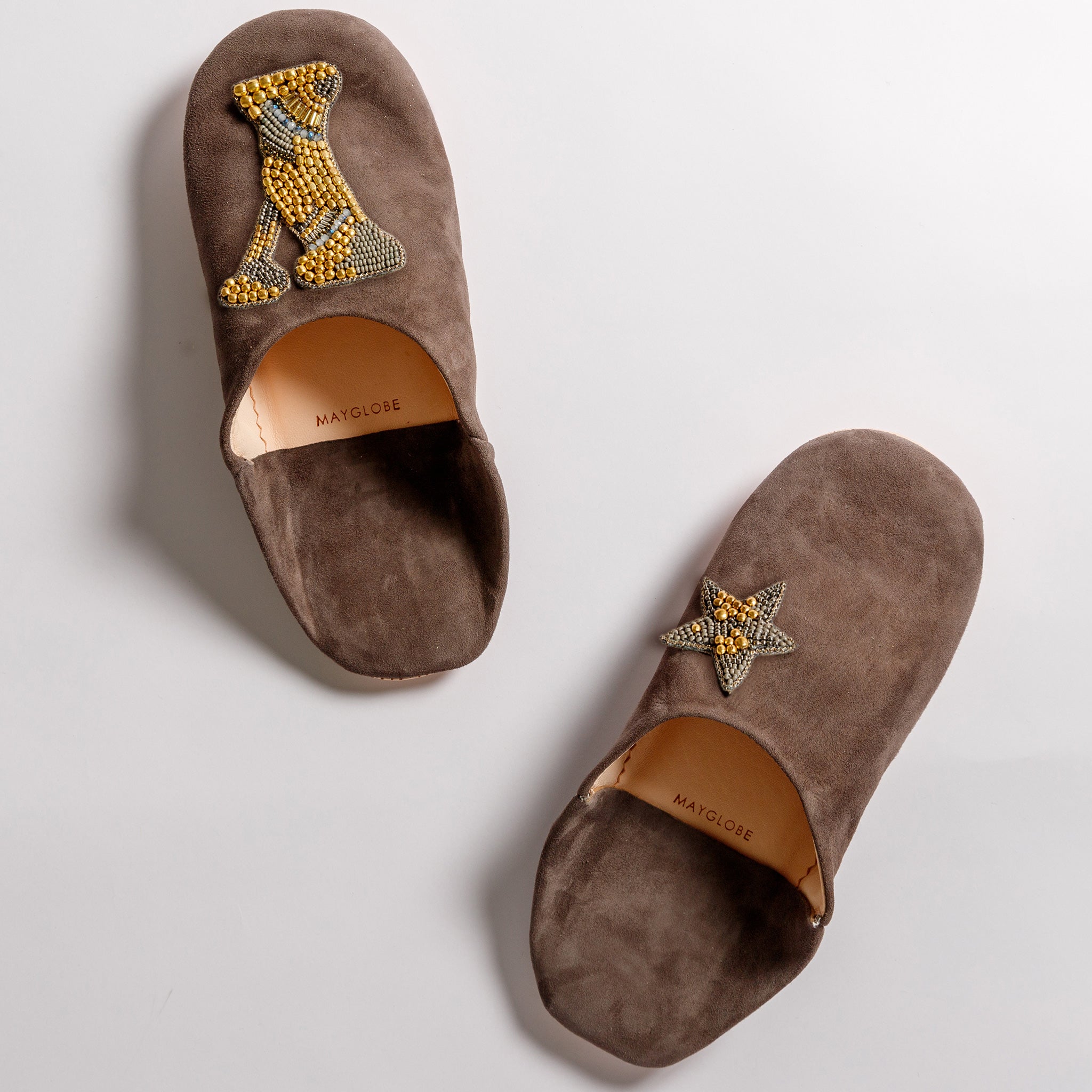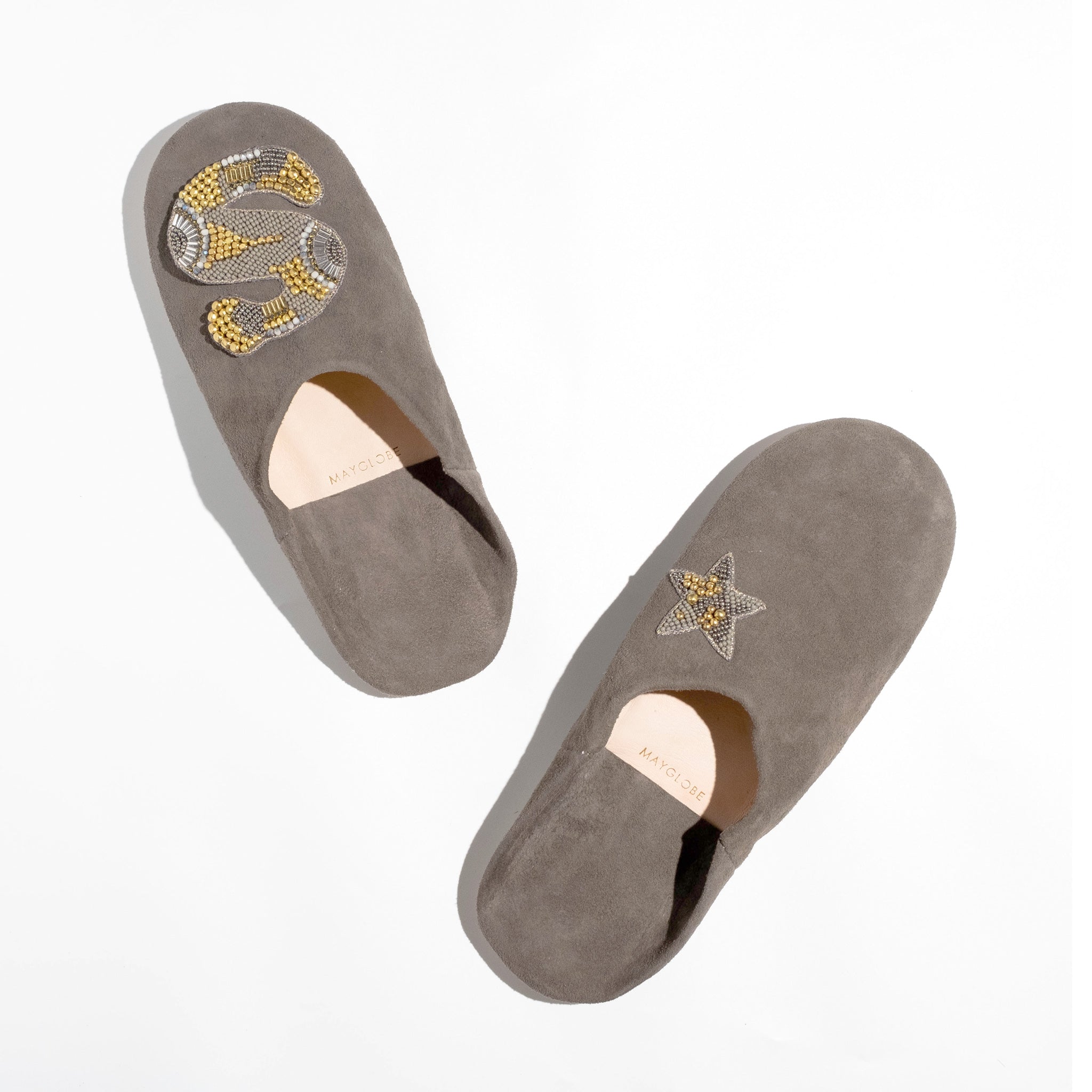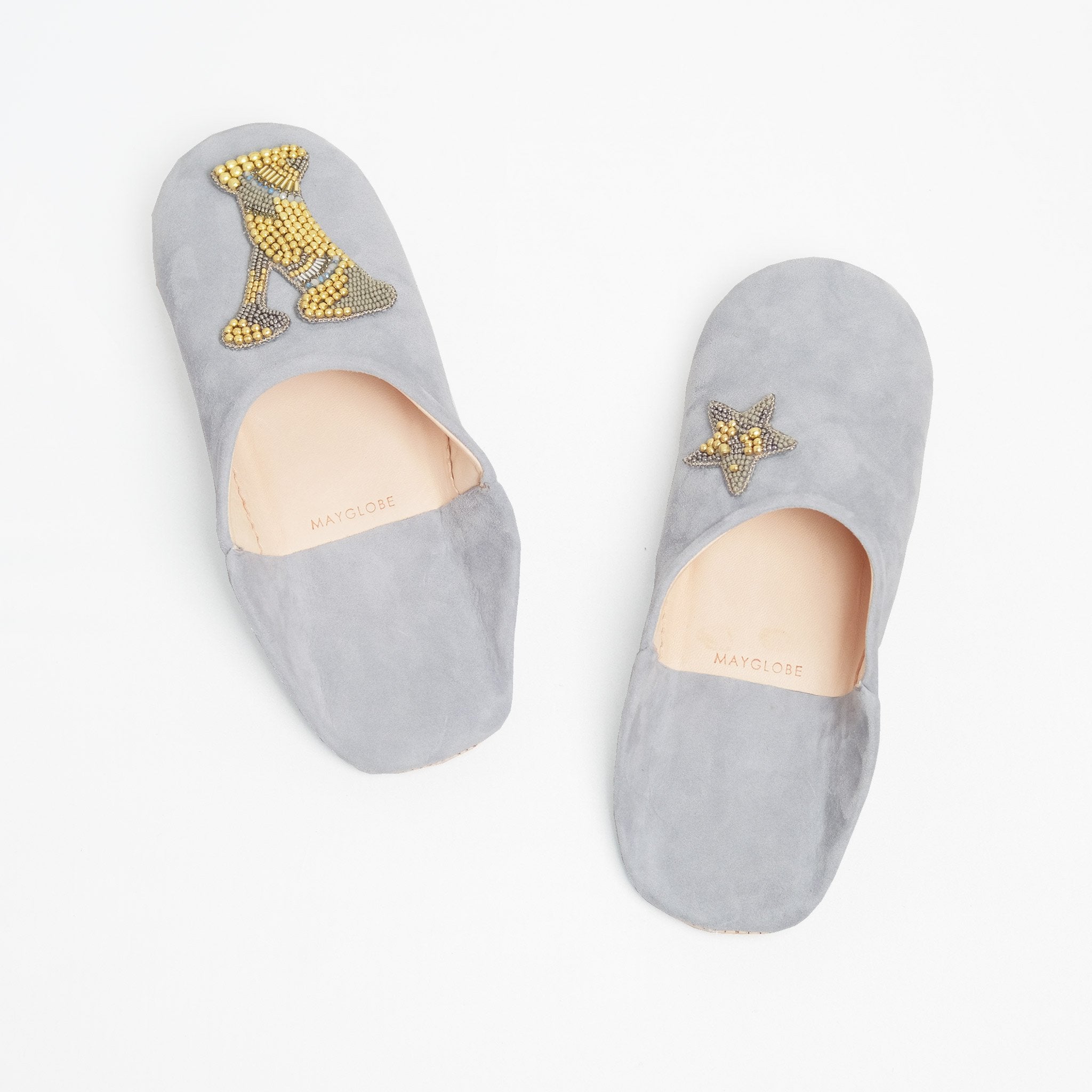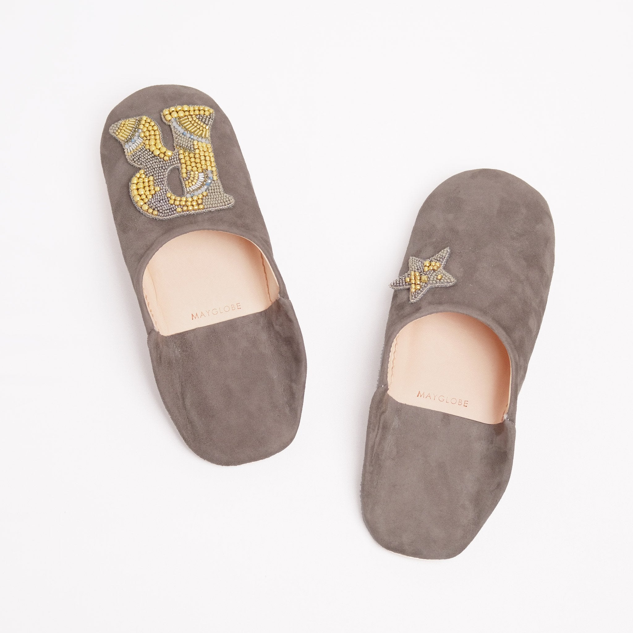 モロッコの伝統的なスリッパのことで、かかとを踏んで履くスタイルが特徴のルームシューズです。羊革や牛革などの天然素材を使用し、足に馴染む柔らかさと履き心地の良さが魅力です。