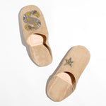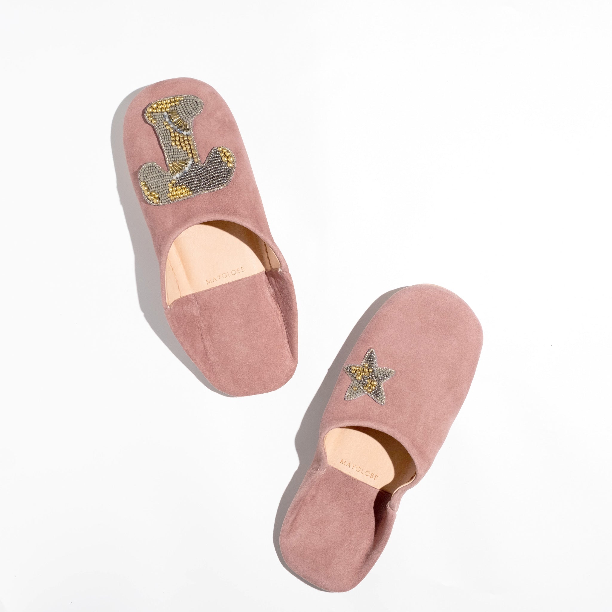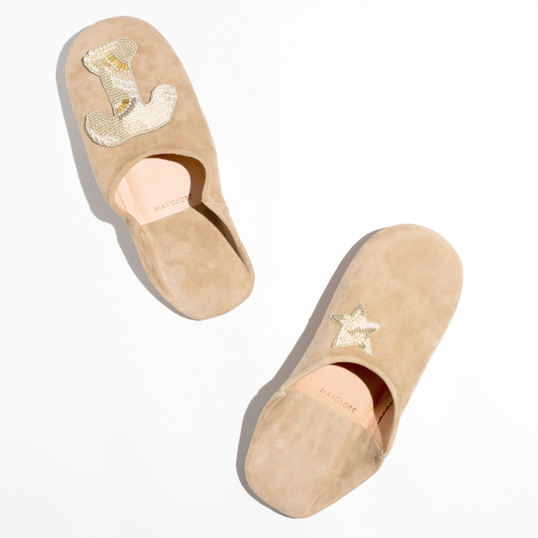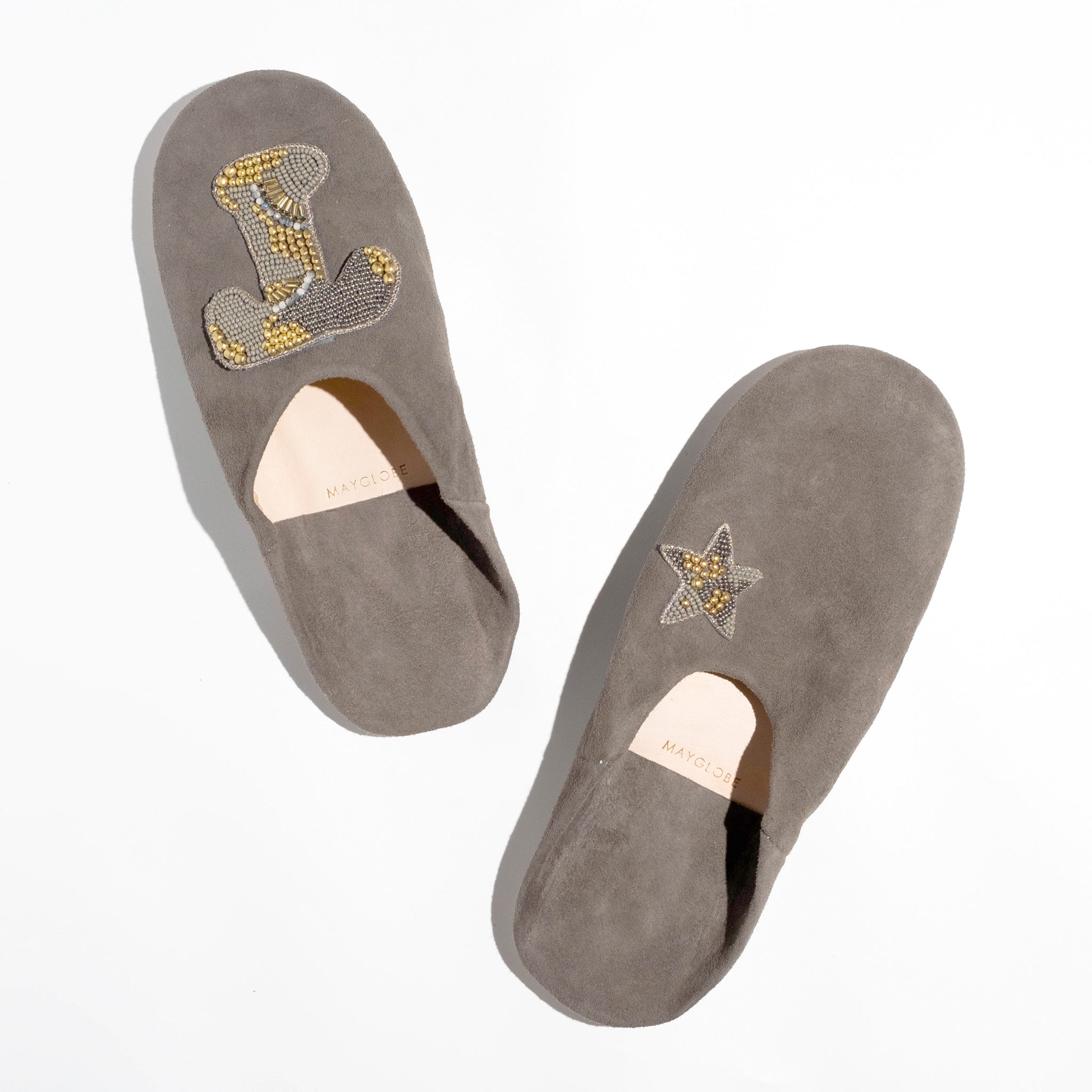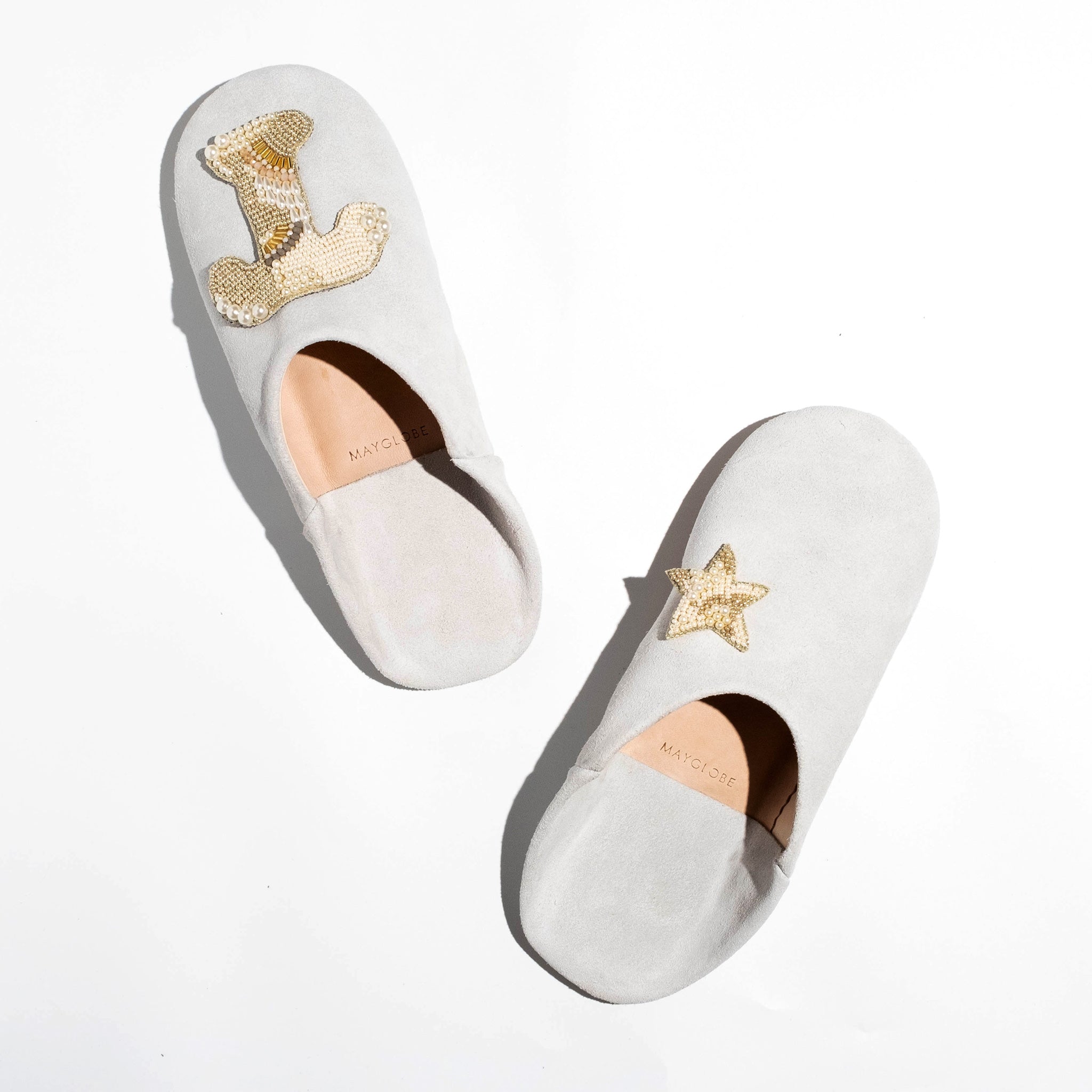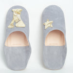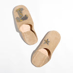 モロッコの伝統的なスリッパのことで、かかとを踏んで履くスタイルが特徴のルームシューズです。羊革や牛革などの天然素材を使用し、足に馴染む柔らかさと履き心地の良さが魅力です。