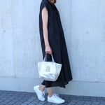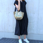 まちが広く大容量でいろんなシーンで使用しやすいサイズです。休日のお出かけシーンでも大活躍です。また、内ポケット付きで携帯やICカード入れに◎。ボディに使用している生地はコットン100%で柔らかな風合いが特徴。
