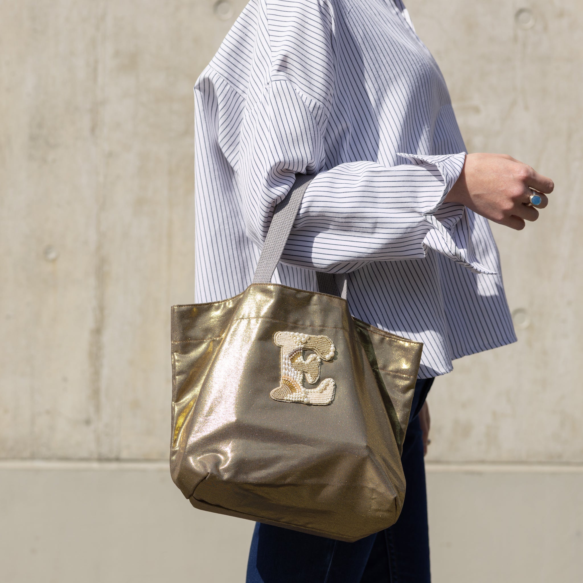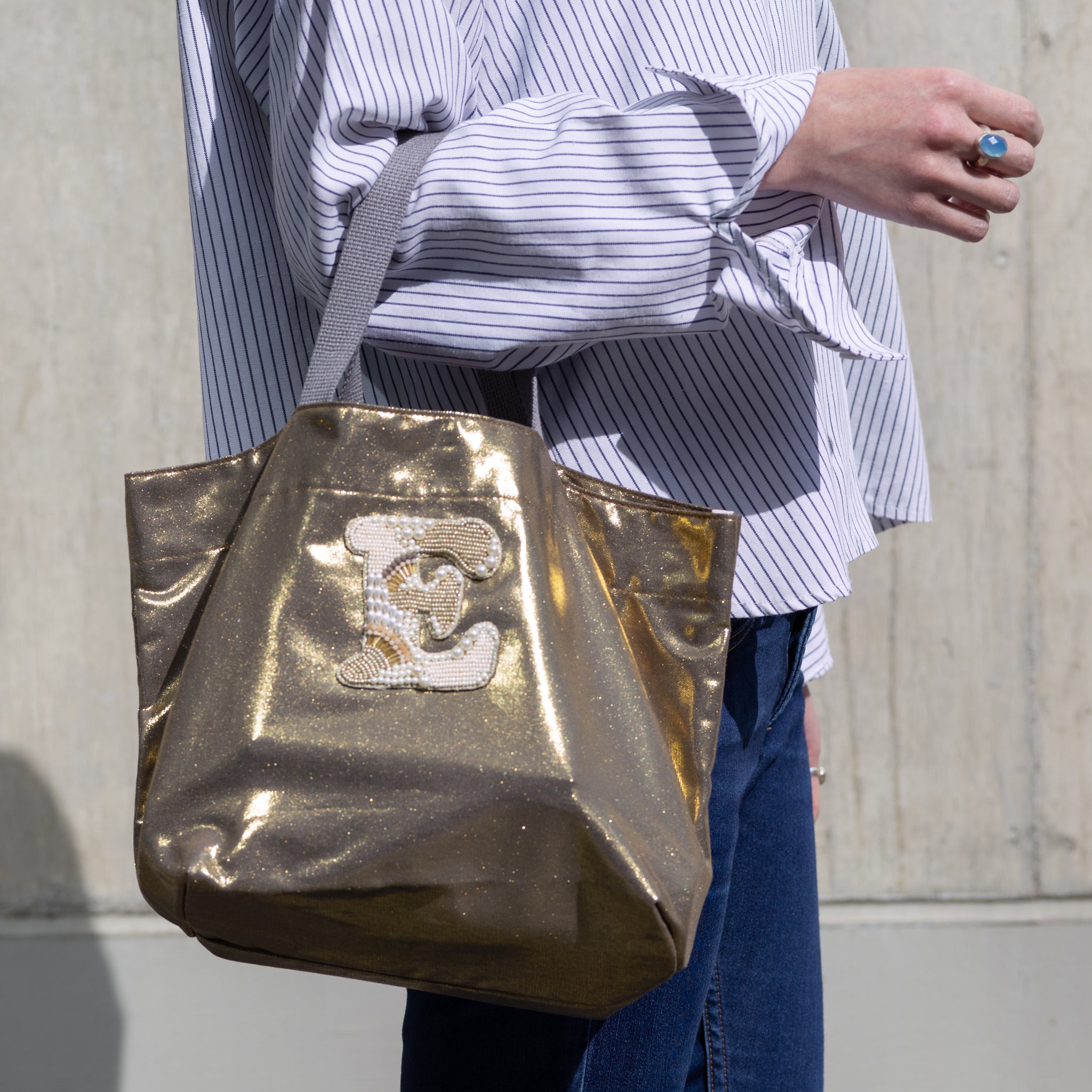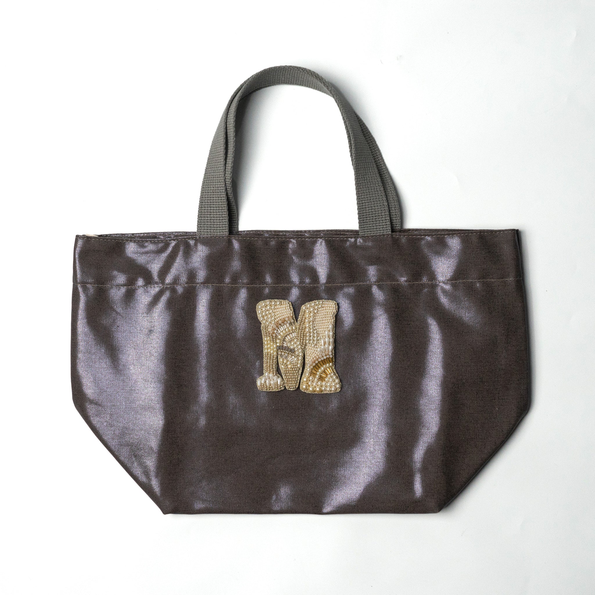 バッグの中央にはインドで昔から代々伝わる繊細なハンドワークによって作られたアルファベットを。大人の女性の期待を裏切らないデザイン性の高いモチーフ。ご自身のイニシャルはもちろん、大切な方のイニシャルや推しの方のイニシャルなど、身近に感じたいアルファベットをお選びください。