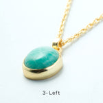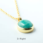 シンプルなフォルムの中に、天然石の個性とゴールドの上品な光沢が際立つデザイン。角度によって異なる表情を見せる天然石の魅力を、ぜひ胸元で感じてみて。
