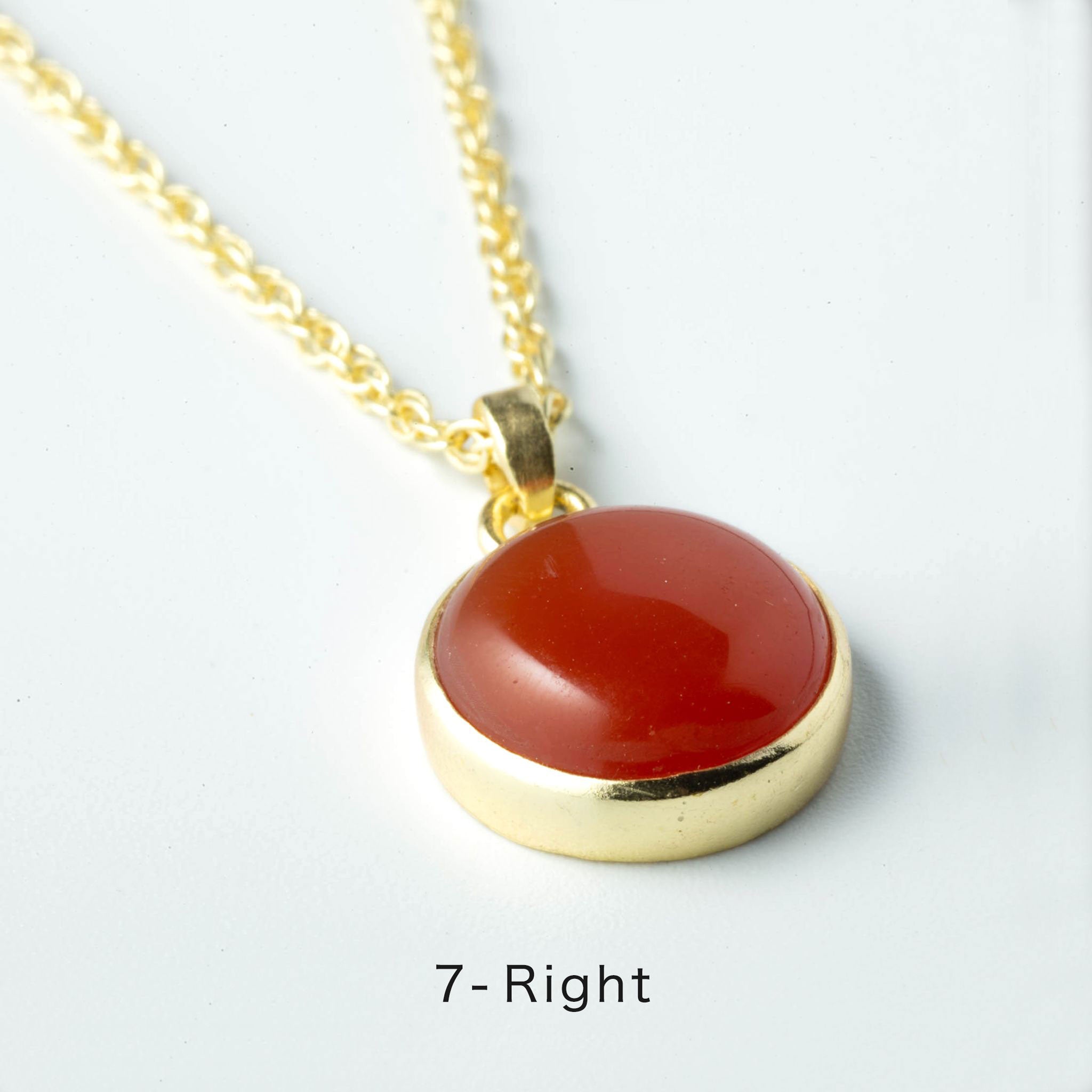シンプルなフォルムの中に、天然石の個性とゴールドの上品な光沢が際立つデザイン。角度によって異なる表情を見せる天然石の魅力を、ぜひ胸元で感じてみて。