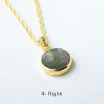 シンプルなフォルムの中に、天然石の個性とゴールドの上品な光沢が際立つデザイン。角度によって異なる表情を見せる天然石の魅力を、ぜひ胸元で感じてみて。