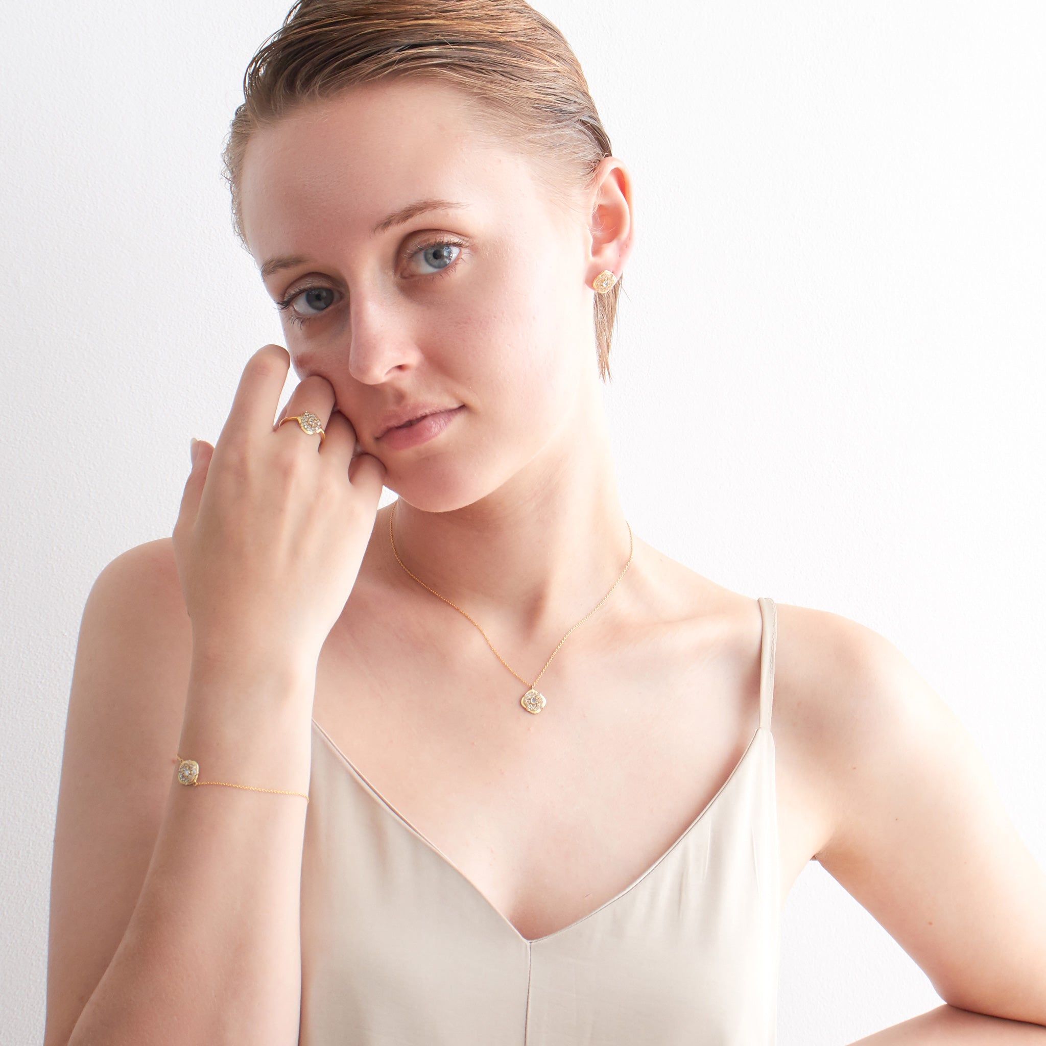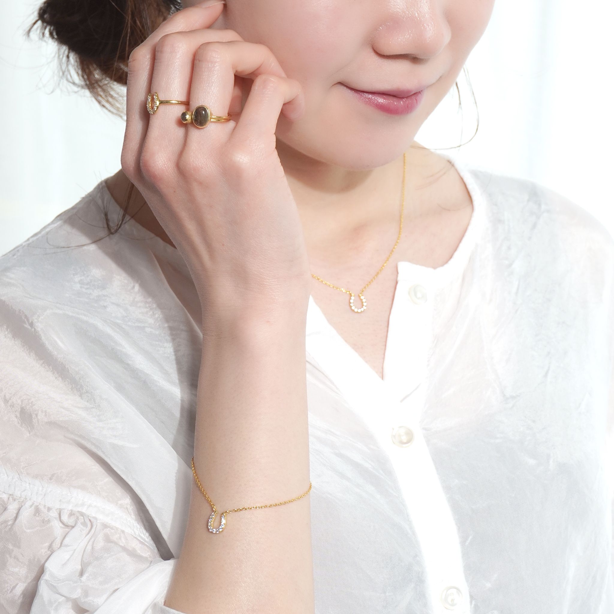 セット使いで統一感ある大人のスタイルに仕上がります。お持ちのリングや他のジュエリーシリーズとの重ね付けを楽しんで。シンプルな装いにも高級感を演出できます。