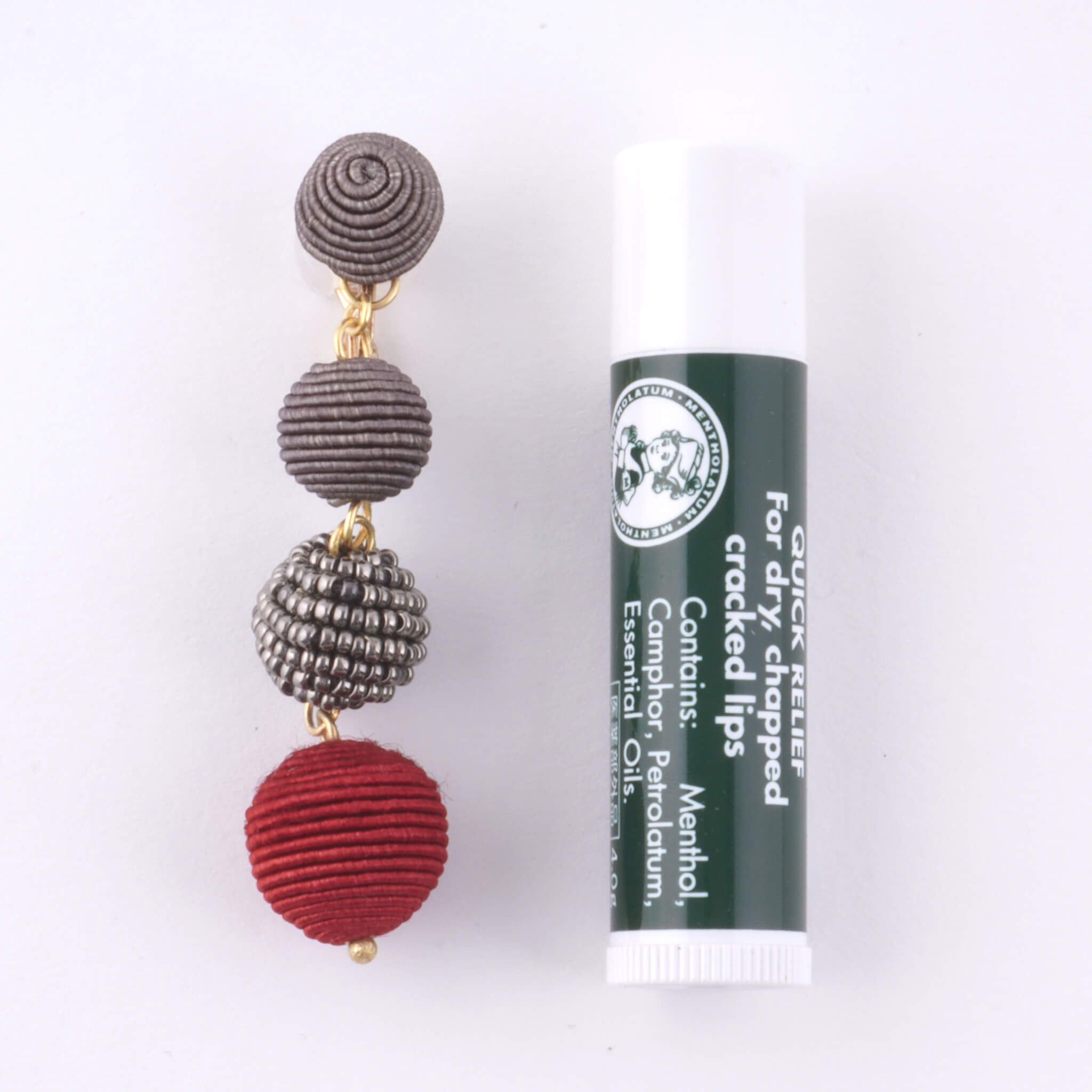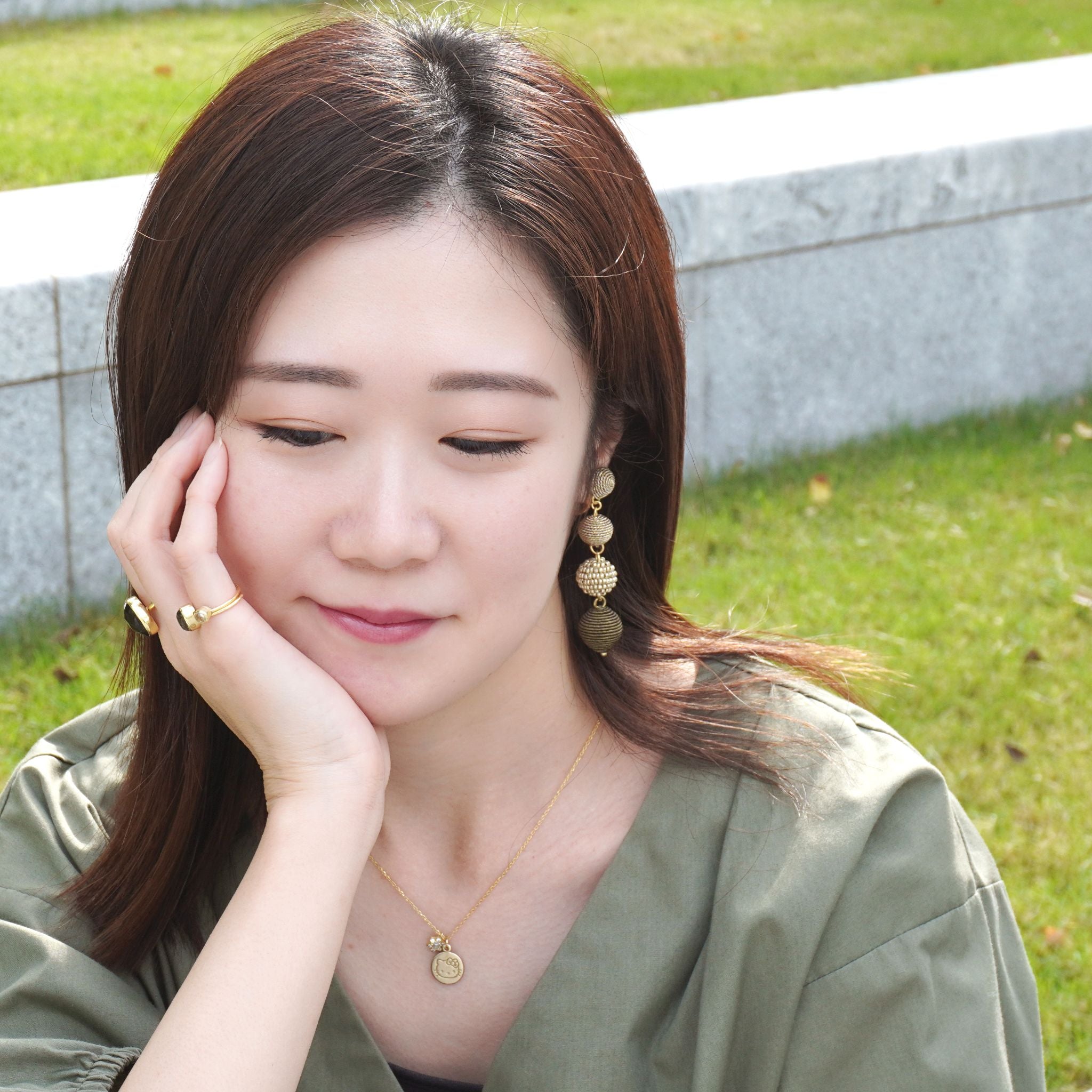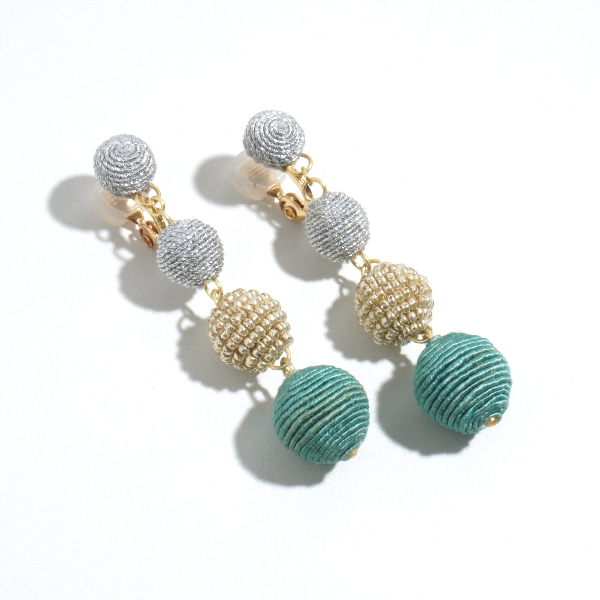 大きめのボンボンモチーフがゆらゆらと揺れ存在感があります。合わせやすい大人っぽいカラーリングなので、デイリーに使いまわせます。パーティーシーンにもおすすめ。