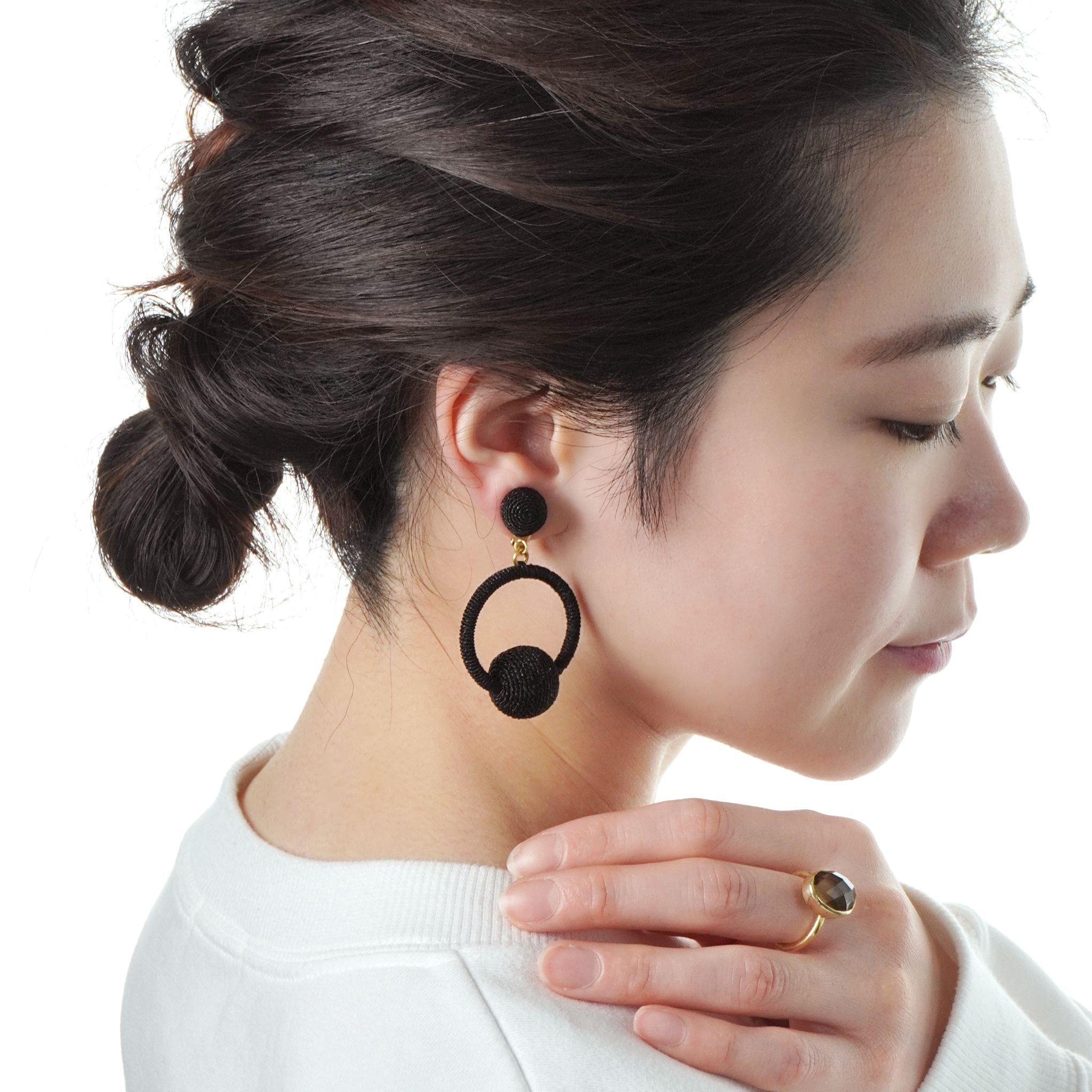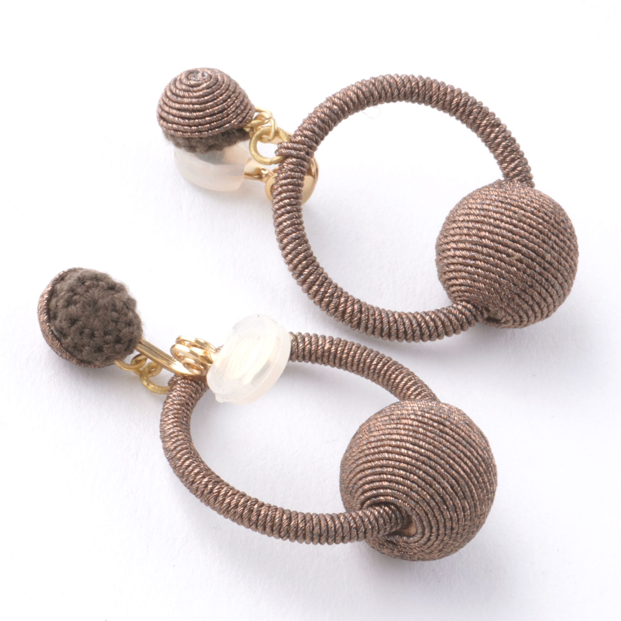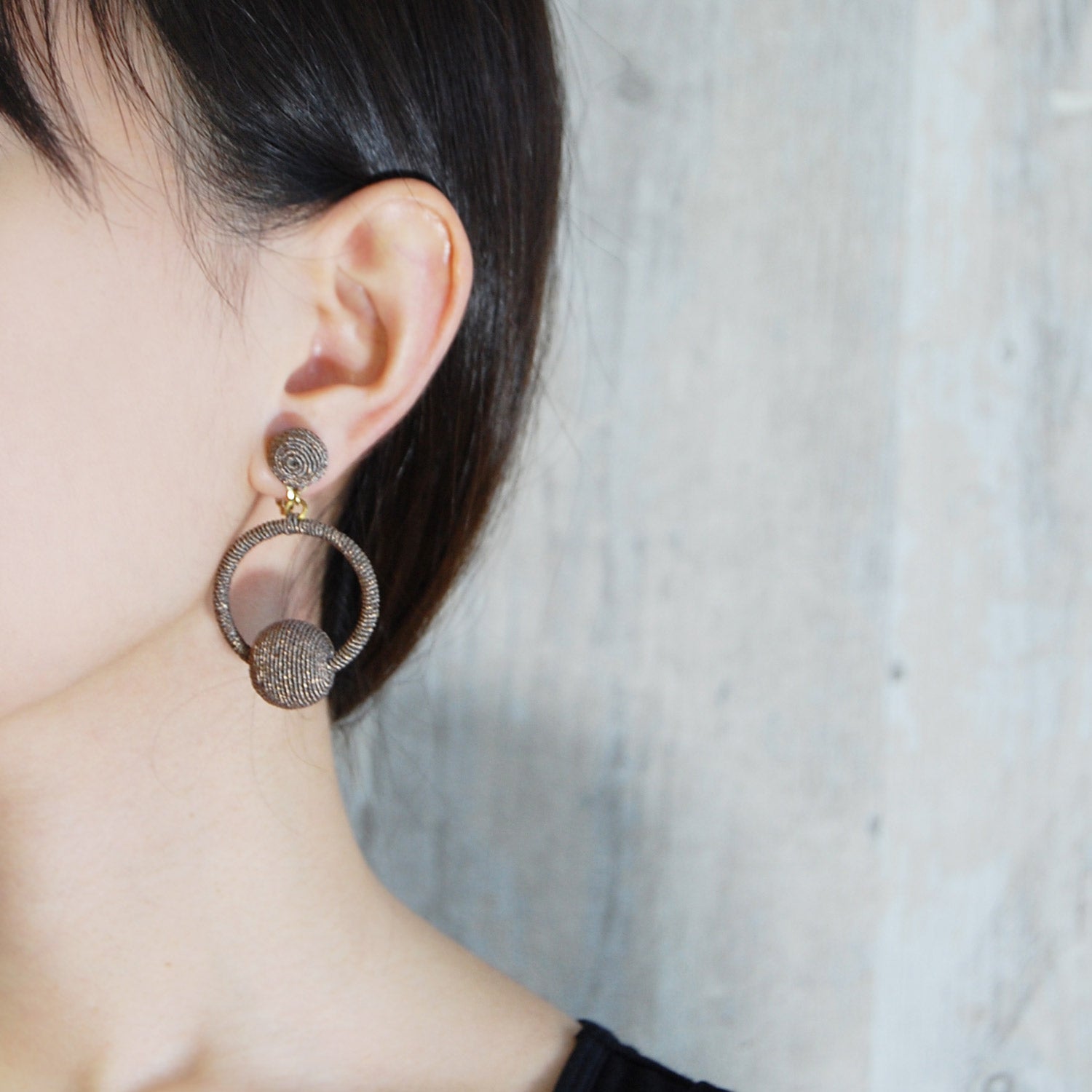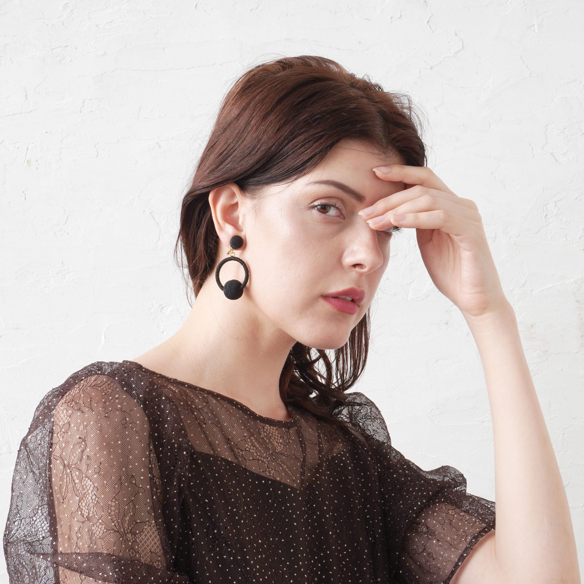 大きめのボンボンモチーフがゆらゆらと揺れ存在感があります。合わせやすい大人っぽいカラーリングなので、デイリーに使いまわせます。パーティーシーンにもおすめ。