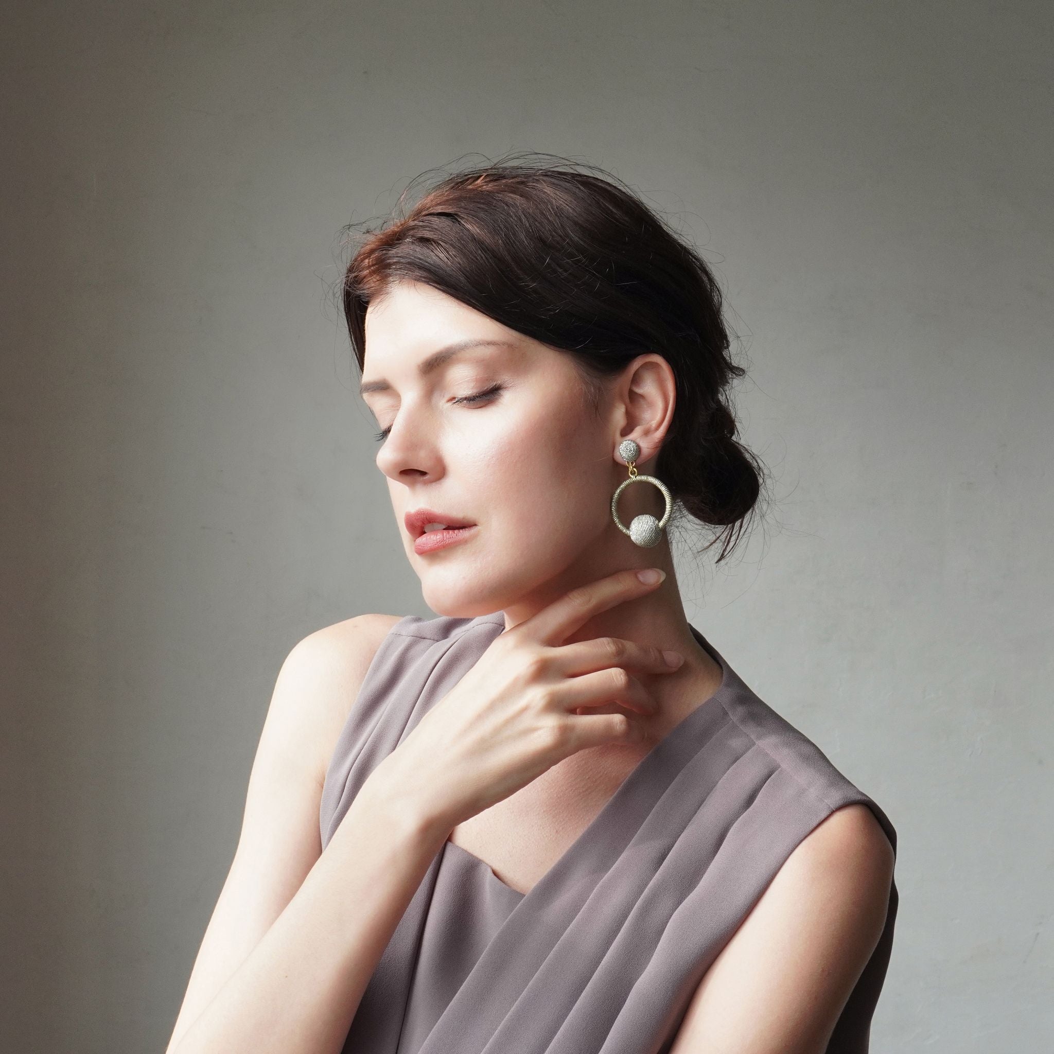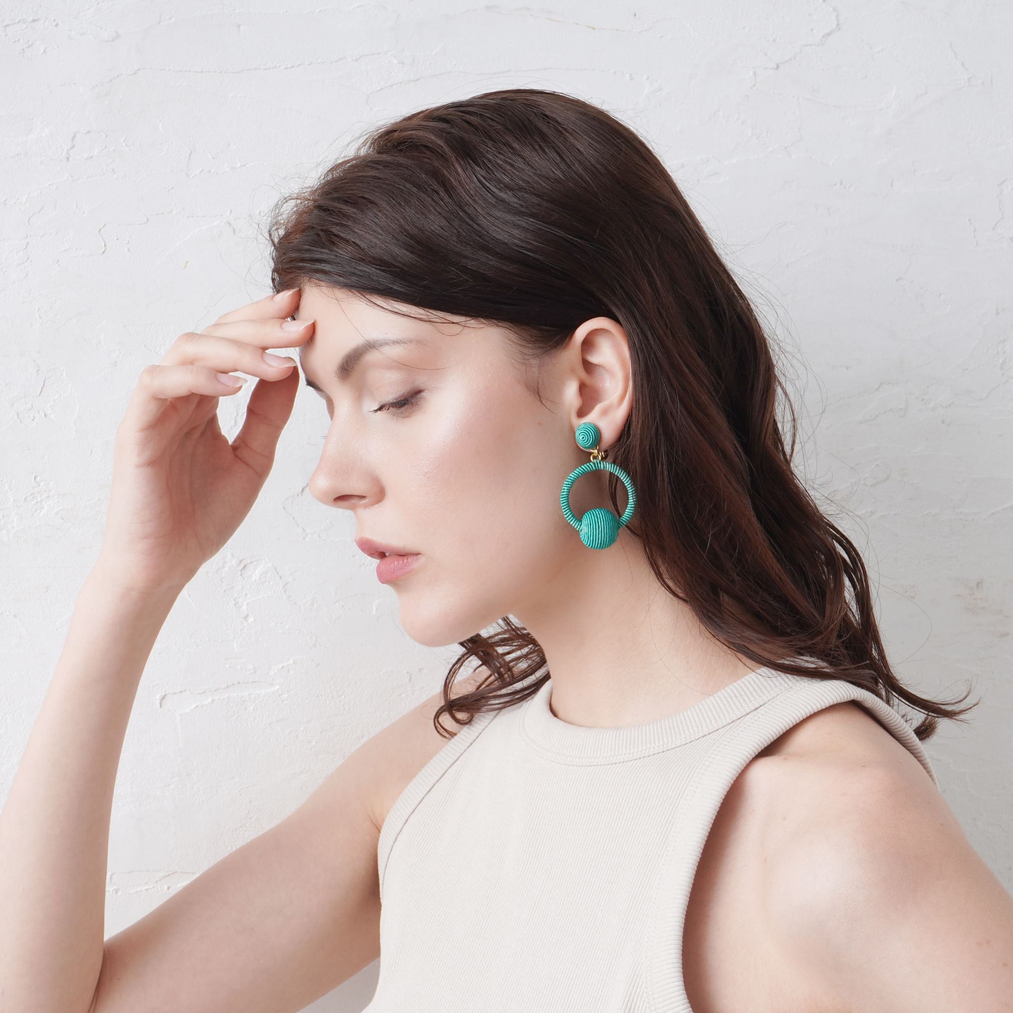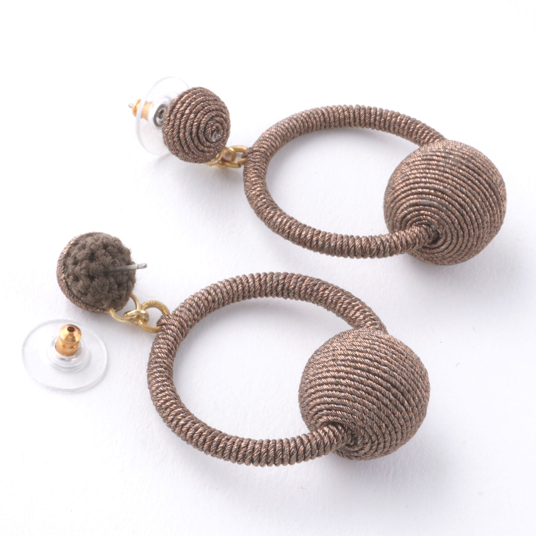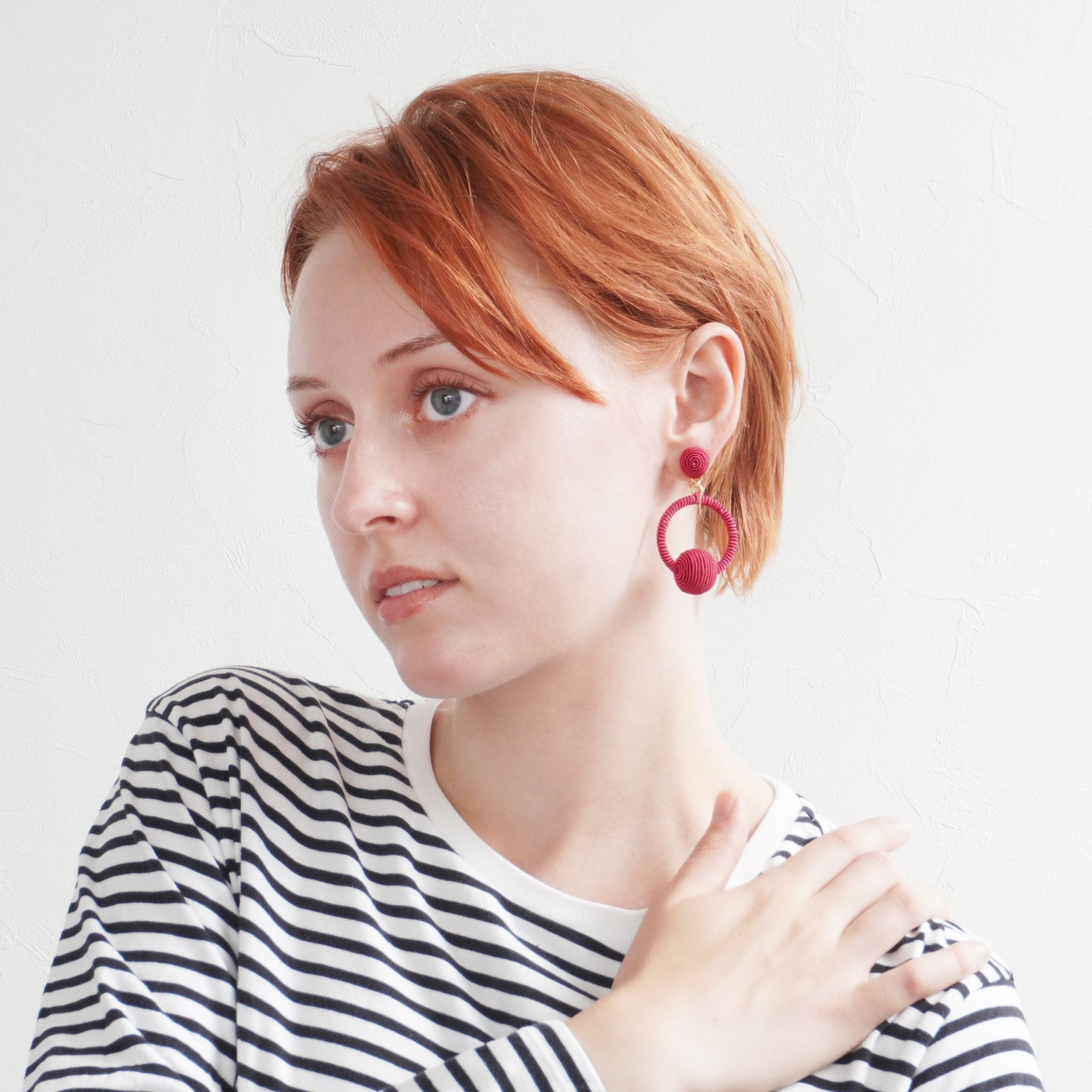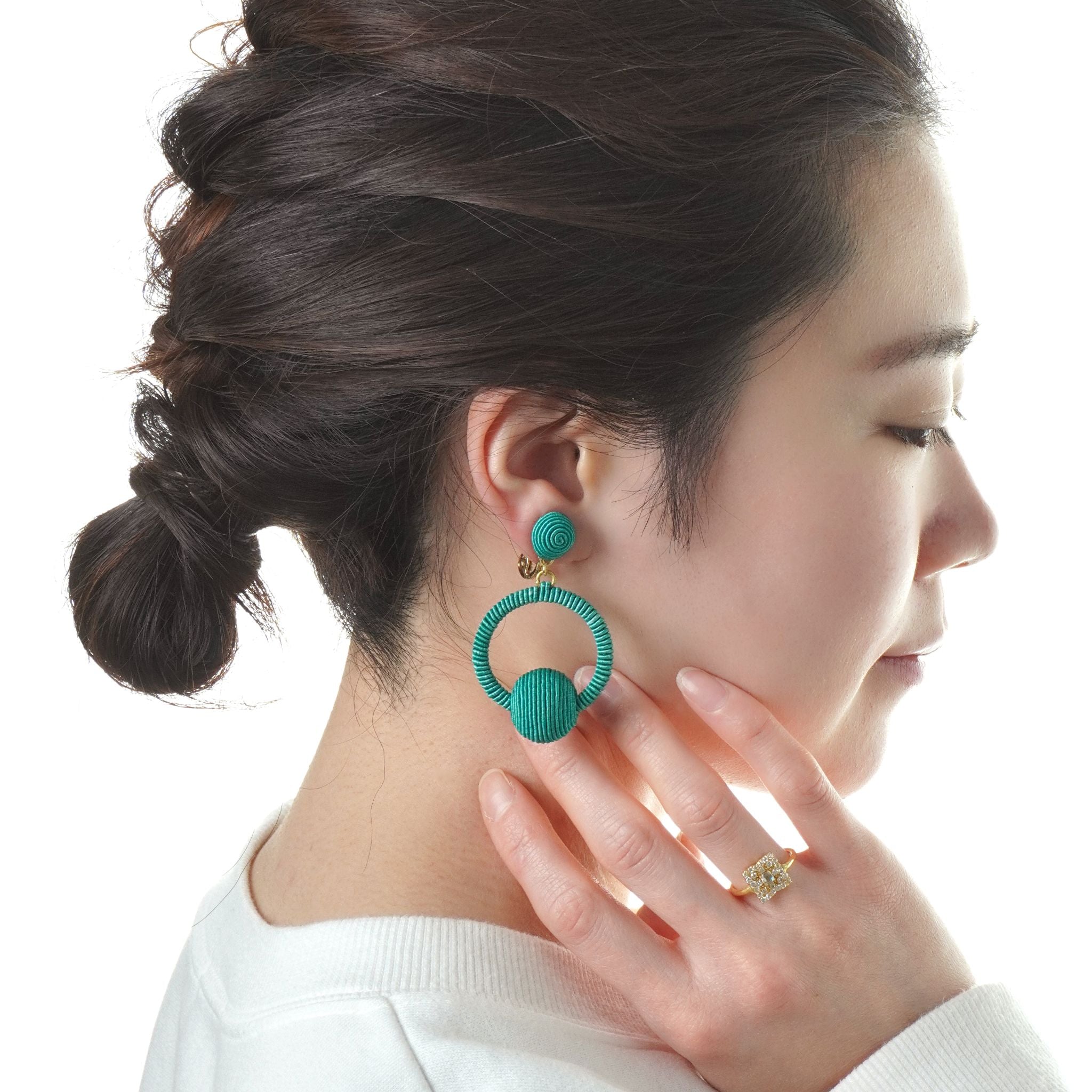 大きめのボンボンモチーフがゆらゆらと揺れ存在感があります。合わせやすい大人っぽいカラーリングなので、デイリーに使いまわせます。パーティーシーンにもおすめ。