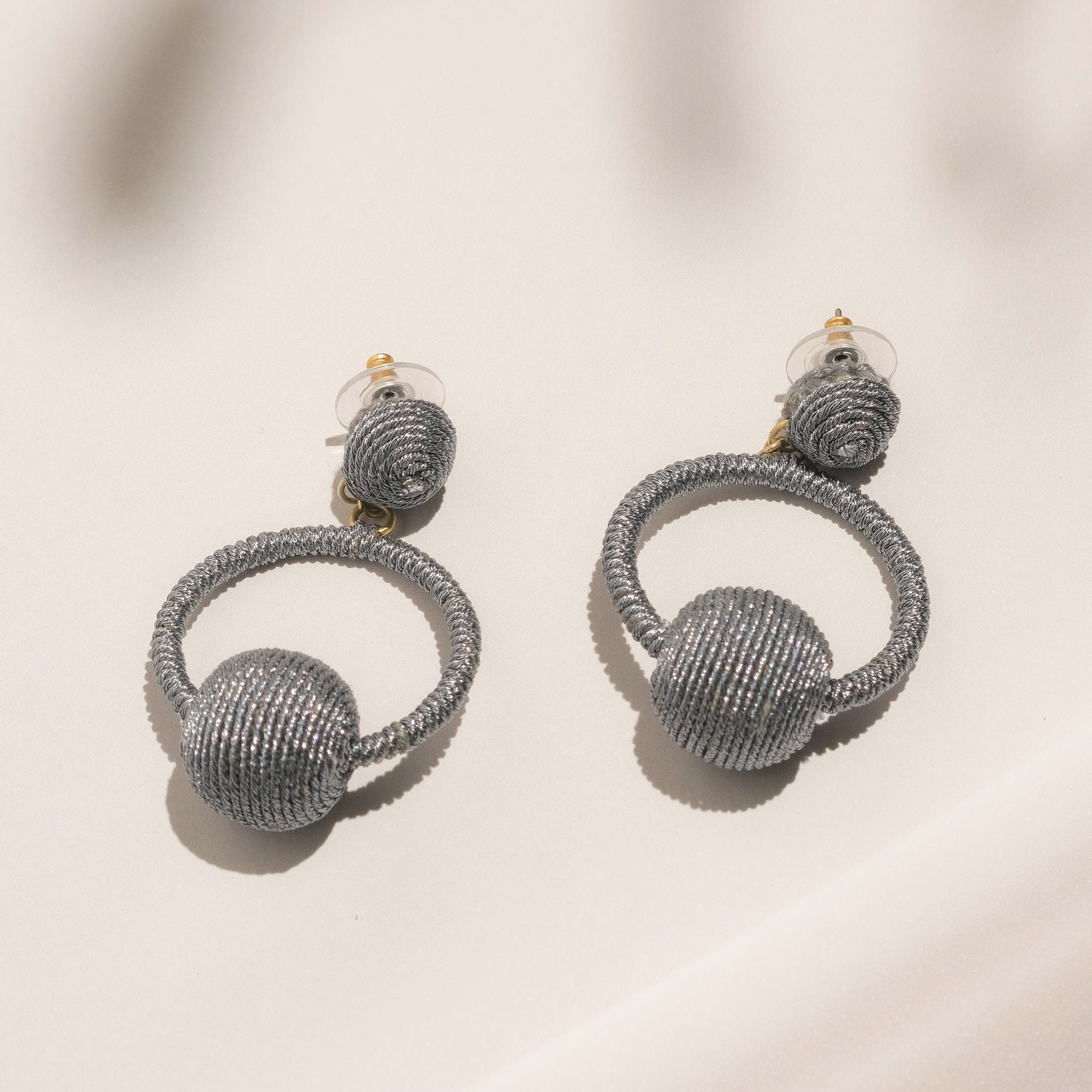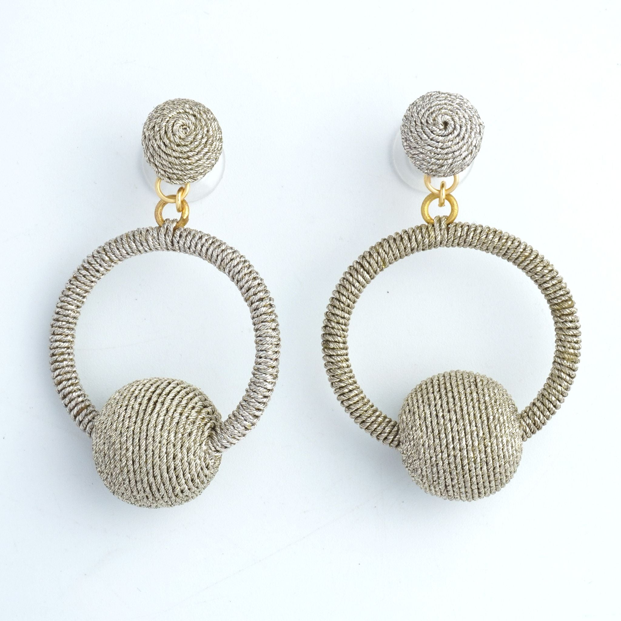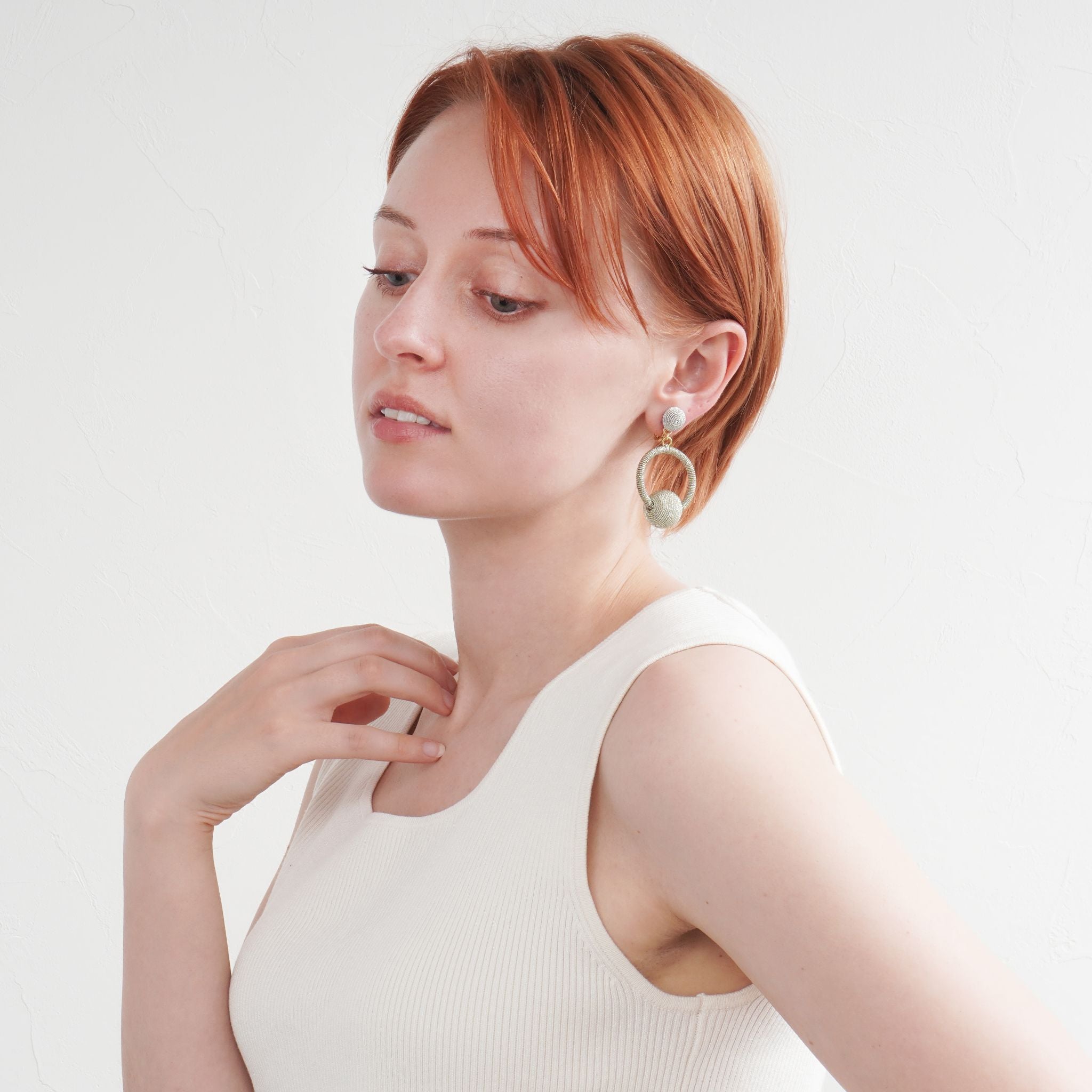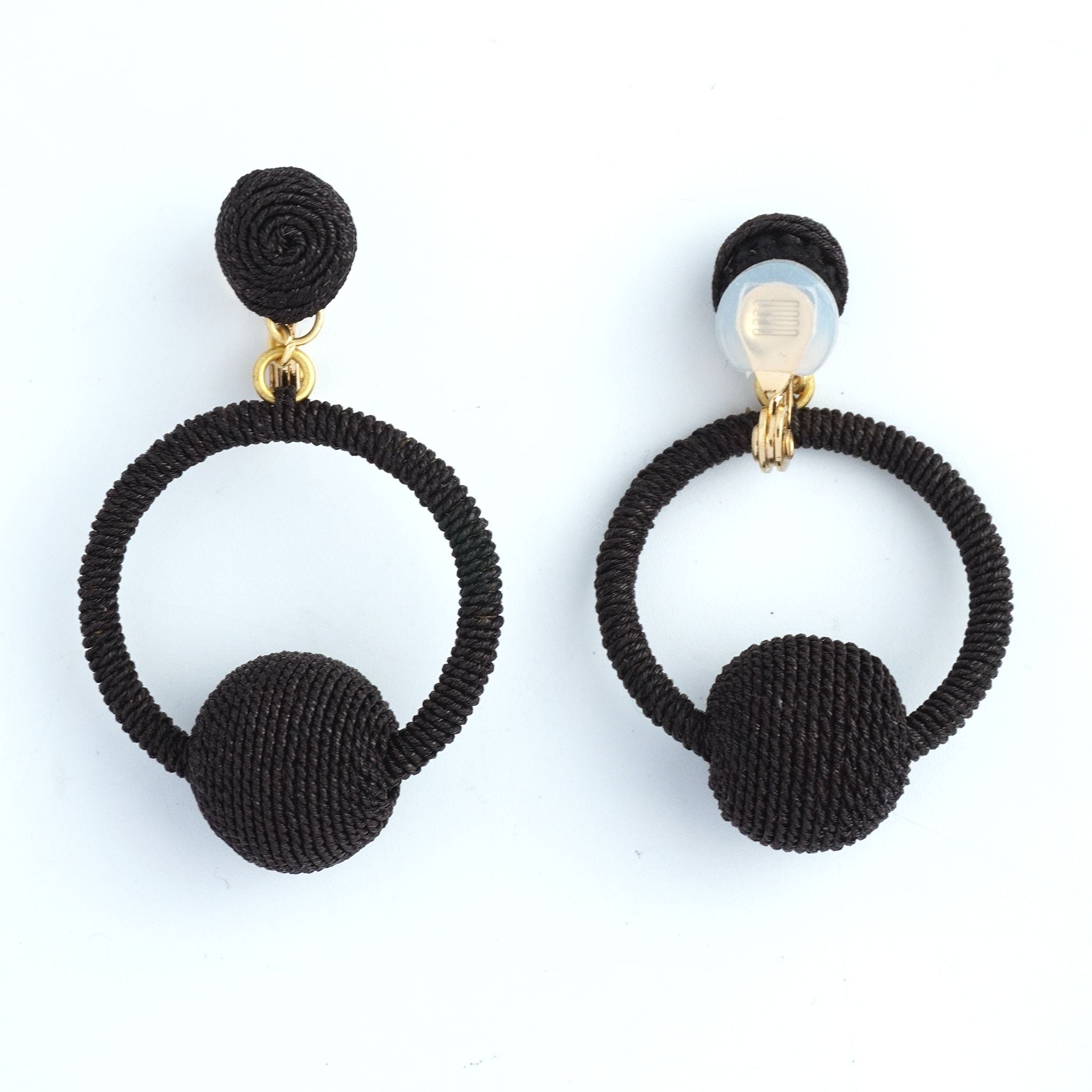 大きめのボンボンモチーフがゆらゆらと揺れ存在感があります。合わせやすい大人っぽいカラーリングなので、デイリーに使いまわせます。パーティーシーンにもおすめ。