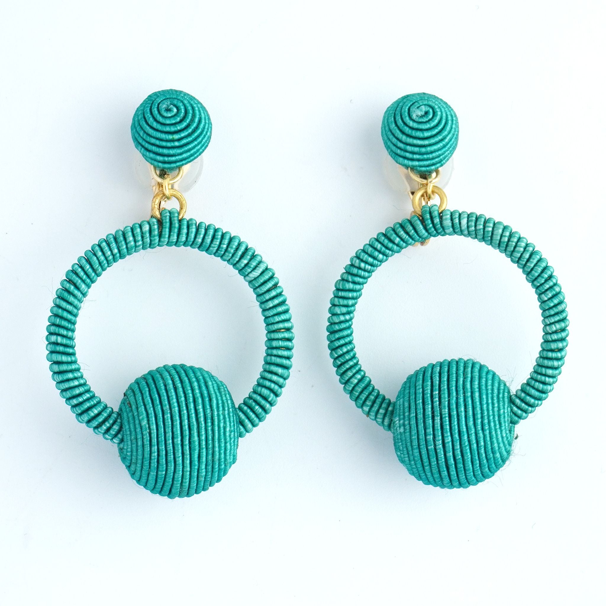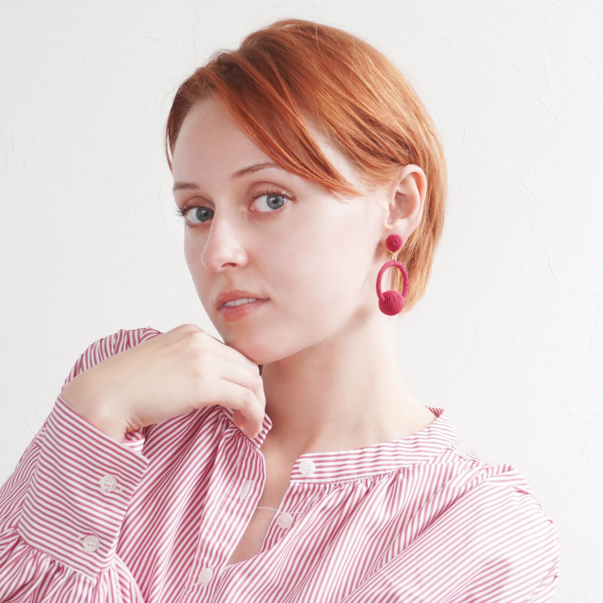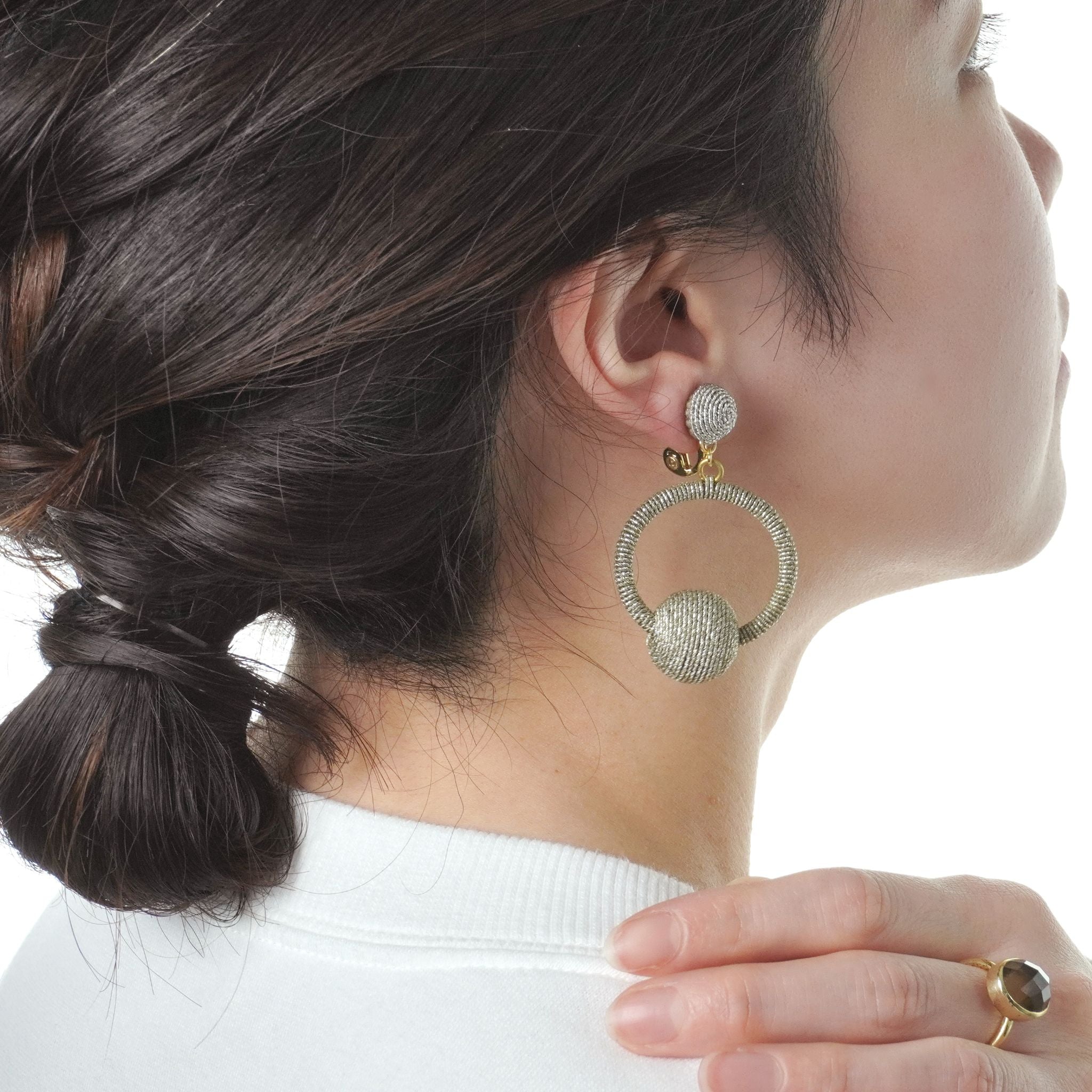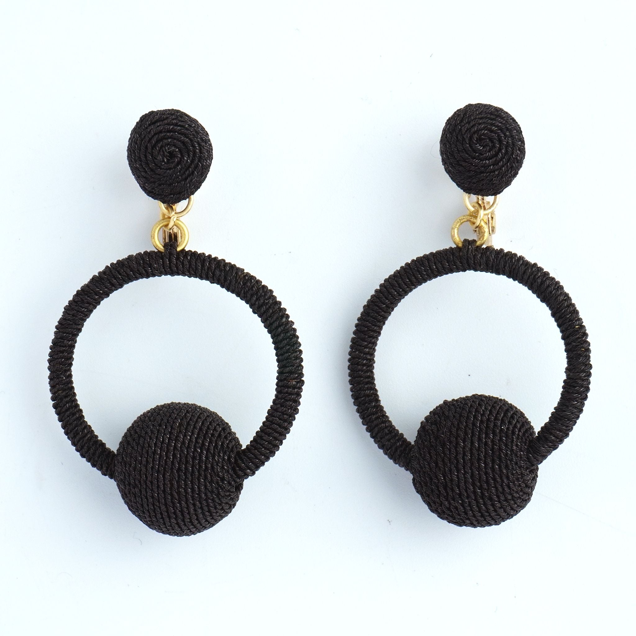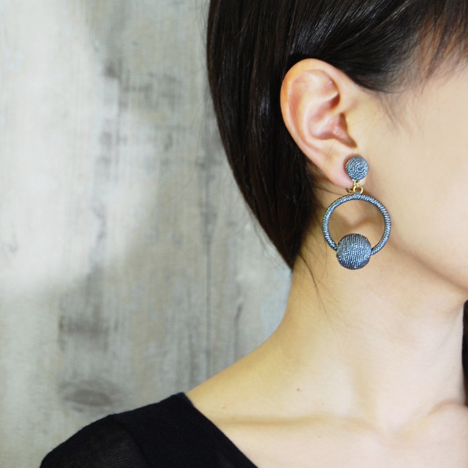 大きめのボンボンモチーフがゆらゆらと揺れ存在感があります。合わせやすい大人っぽいカラーリングなので、デイリーに使いまわせます。パーティーシーンにもおすめ。