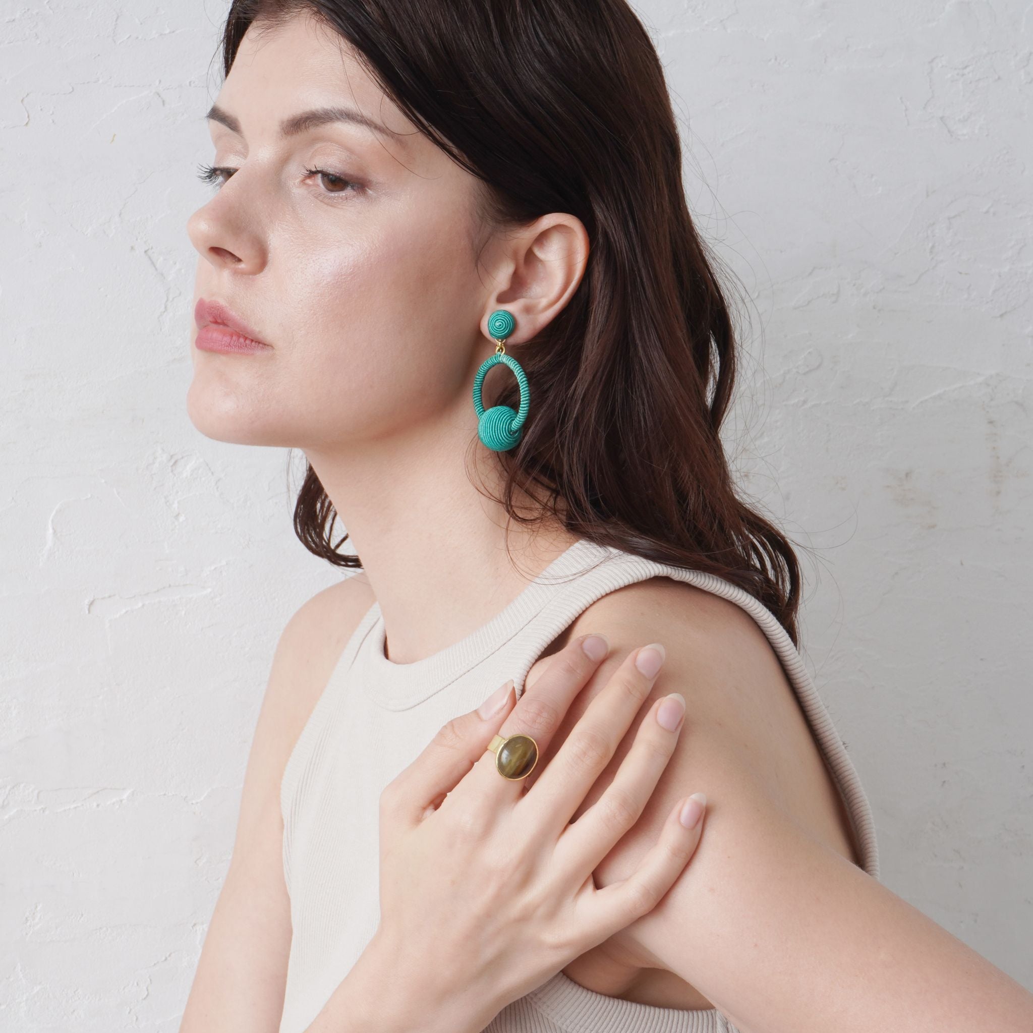 動くたびに揺れる立体的なデザインが、印象的なアクセントに。都会的なカラーとユニークなフォルムが絶妙にマッチし、どんなスタイルにもアートなアクセントをプラス。つけるだけで気分が上がる、遊び心のあるアクセサリーで、新しい自分を楽しんで。