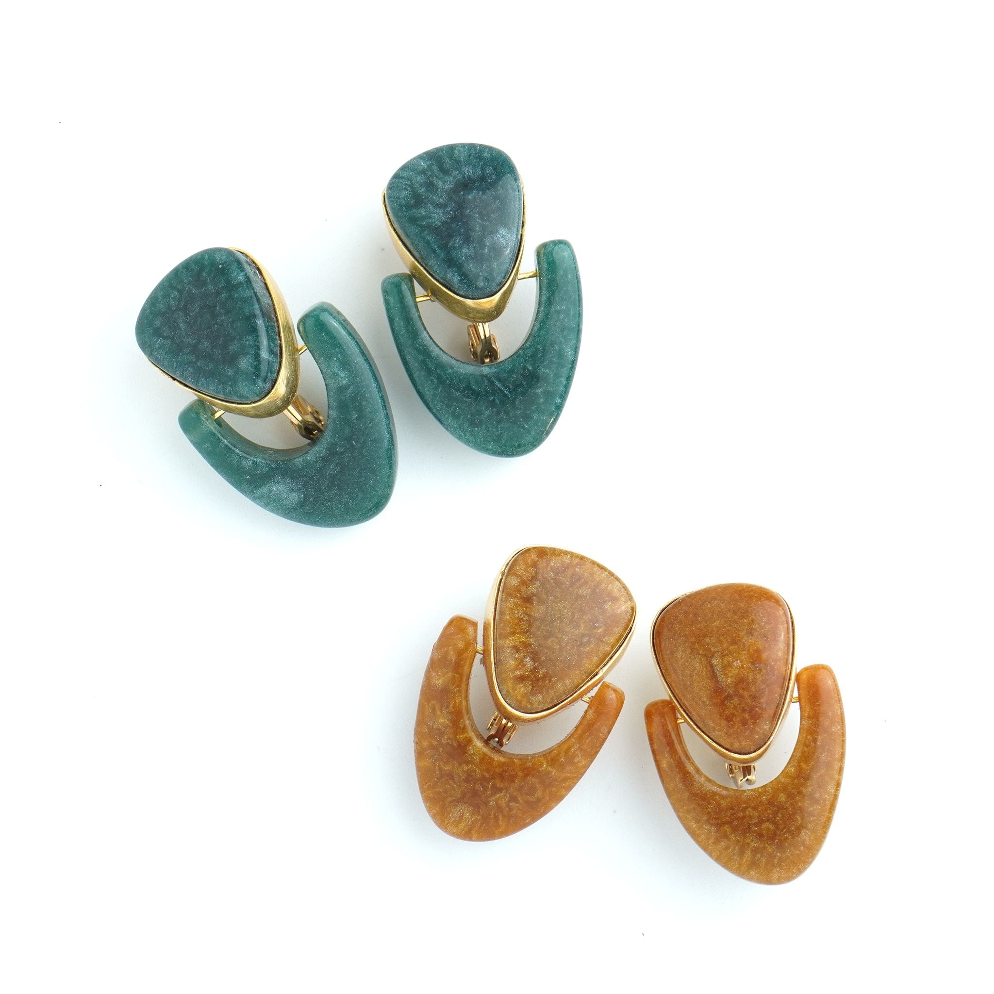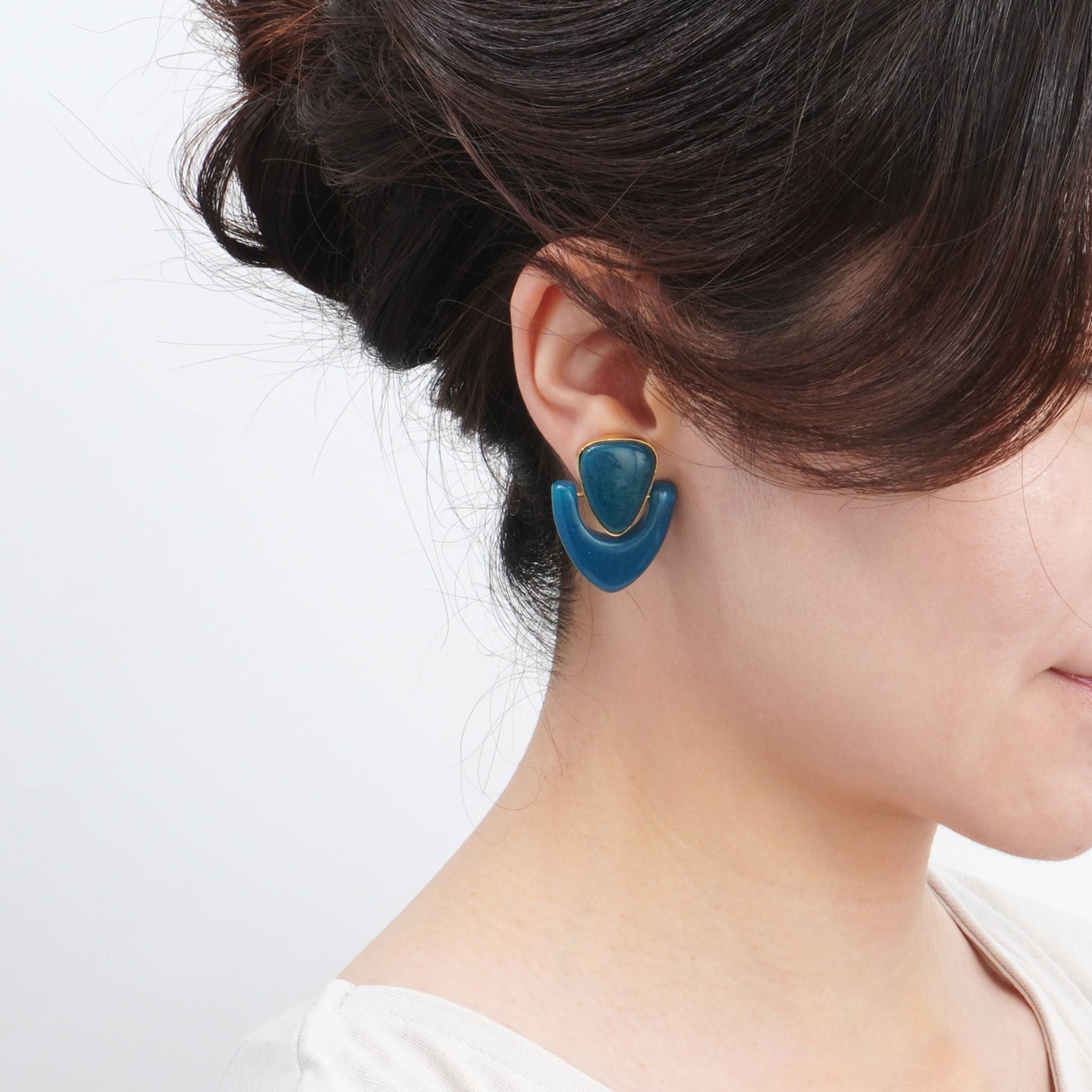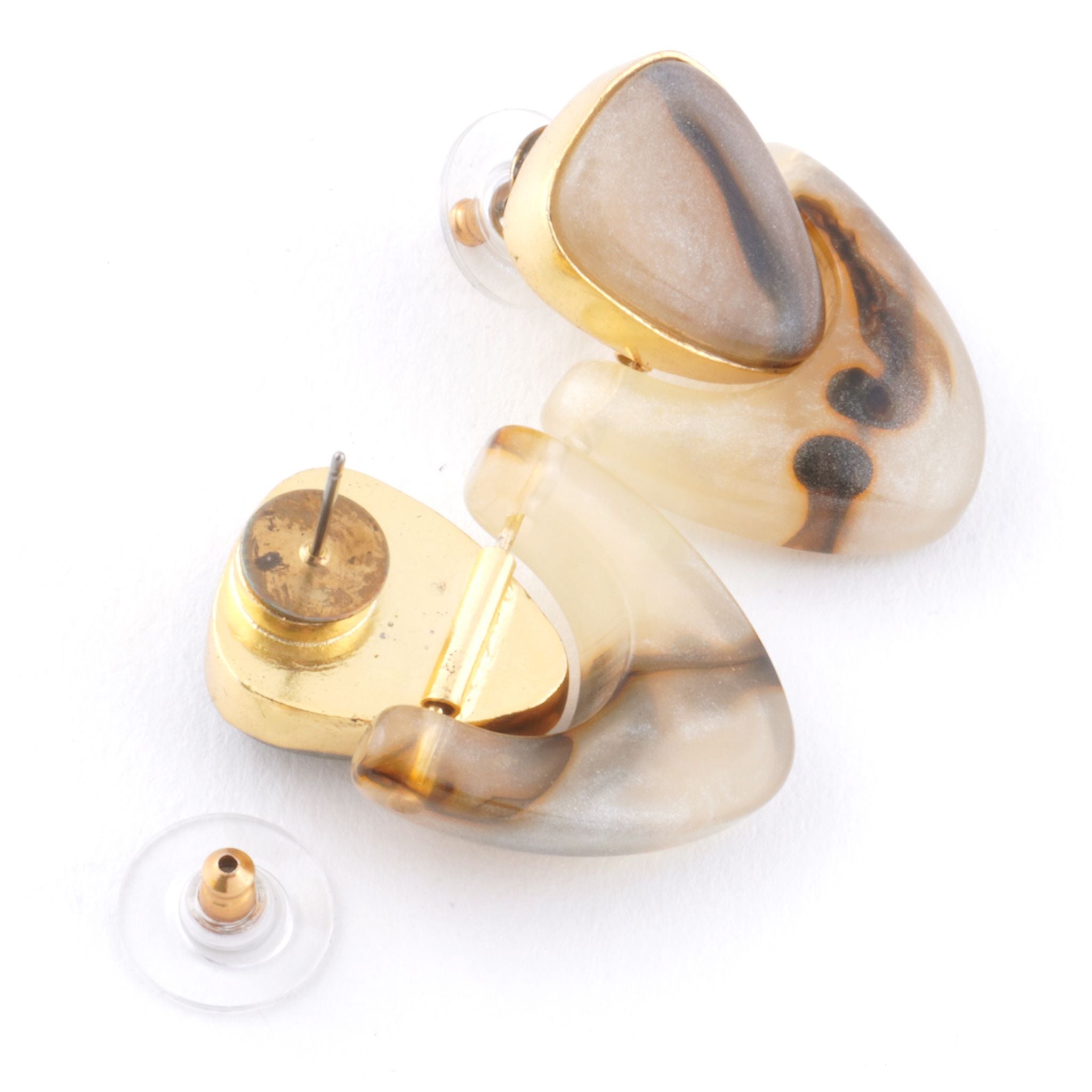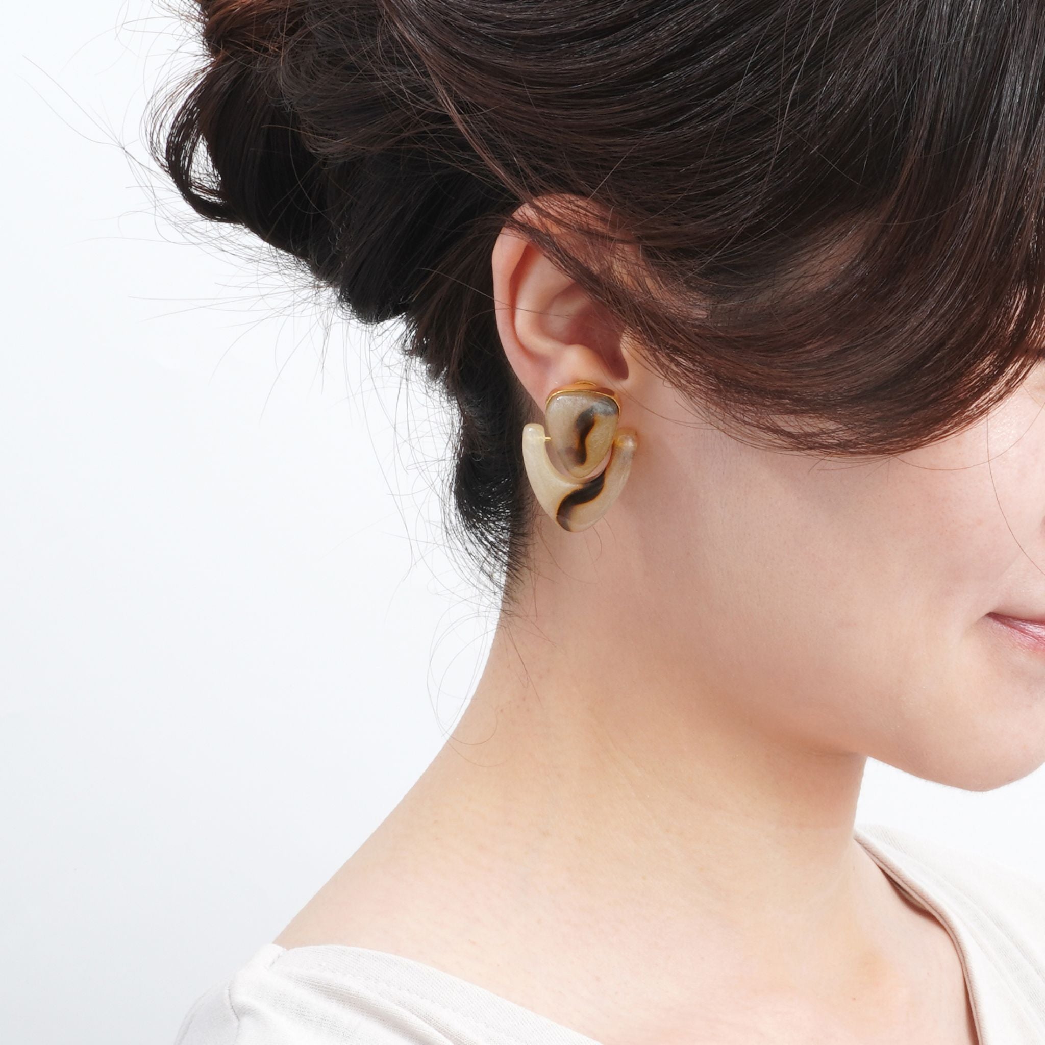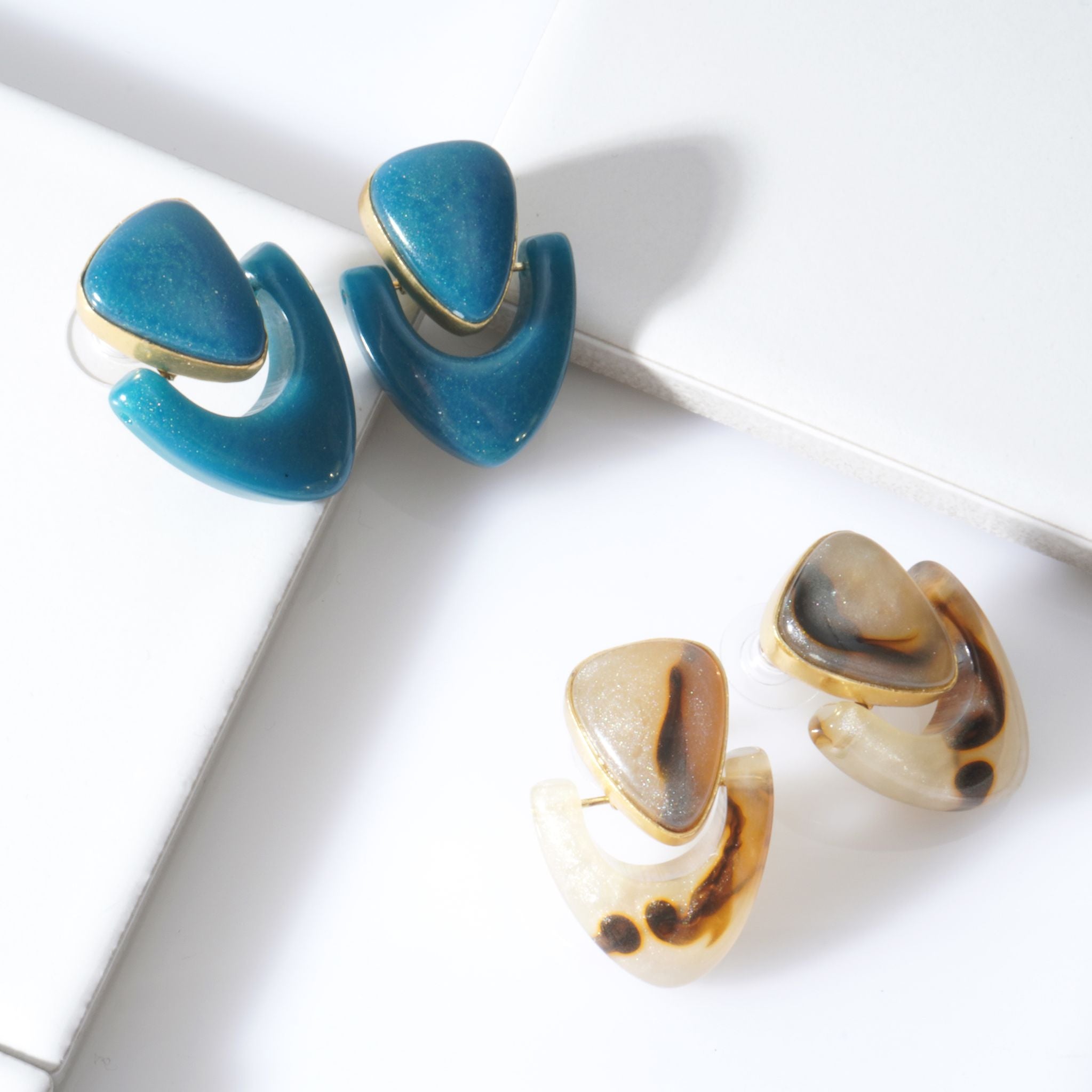大人カジュアルコーデのアクセントになるピアス/イヤリング。大人シックカラーのマーブルのユニークなモチーフは存在感があり、差し色になるアイテムなのでパーティーシーンでも活躍してくれます。天然石のような風合いを持つレジンはインドでも限られた職人にしか表現できません。1つ1つ手作りのため1つとして同じ柄がないのも特徴です。
