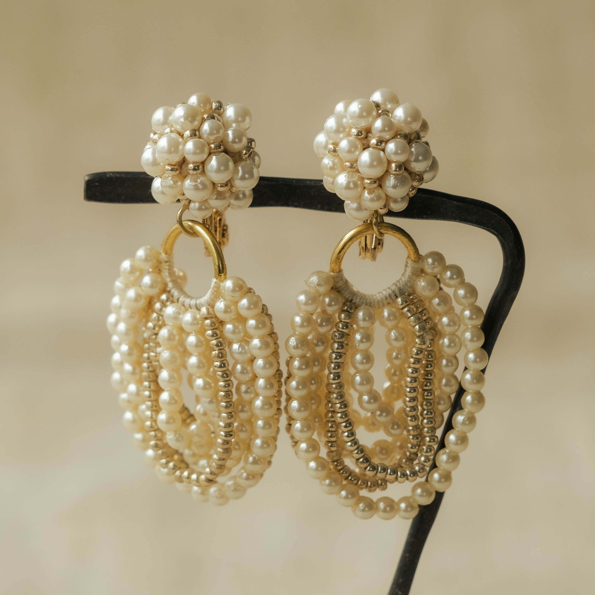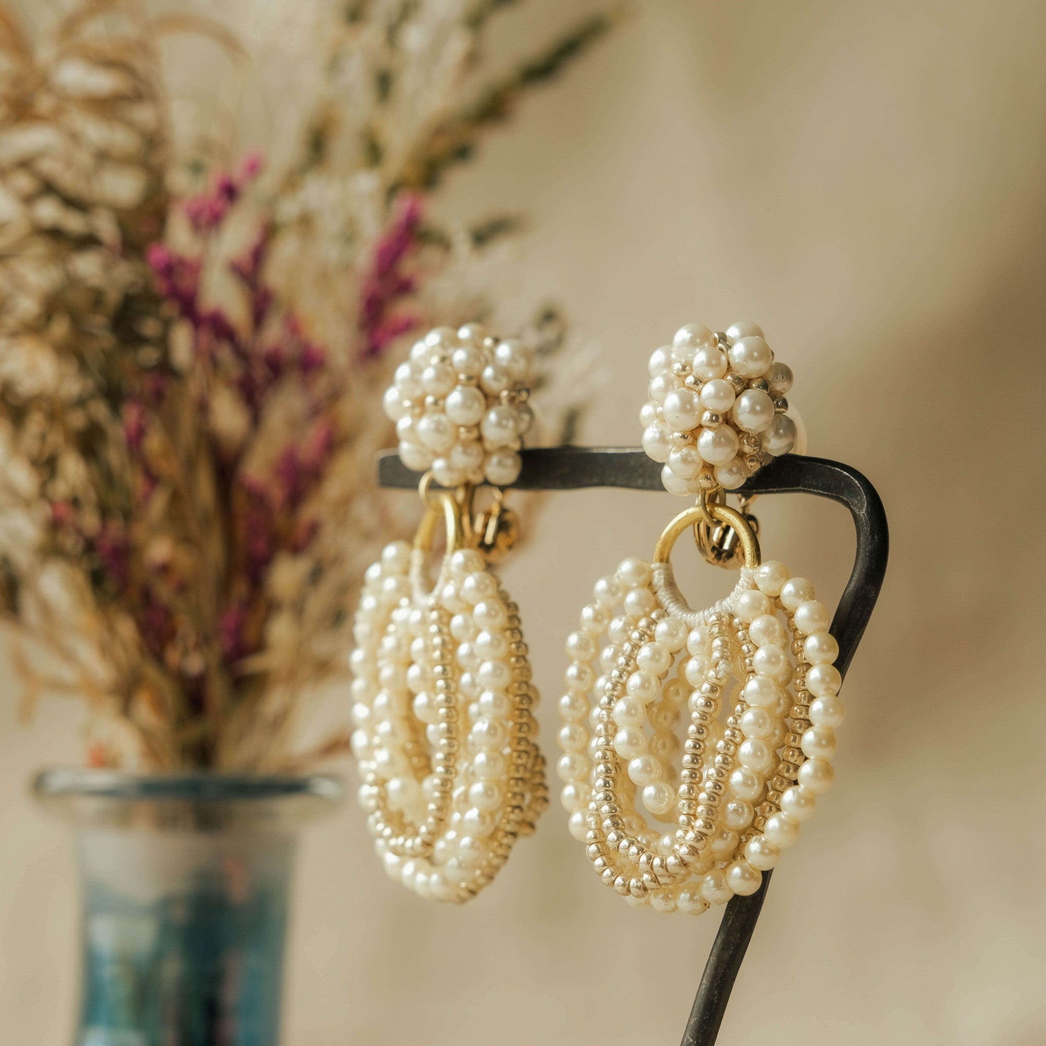 小粒パールの柔らかなシルエットと、繊細なディテールが織りなすエレガンス。クラシカルな気品を纏いながらも、現代の洗練を感じさせるデザインが魅力です。動くたびにぽわん揺れるパールが、華やかさと奥行きを演出し、特別な日の装いを格上げ。どんな時代にも愛される普遍的な美しさを、あなたのスタイルにそっと寄り添わせて。