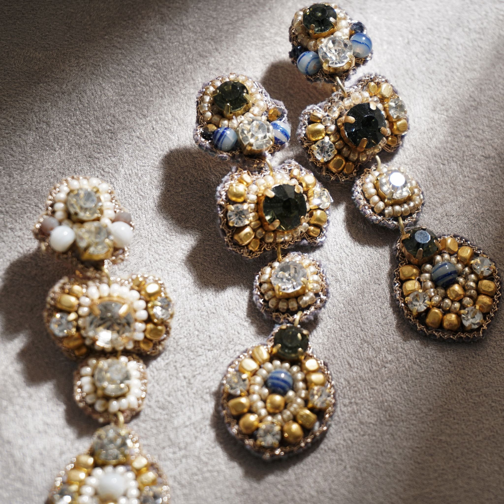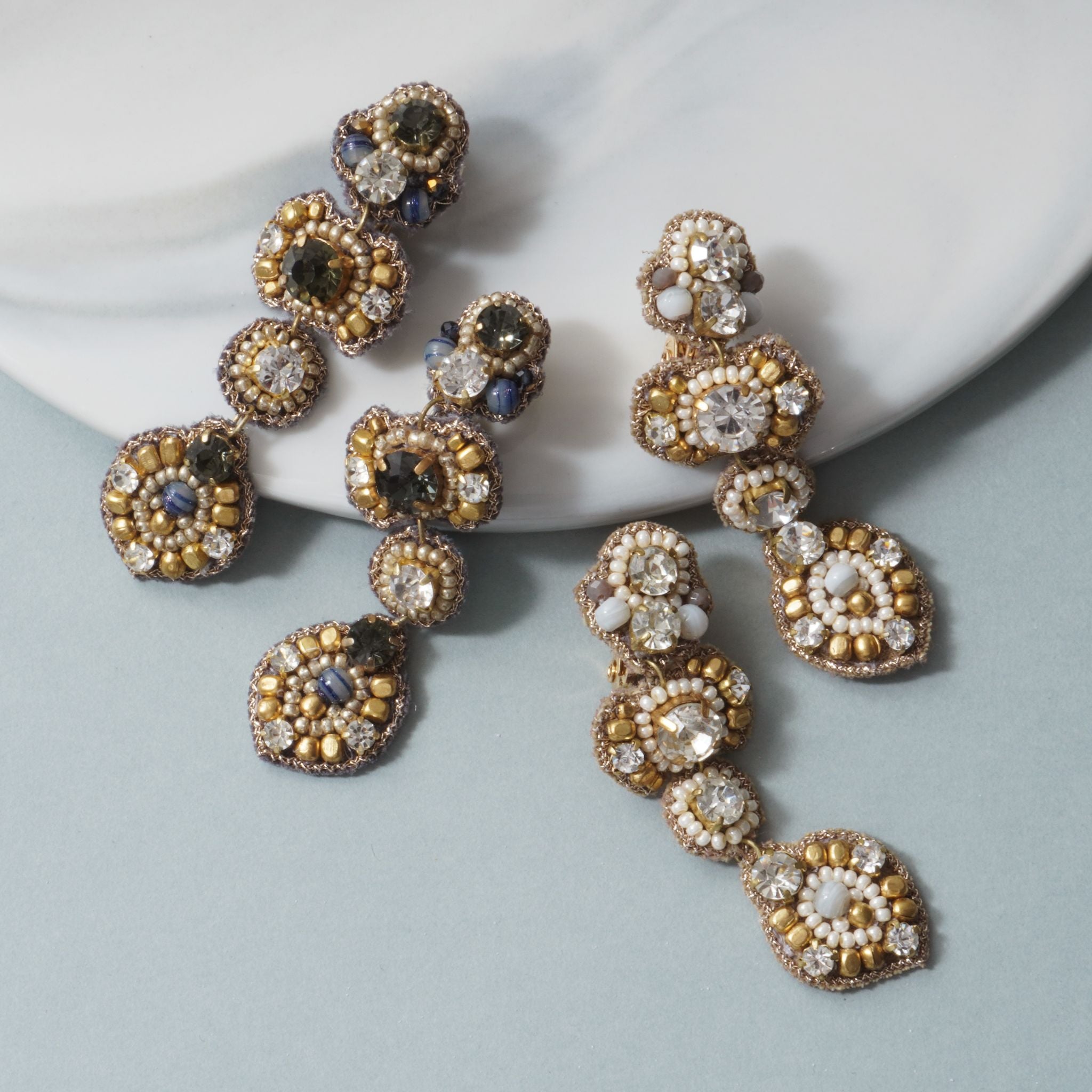 大人っぽいビジューモチーフのロングピアス/イヤリング。ストーンがきらりと輝き、華やかさを与えてくれるので、デイリー使いにはもちろんですが、パーティーなどオケージョンシーンにもおすすめのアイテムです。大人っぽい上品な雰囲気にしてくれます。