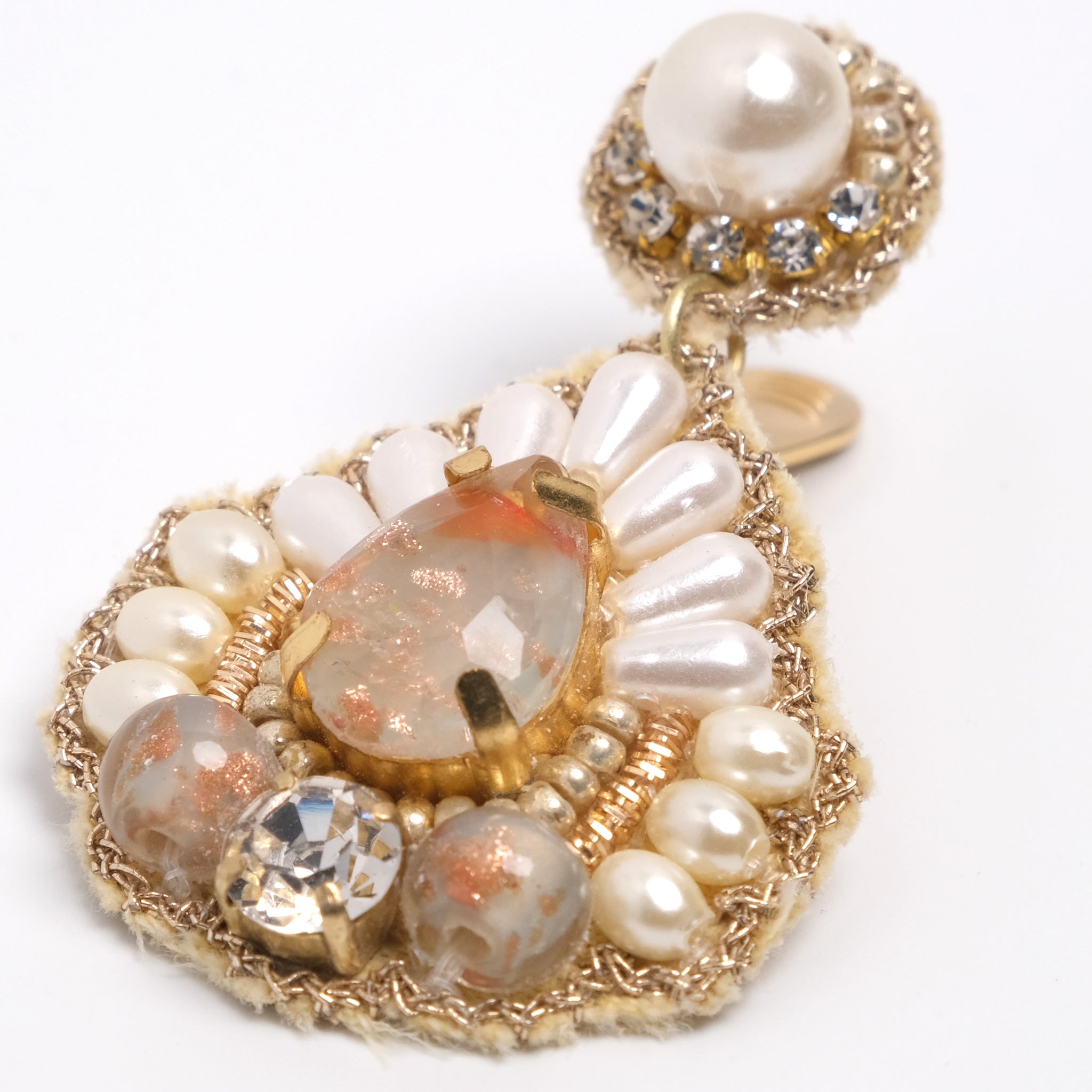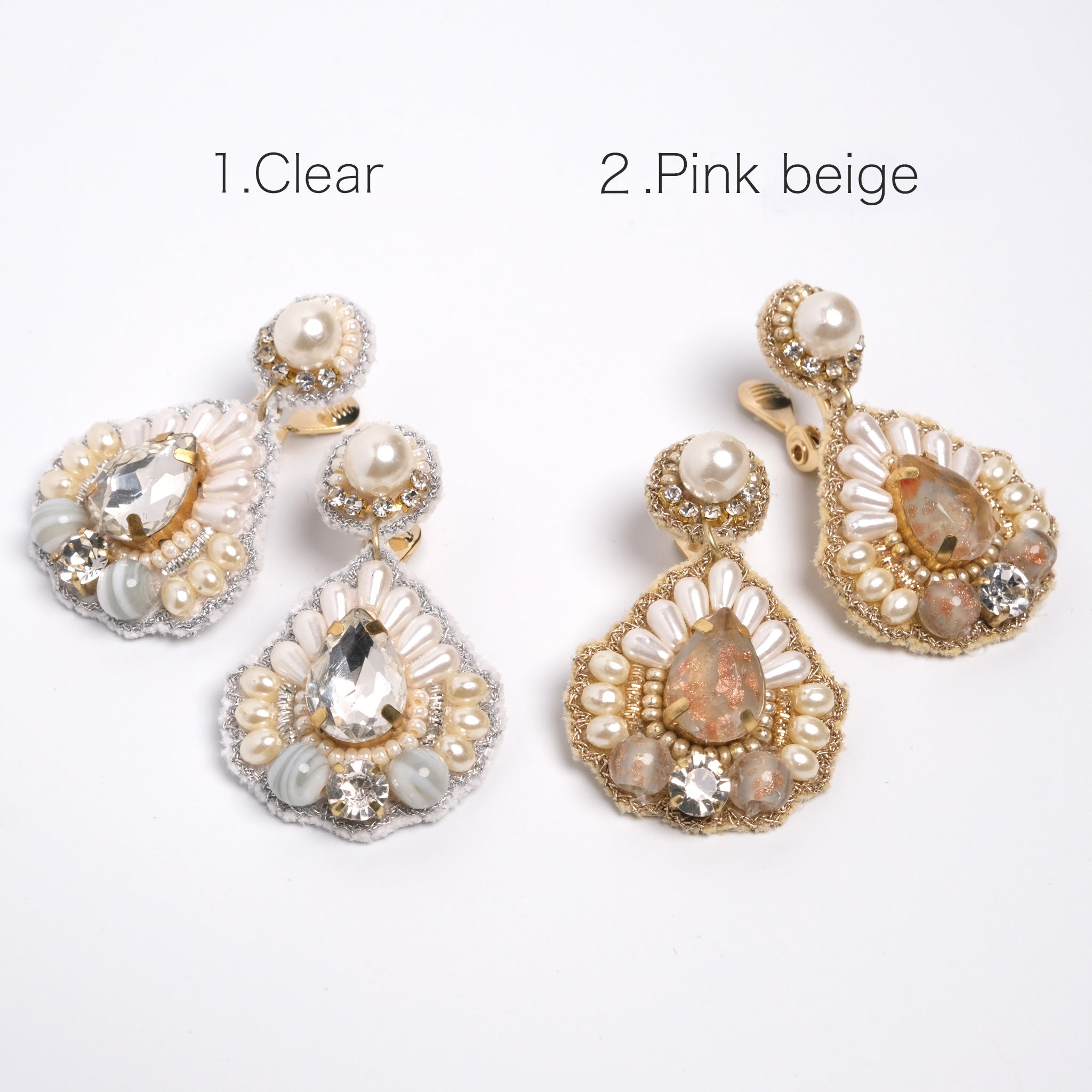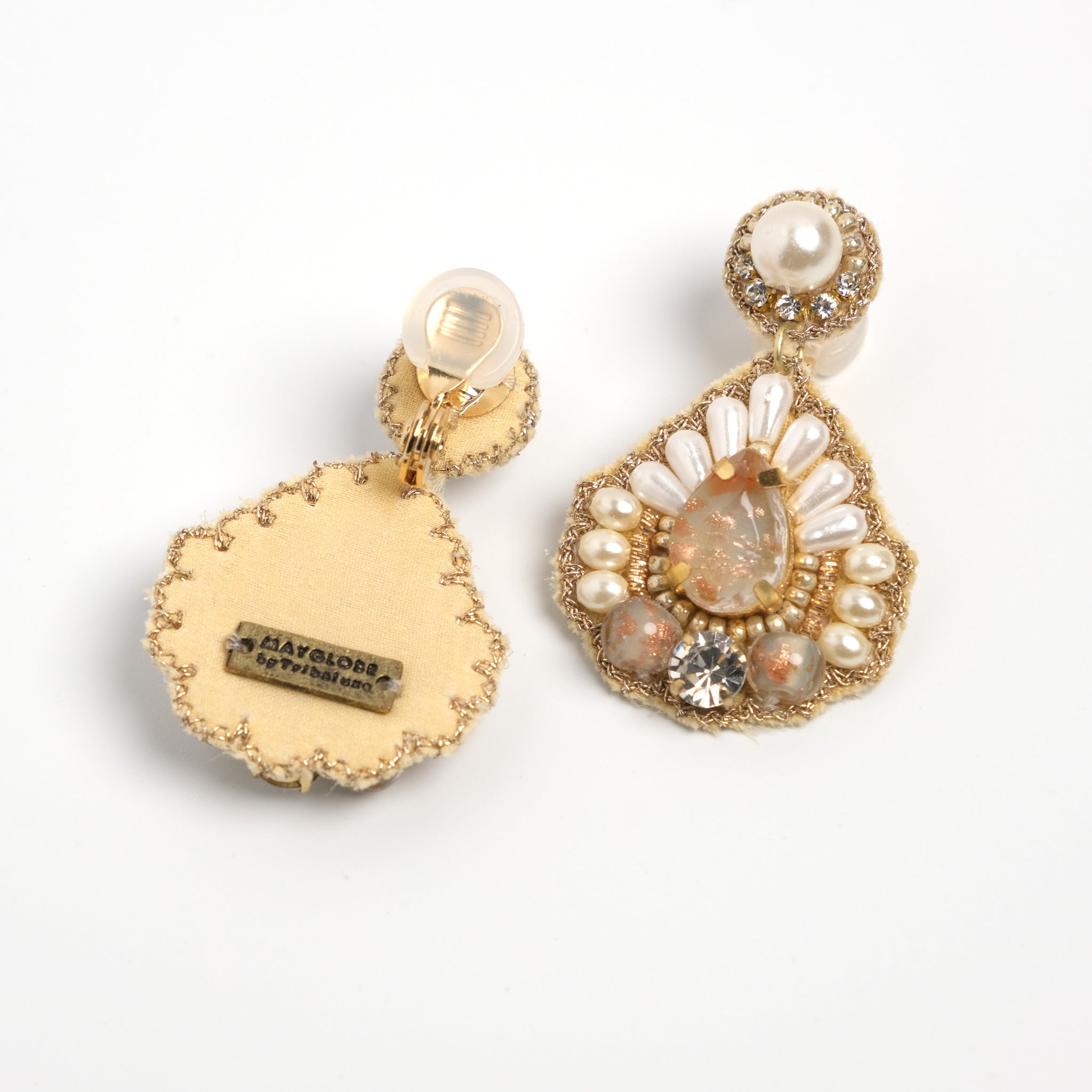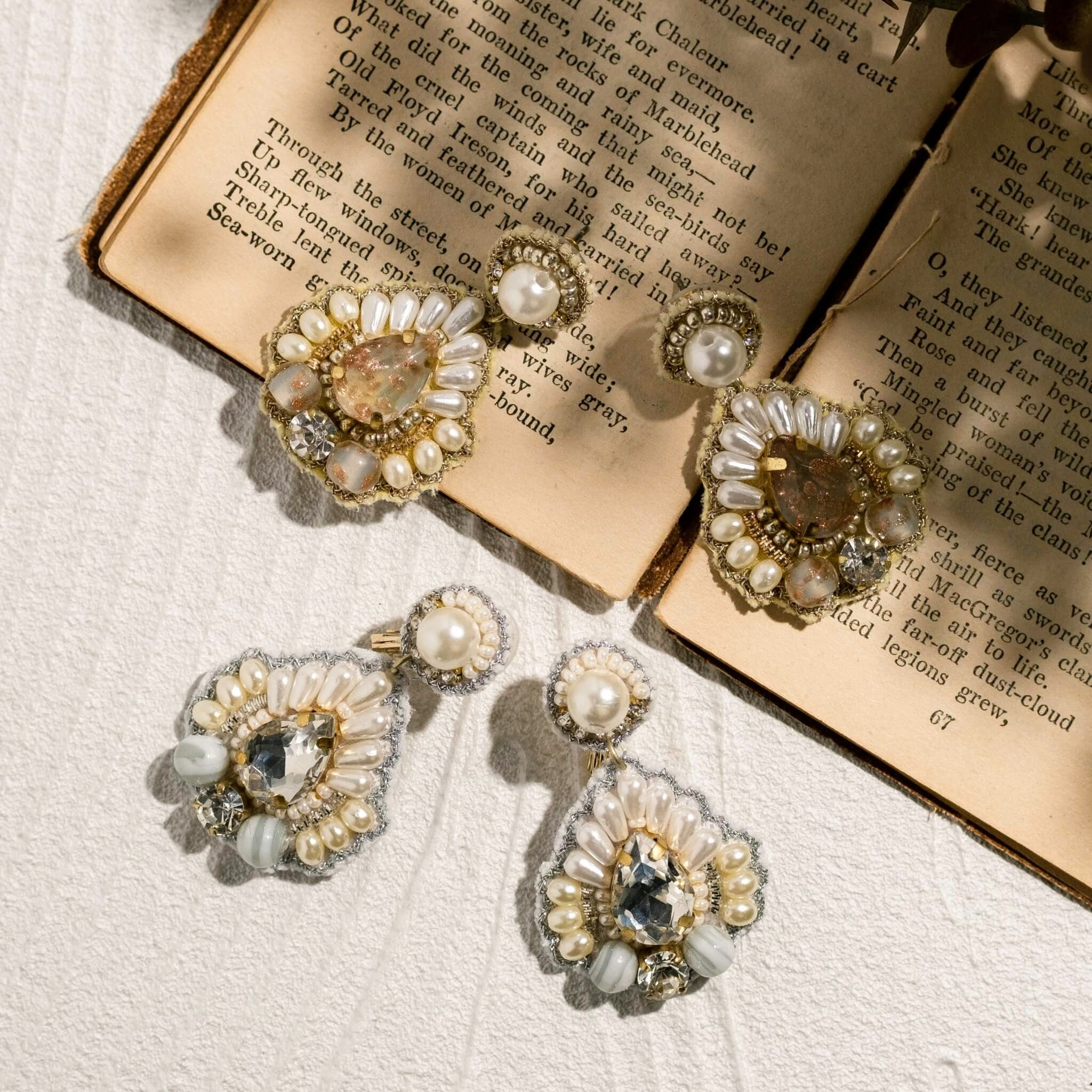 繊細なビーズワークと輝くビジューが織りなす、クラシカルなピアス/イヤリング。