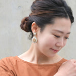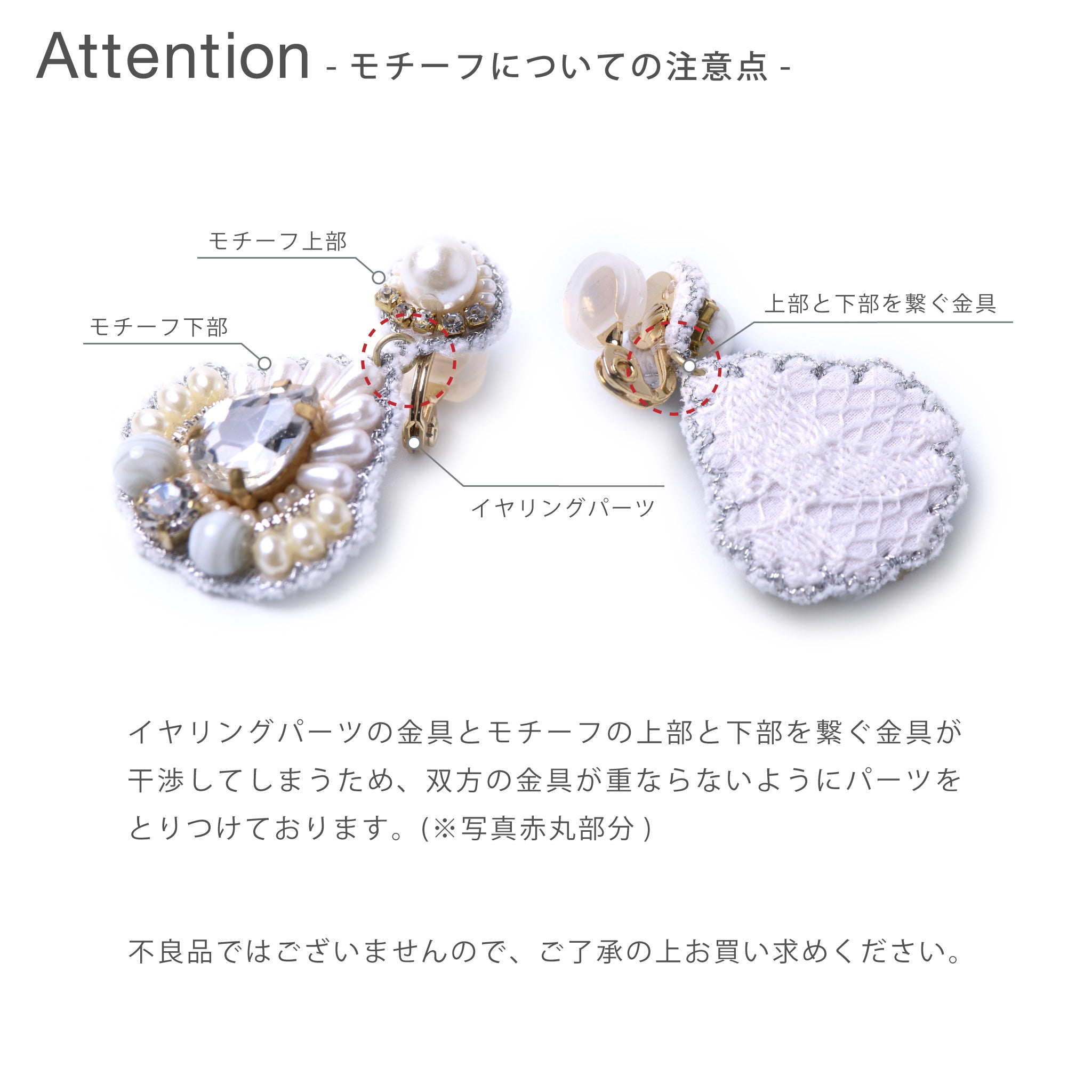 上下のモチーフを繋ぐ金具はイヤリングパーツと干渉しないように少しずらしてモチーフ繋いでおります。真正面に繋がれていないとお問い合わせをいただくことがありますが、最適な仕上がりを実現するため、意図的にこの仕様を採用しております。