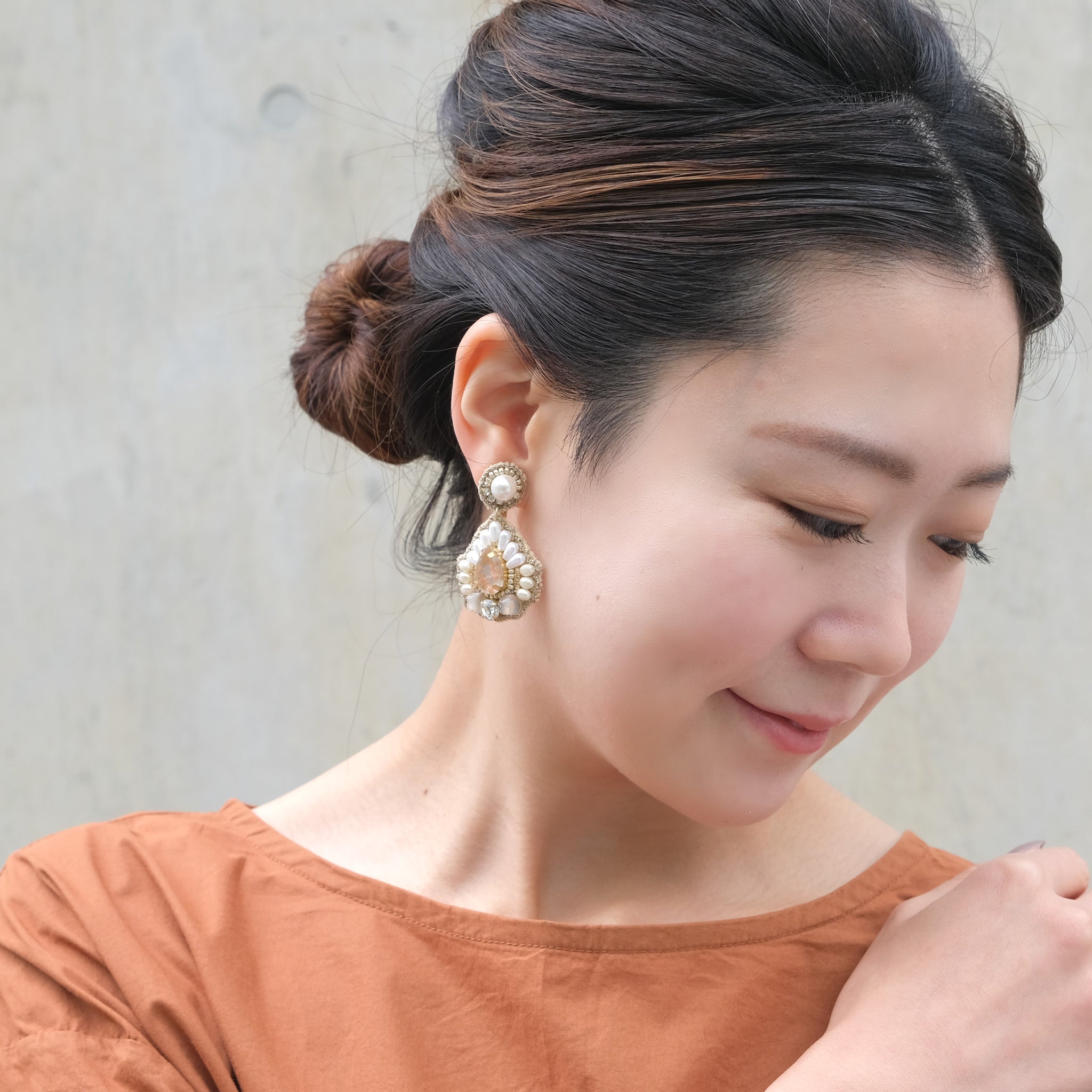 シフォン / 真鍮 / チタンポスト/ ガラスストーン / ガラスビーズ / アクリルパール/※ニッケルフリー