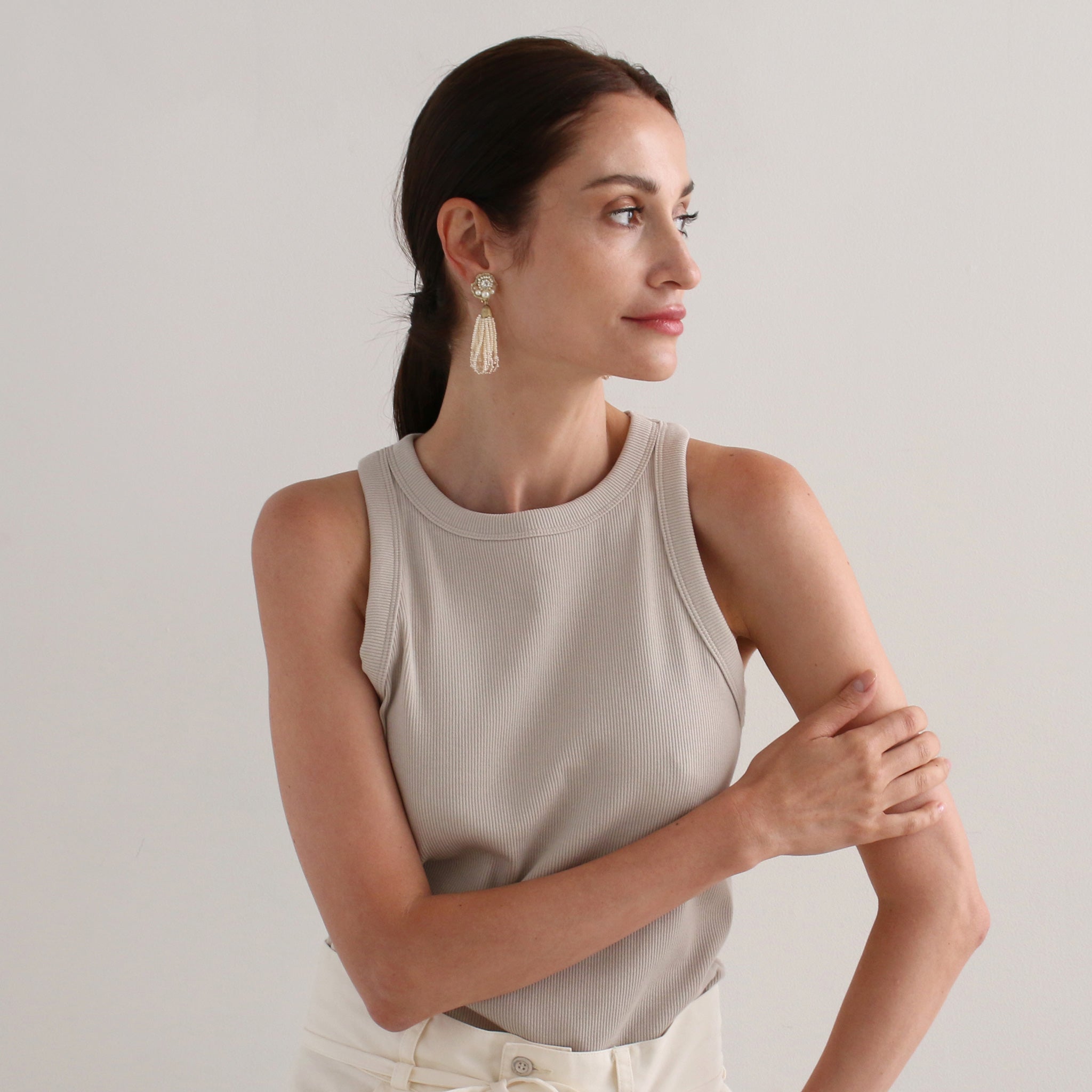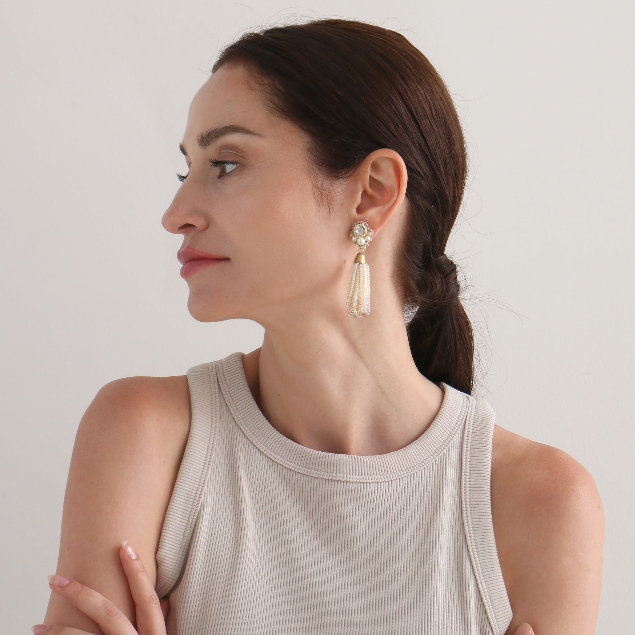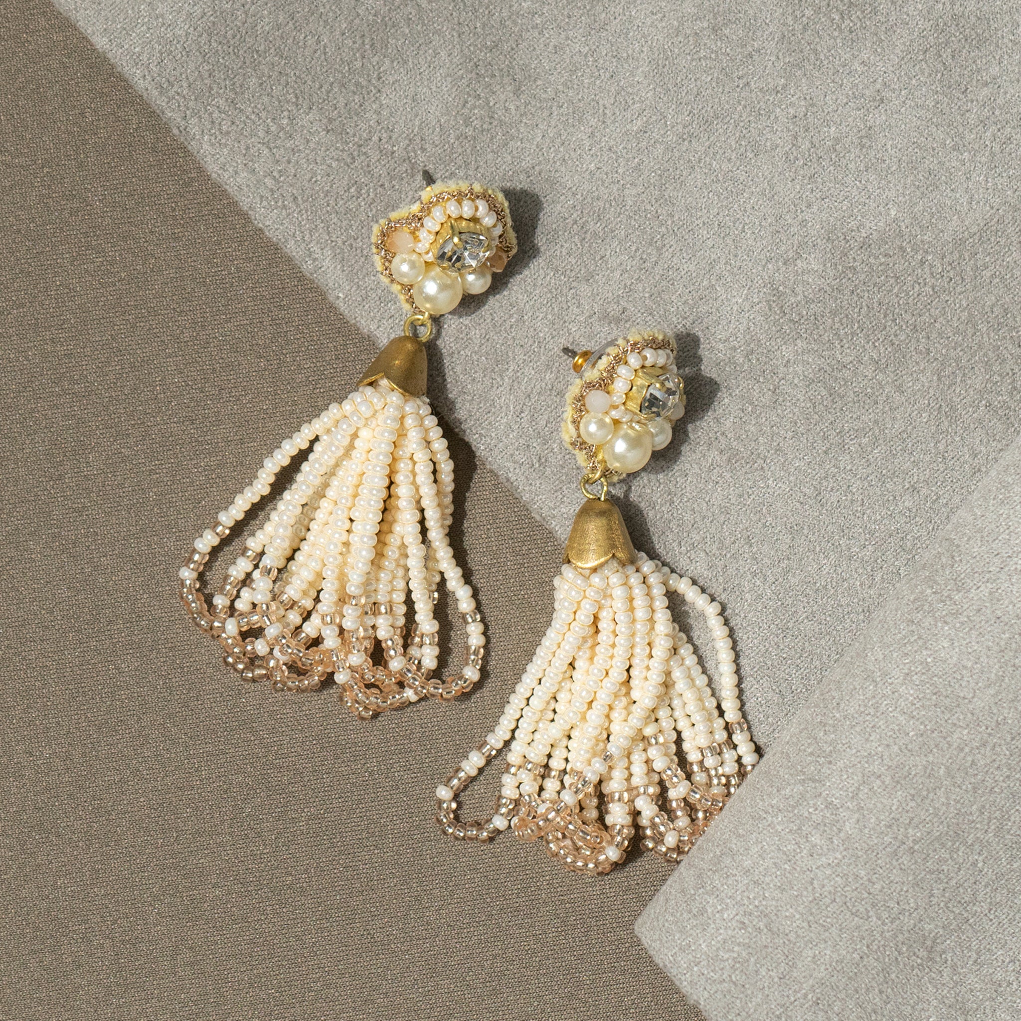 ふわっと揺れるタッセルが耳元を包み、表情までパッと華やかに。光と動きが織りなす、大人のための遊び心のあるピアス / イヤリング。