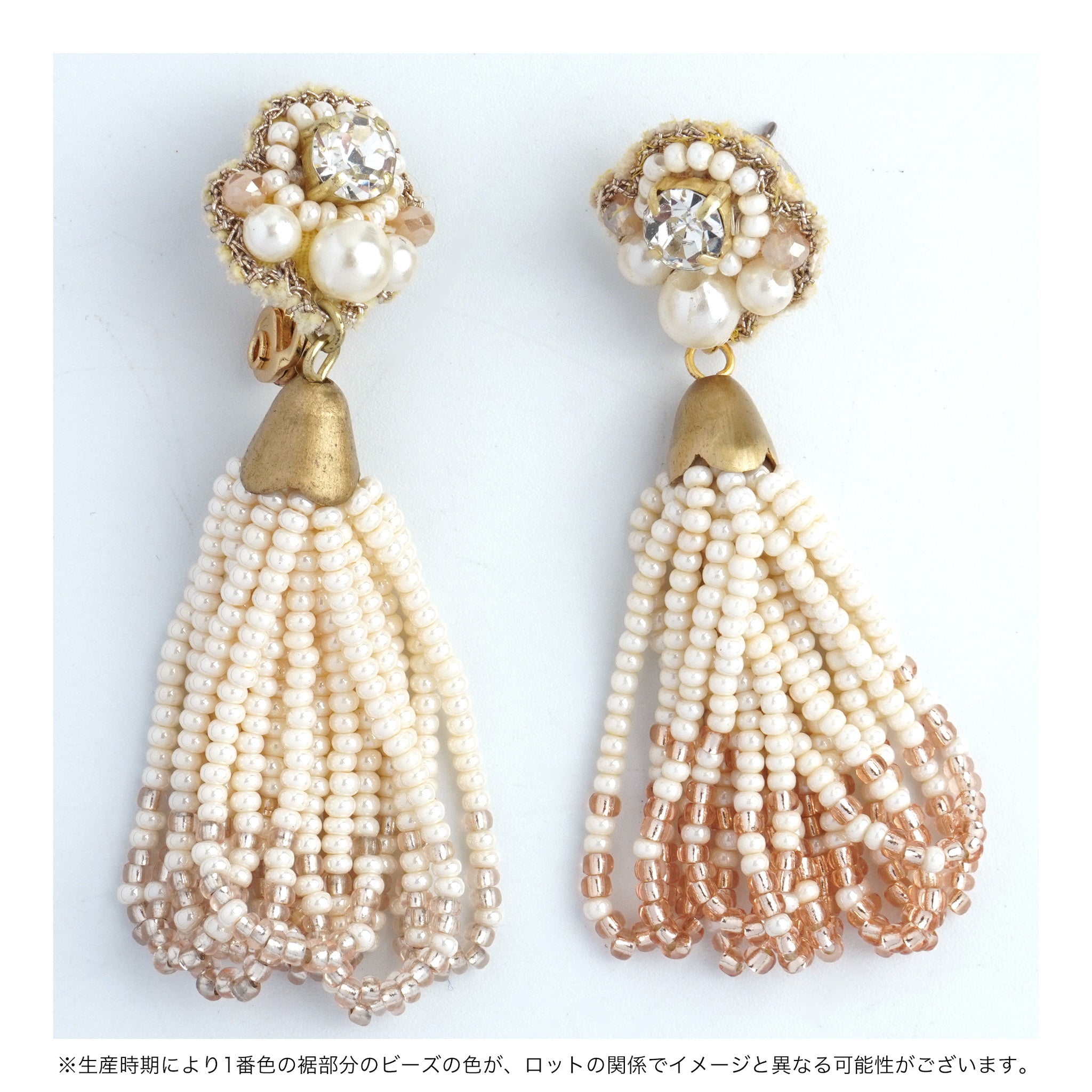 生産時期により、ピンクのビーズの色味が異なる場合がございます。また、個別にお選びいただくことはできかねますので、予めご了承くださいませ。
