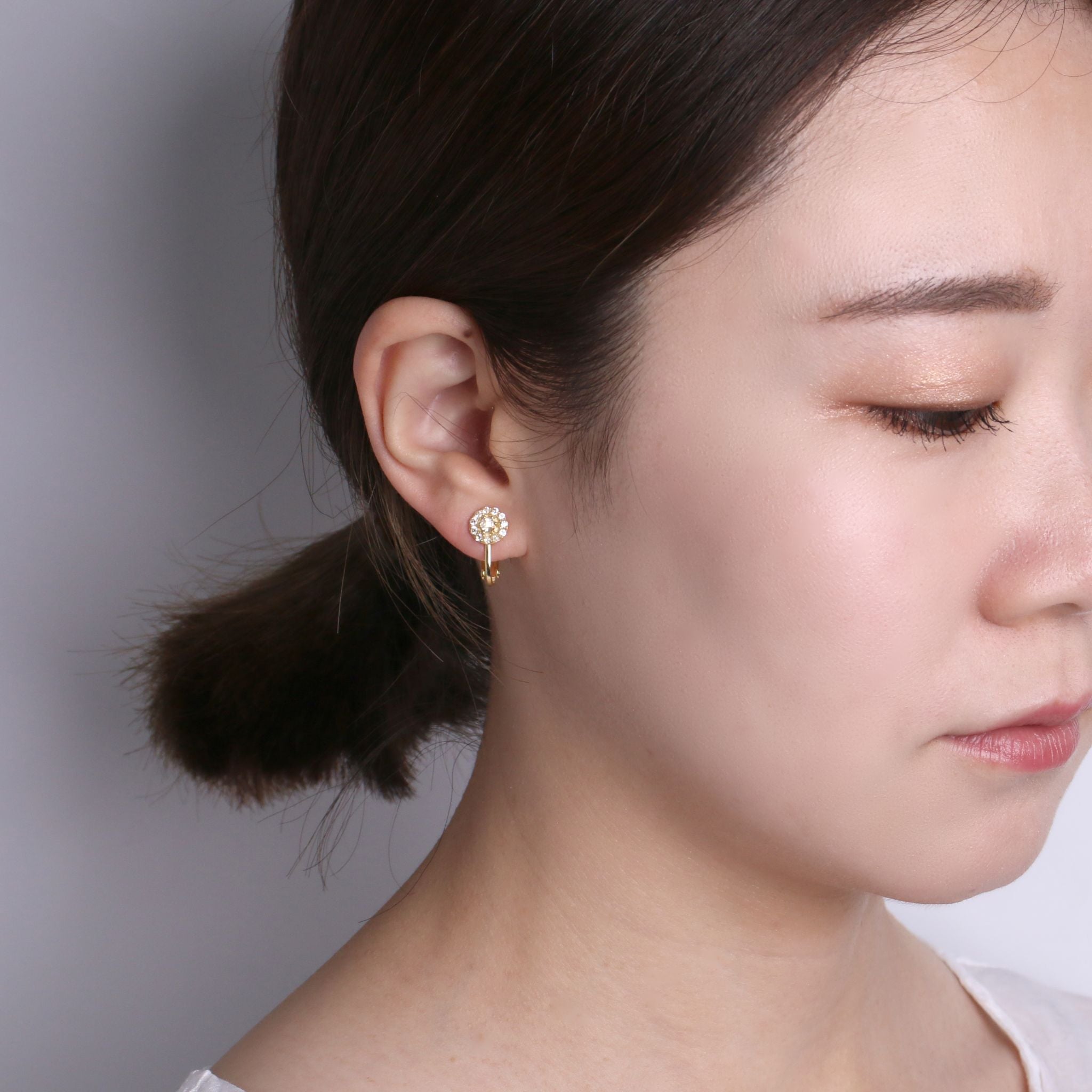 周囲と差がつくMAYGLOBEのジュエリーシリーズ。高級ジュエリーと同じ技法で作られたアンティーク調の風合いは手に取っていただくとその繊細さにうっとり。中央のクリスタルクオーツはバラのようにカットされたローズカットを採用。多方面にきらめく光がとても上品です。玉留めという技法でストーンをセッティングしているため、チープな印象がなく、衣服などにアクセサリーが引っ掛からないのも嬉しいポイント。ストーンをのり貼りしているお手頃なスキンアクセサリーとは違い、石座にストーンをセッティングしているので、一度手に取っていただくと本物を感じれます。