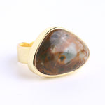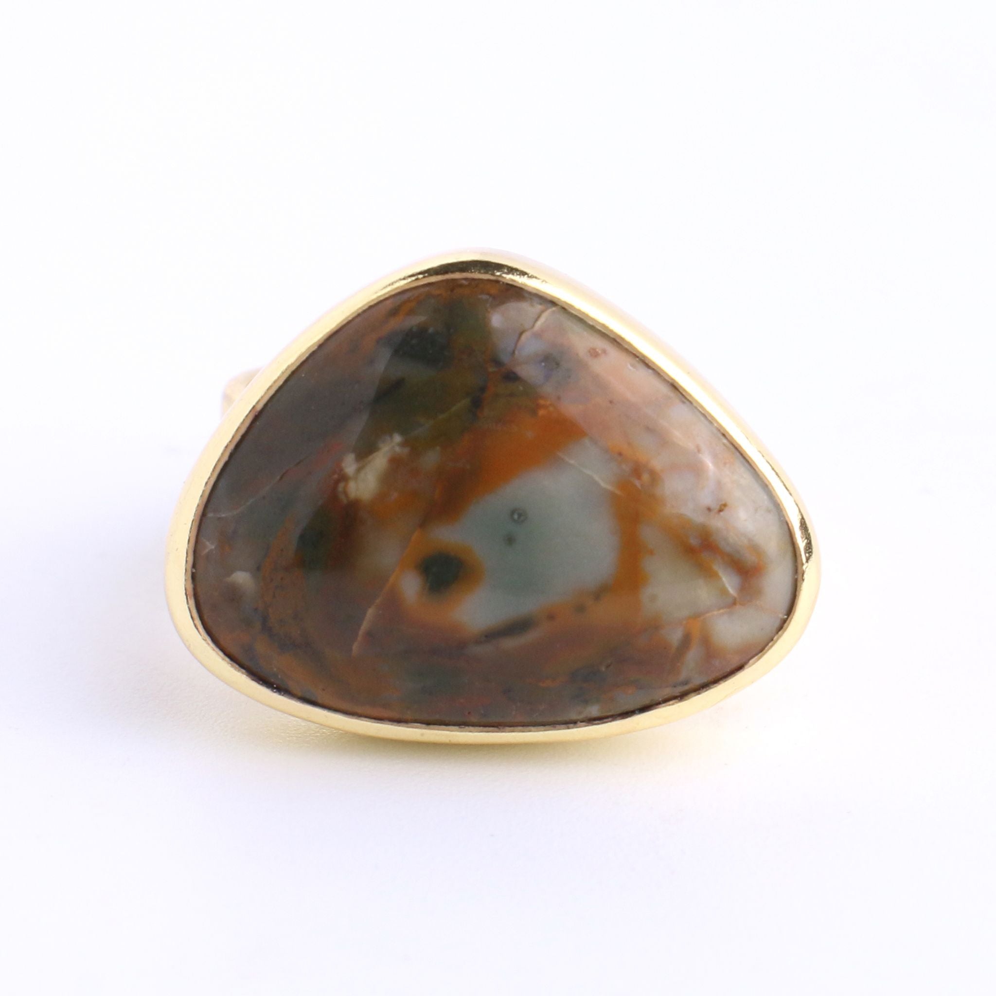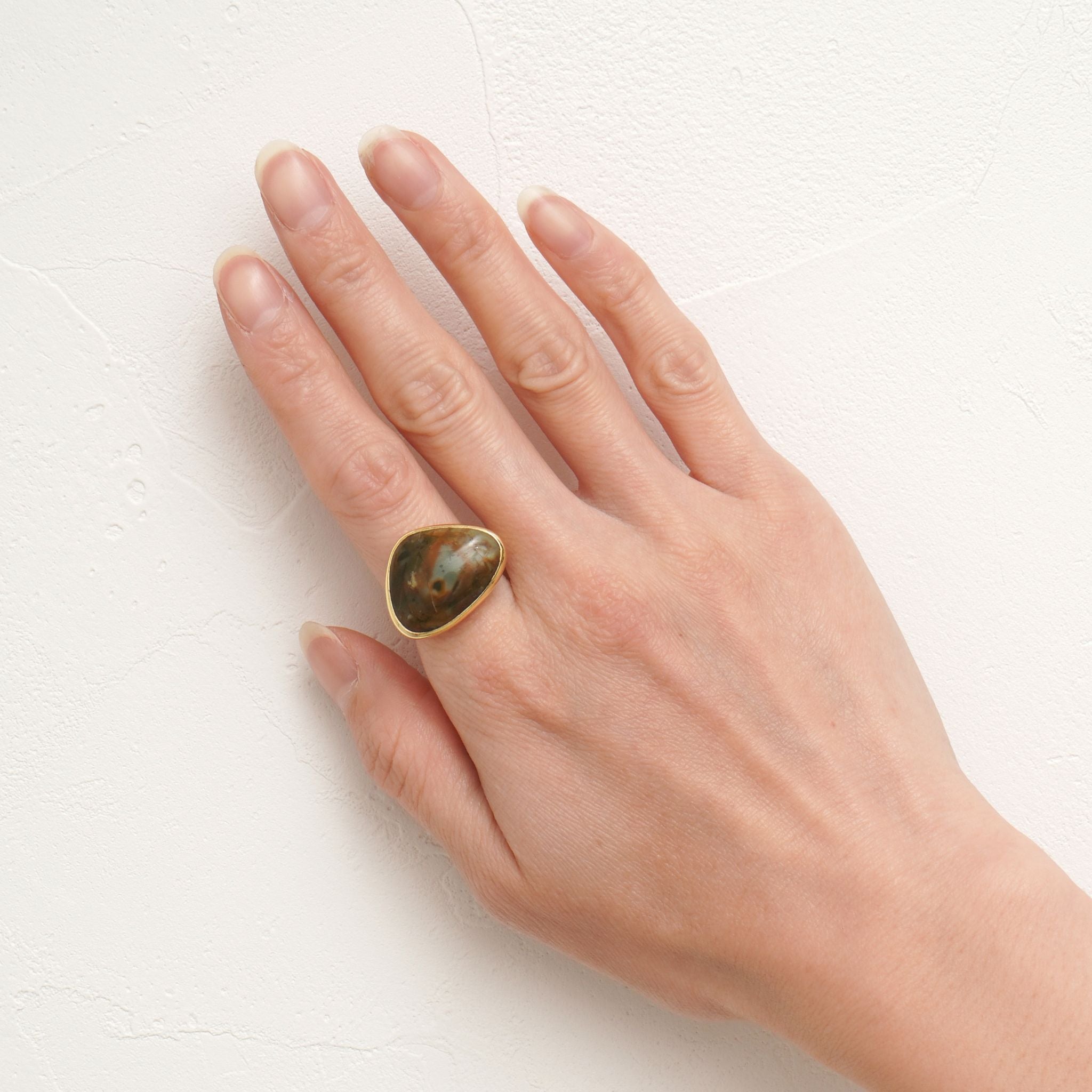 大ぶりの天然石が、まるでアートのように輝くリング。 身に着けるだけで、シンプルなコーデも一気に洗練された印象に。