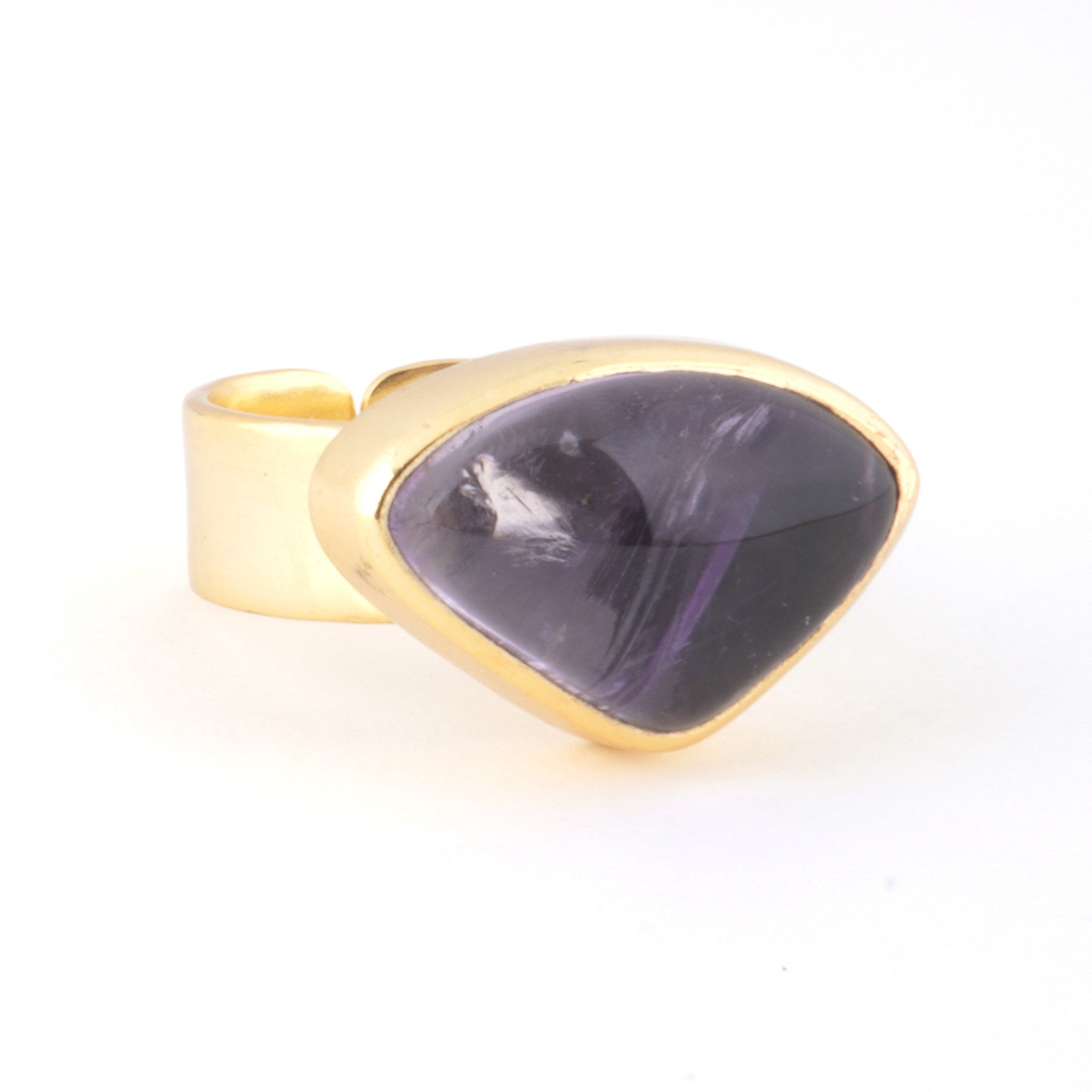 インド・ジャイプールで厳選された良質の天然石。確かな品質をお手頃価格で提供したいという思いから、リングパーツは真鍮を、また自分サイズにアレンジ自由なフリーサイズリングを採用。天然石の形に合わせて、インドの職人が1つ1つ丁寧に作り上げています。全て1点物、色も形も違う、あなただけのオンリーワンジュエリーです。