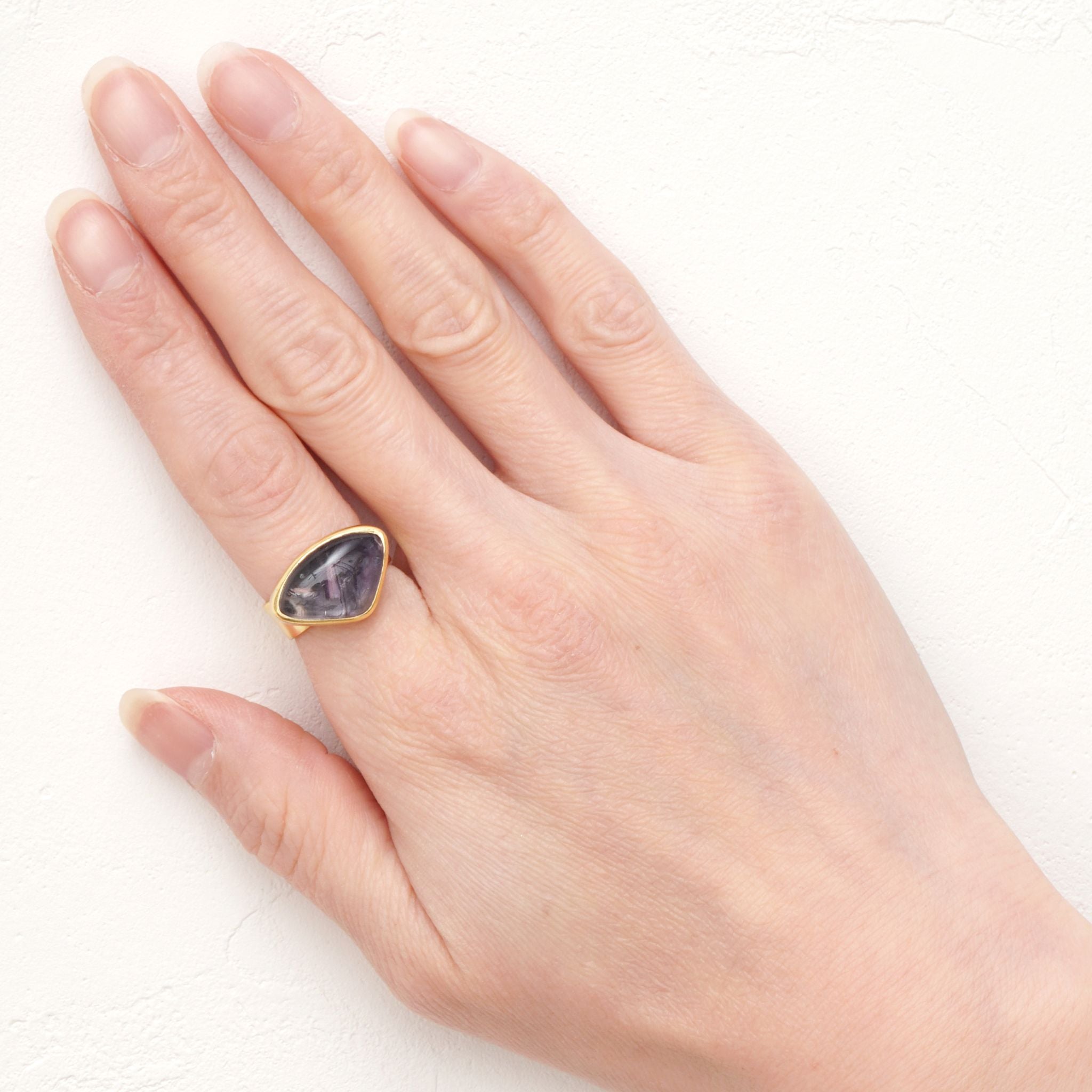 大ぶりの天然石が、まるでアートのように輝くリング。 身に着けるだけで、シンプルなコーデも一気に洗練された印象に。