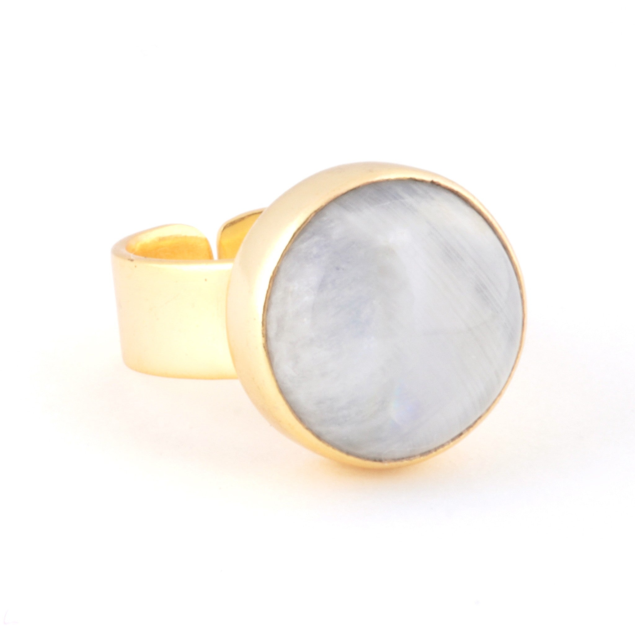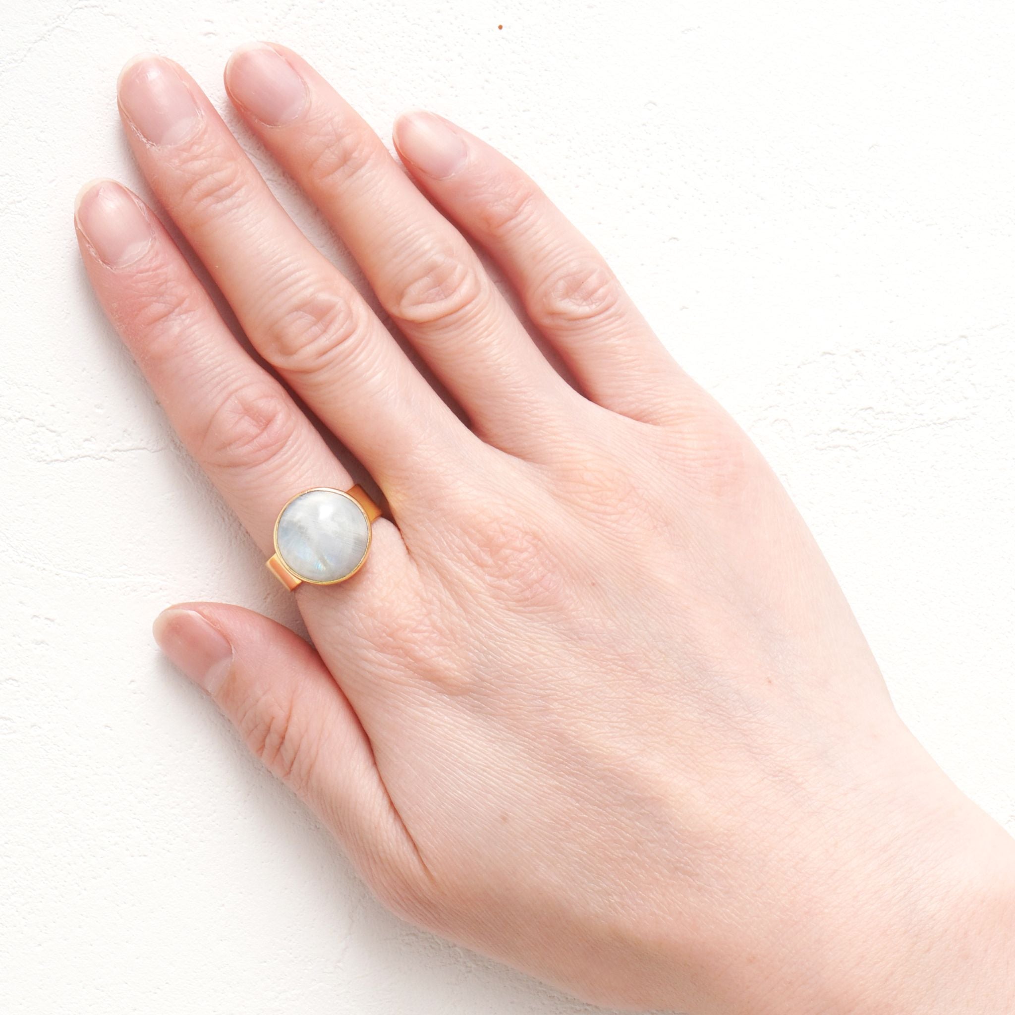 大ぶりの天然石が、まるでアートのように輝くリング。 身に着けるだけで、シンプルなコーデも一気に洗練された印象に。