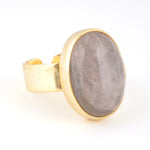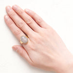 大ぶりの天然石が、まるでアートのように輝くリング。 身に着けるだけで、シンプルなコーデも一気に洗練された印象に。